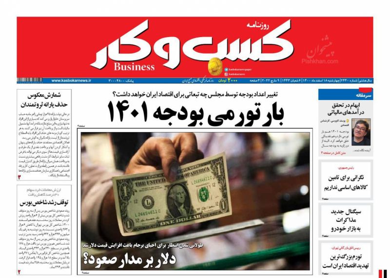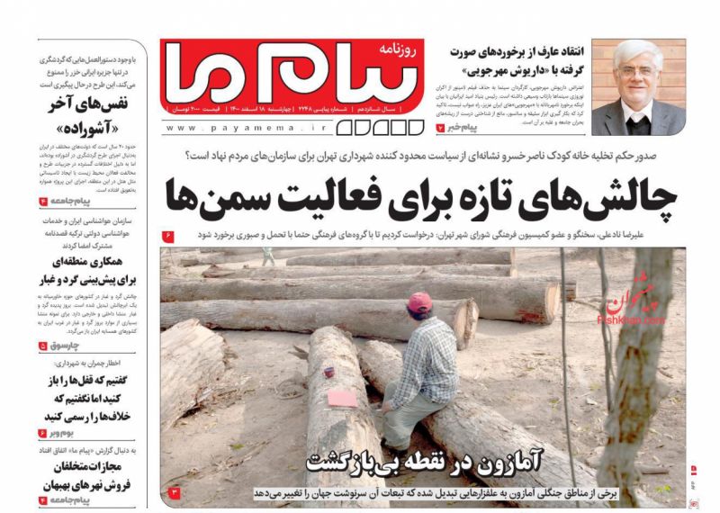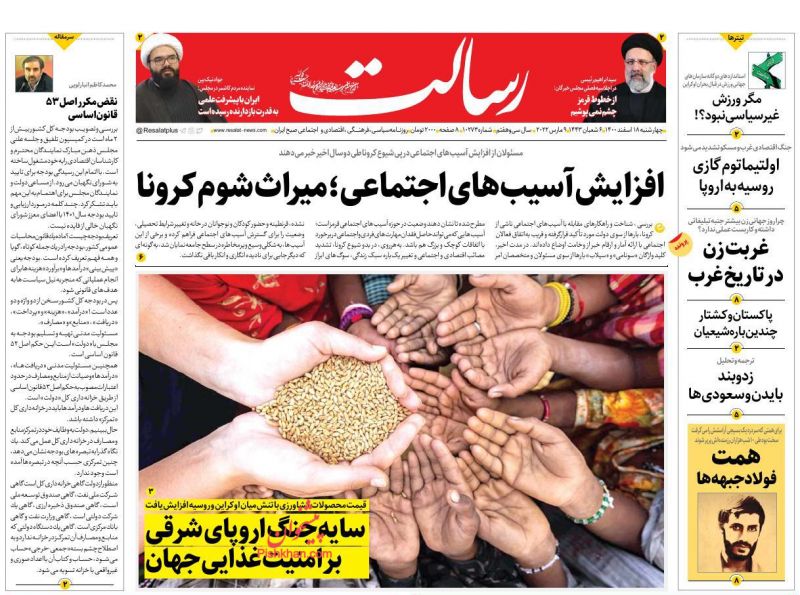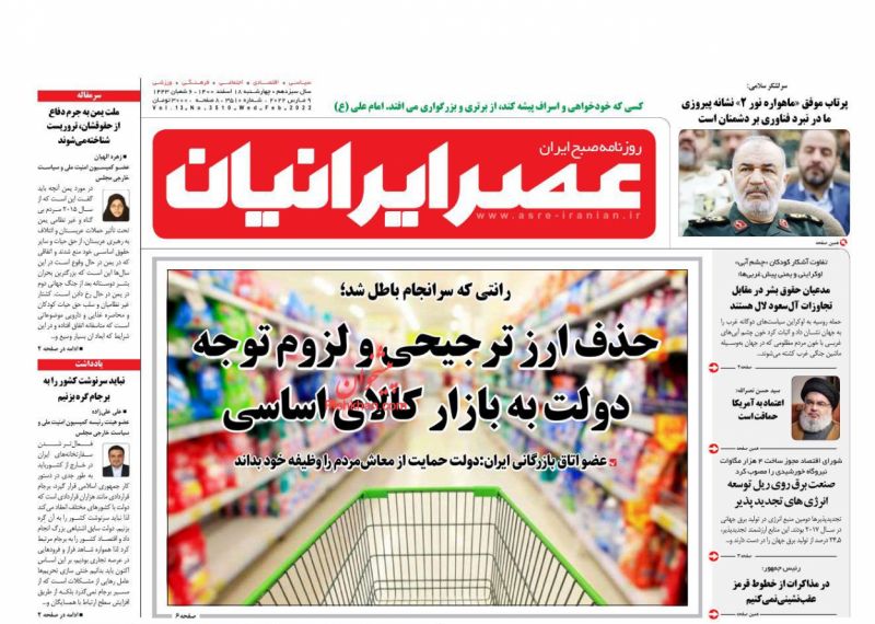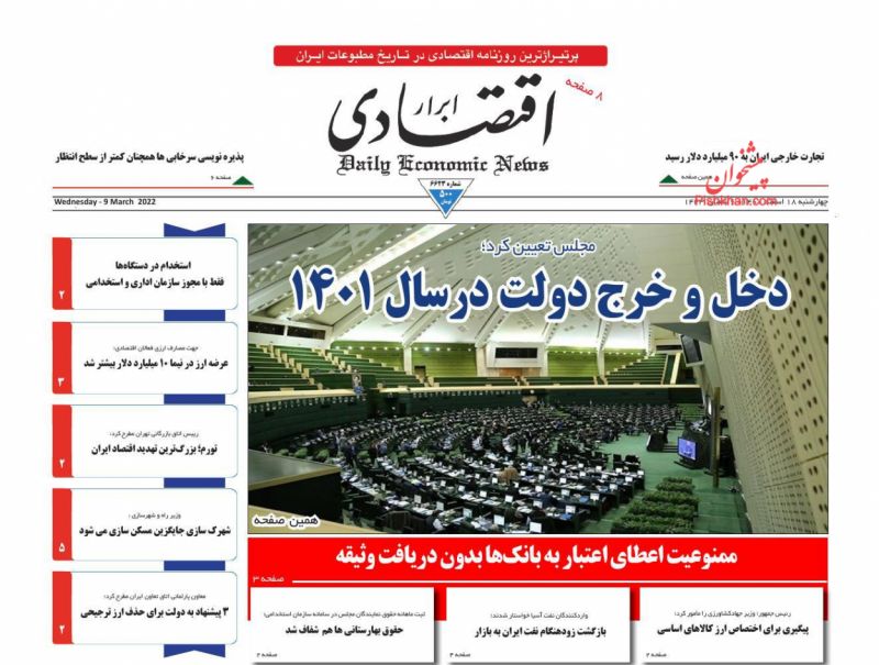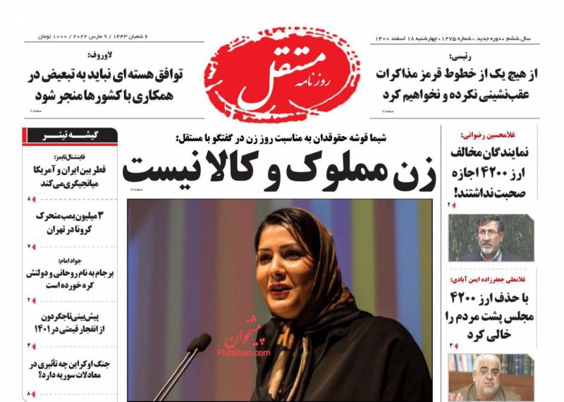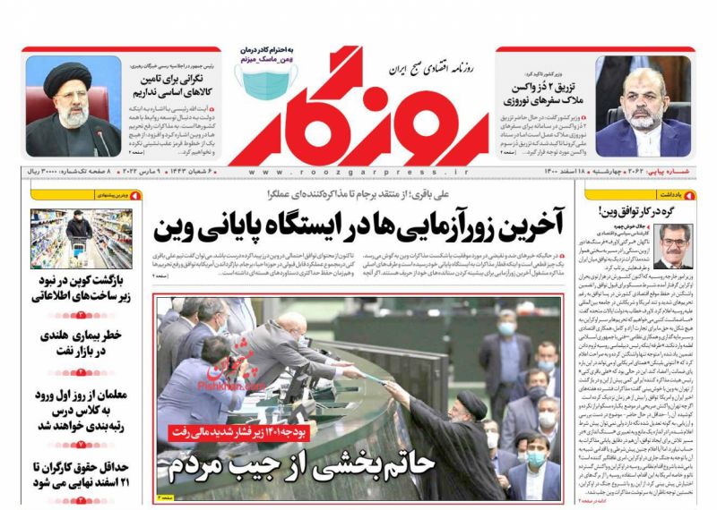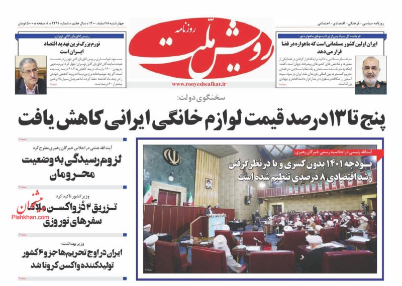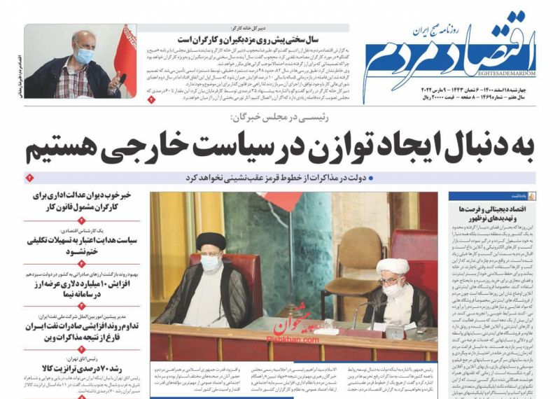 صفحه اول روزنامههای چهارشنبه ۱۸ اسفند ۱۴۰۰