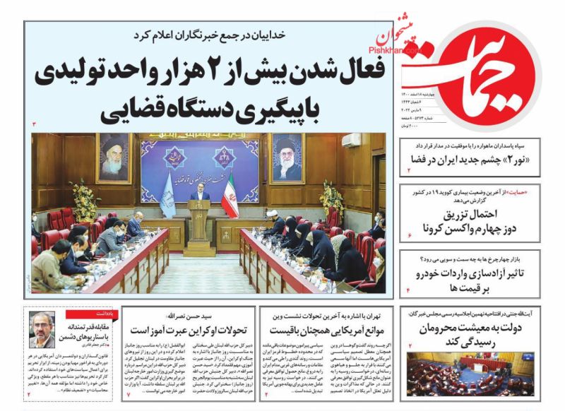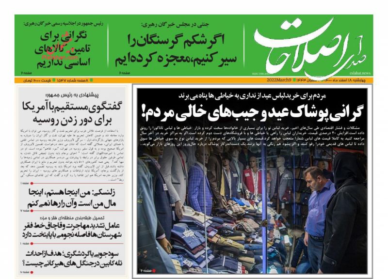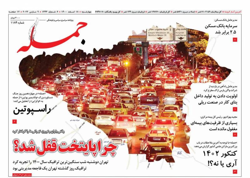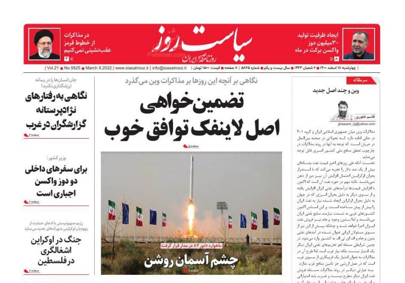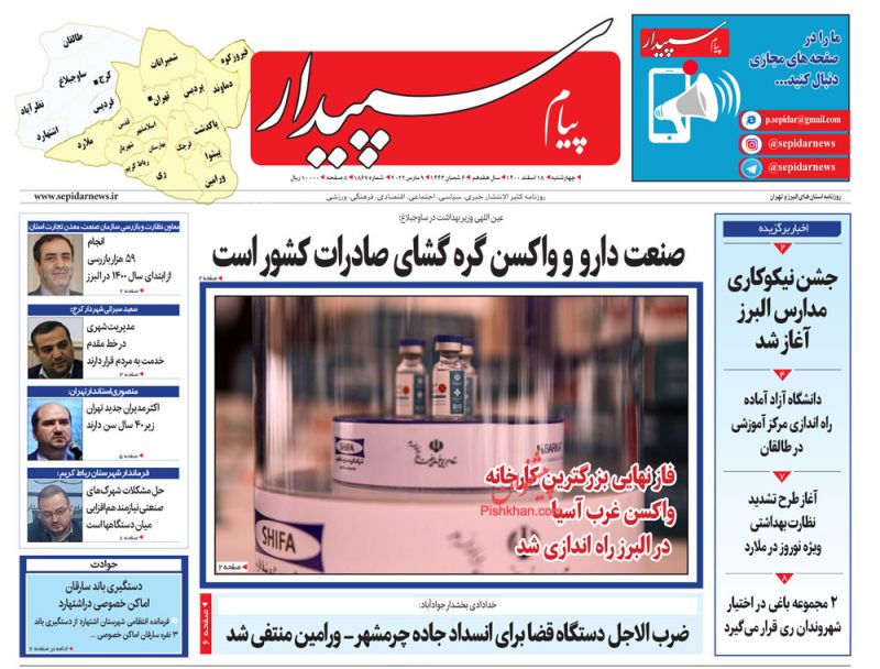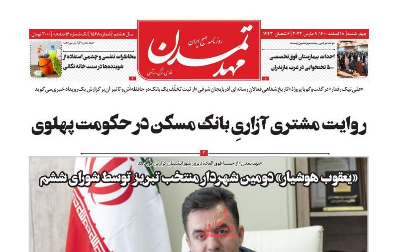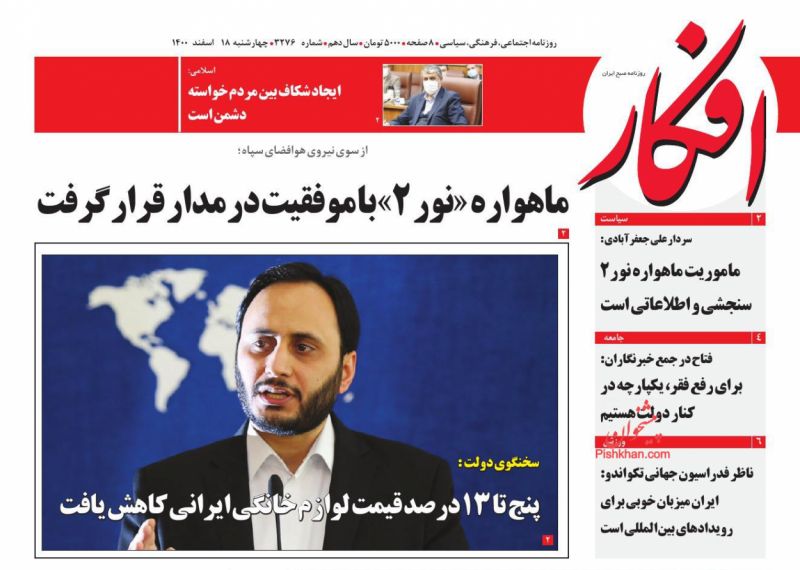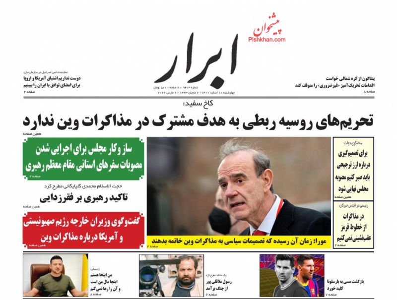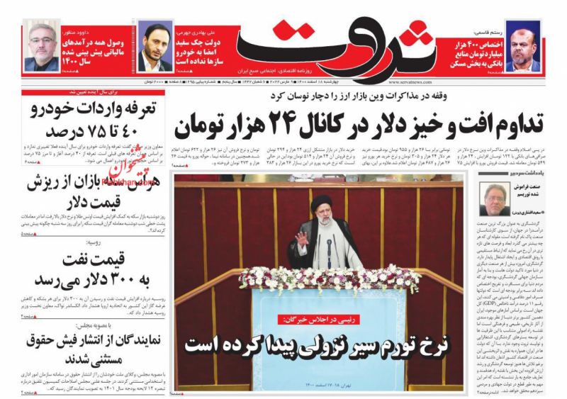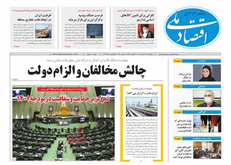 صفحه اول روزنامههای چهارشنبه ۱۸ اسفند ۱۴۰۰