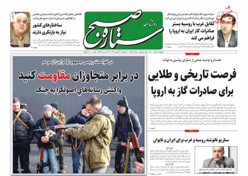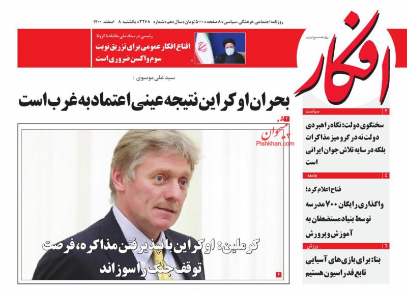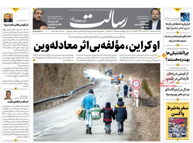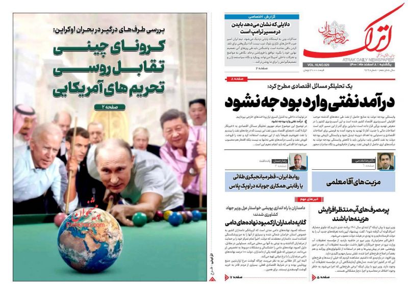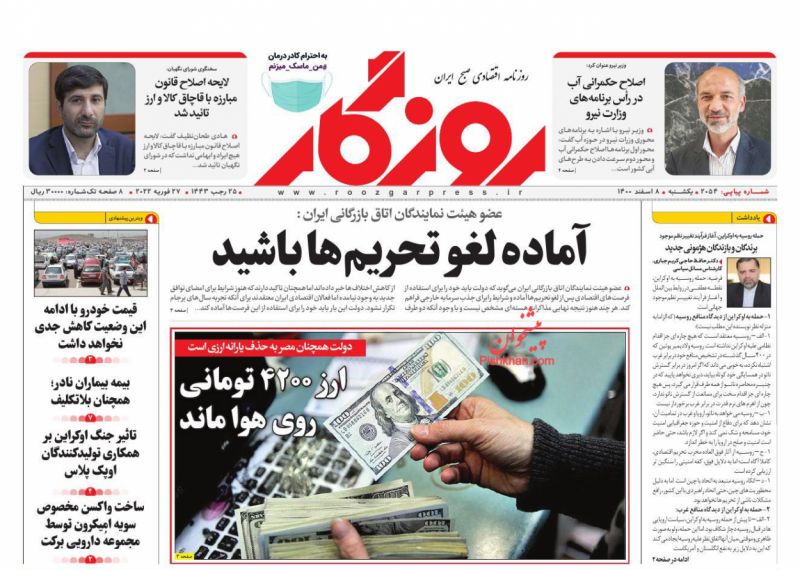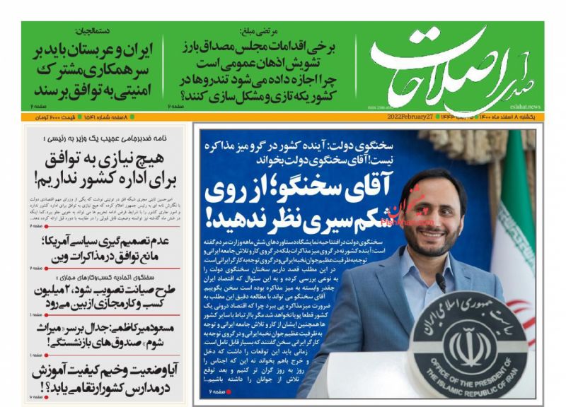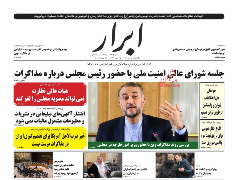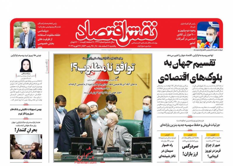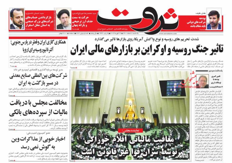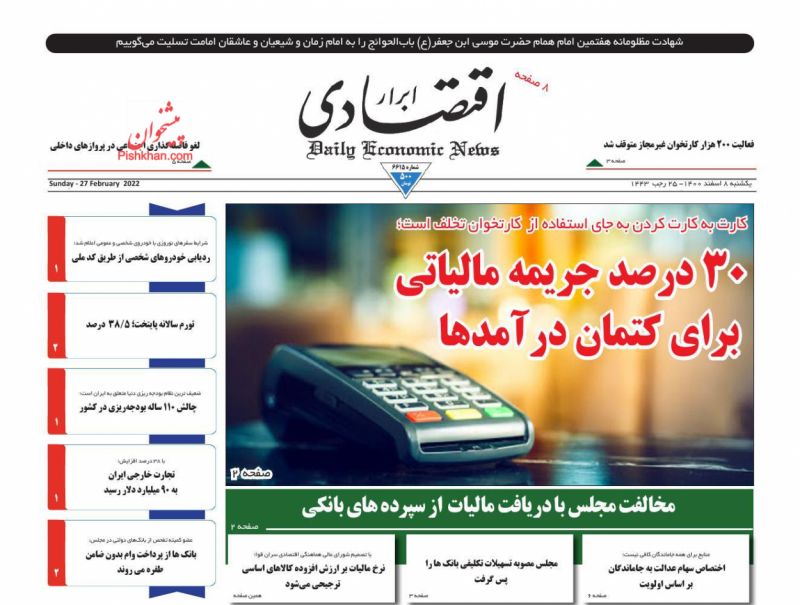 صفحه اول روزنامههای یکشنبه ۸ اسفند ۱۴۰۰