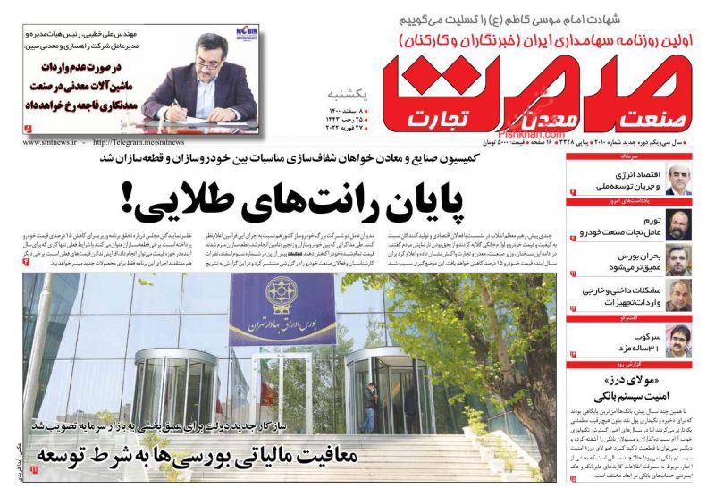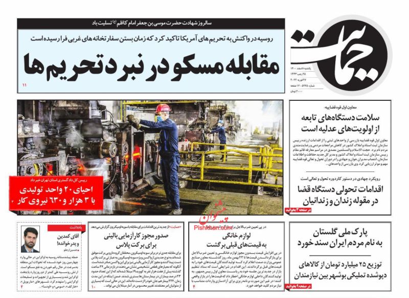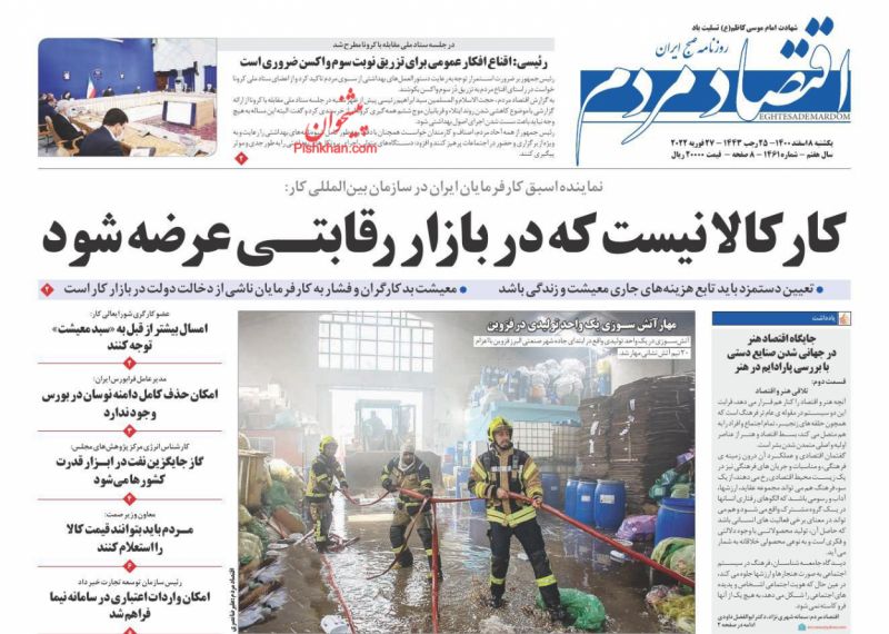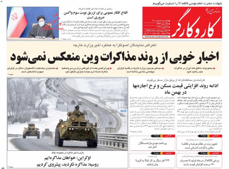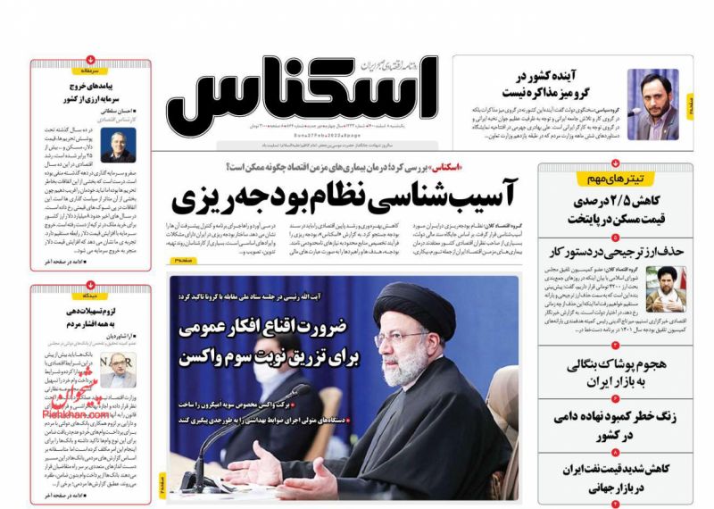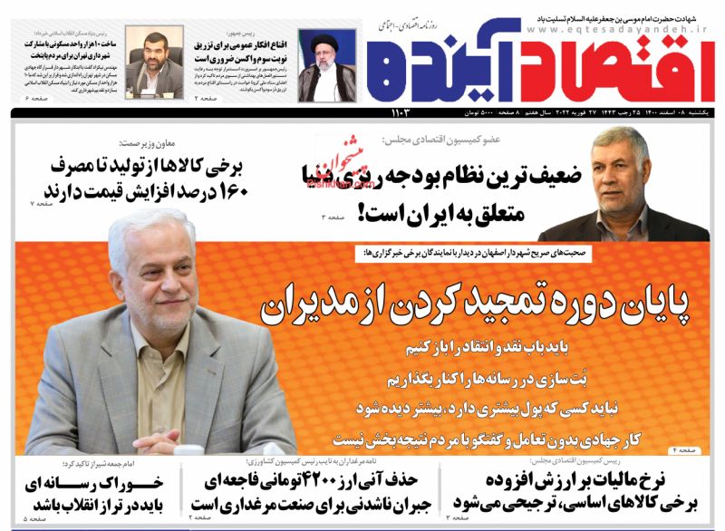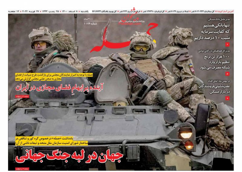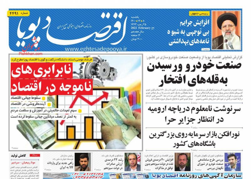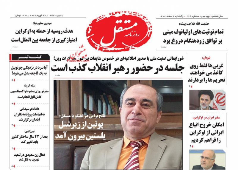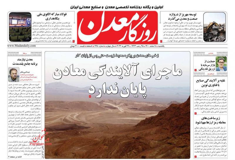 صفحه اول روزنامههای یکشنبه ۸ اسفند ۱۴۰۰