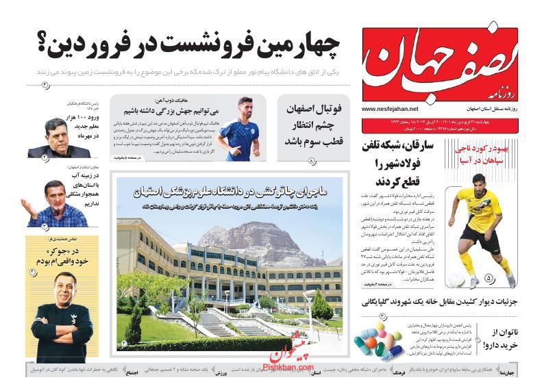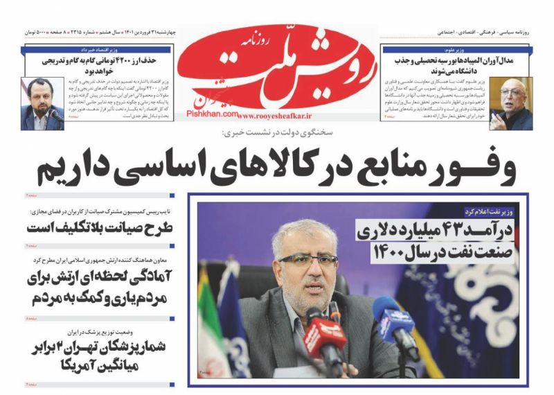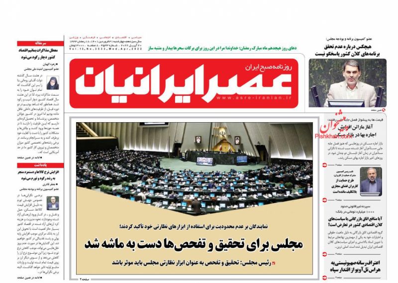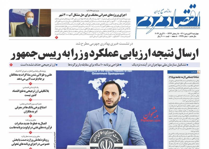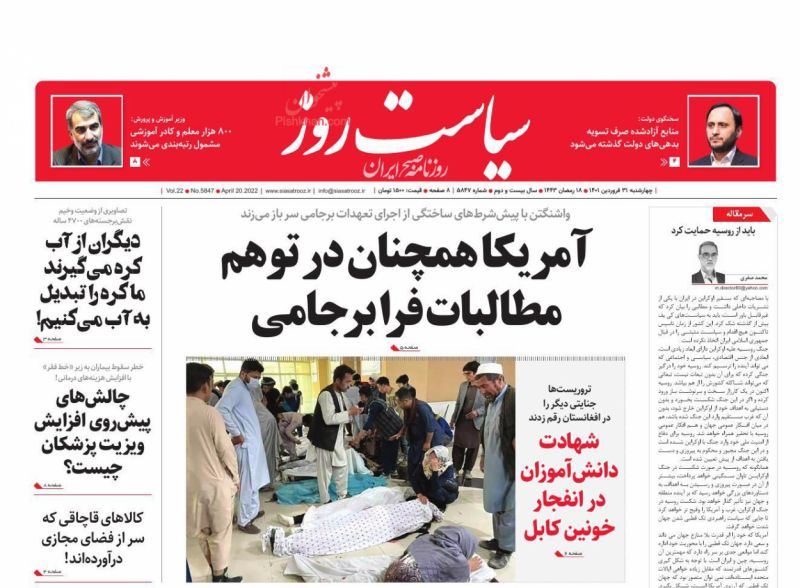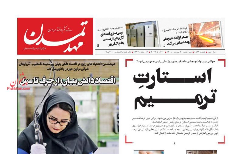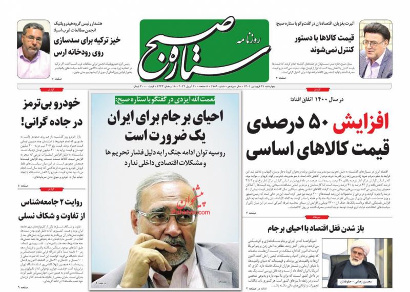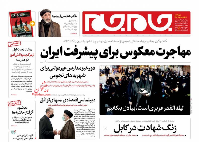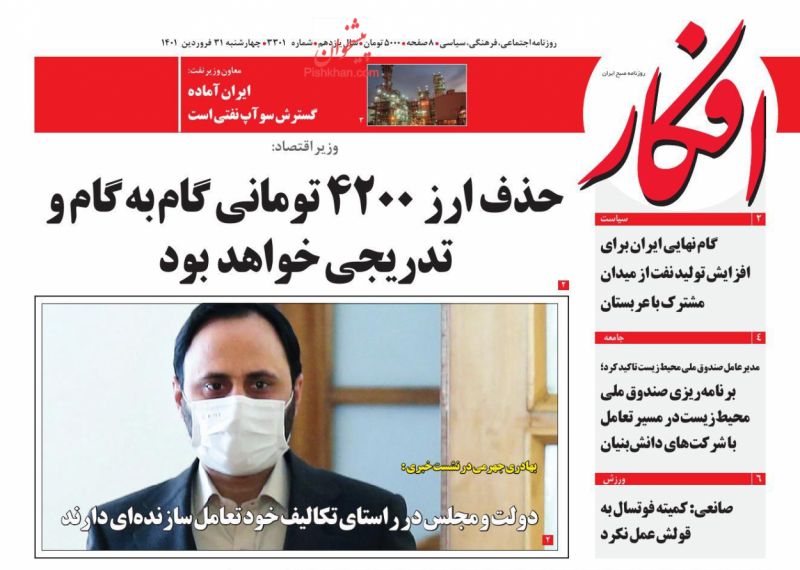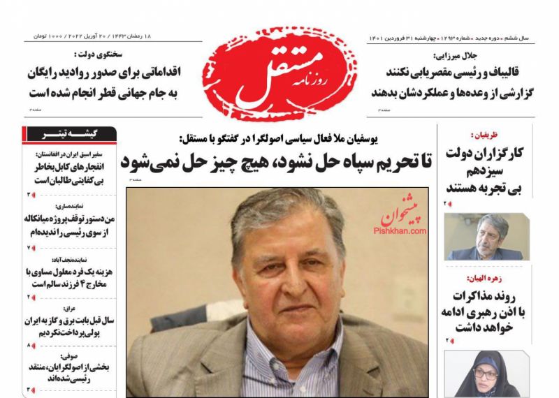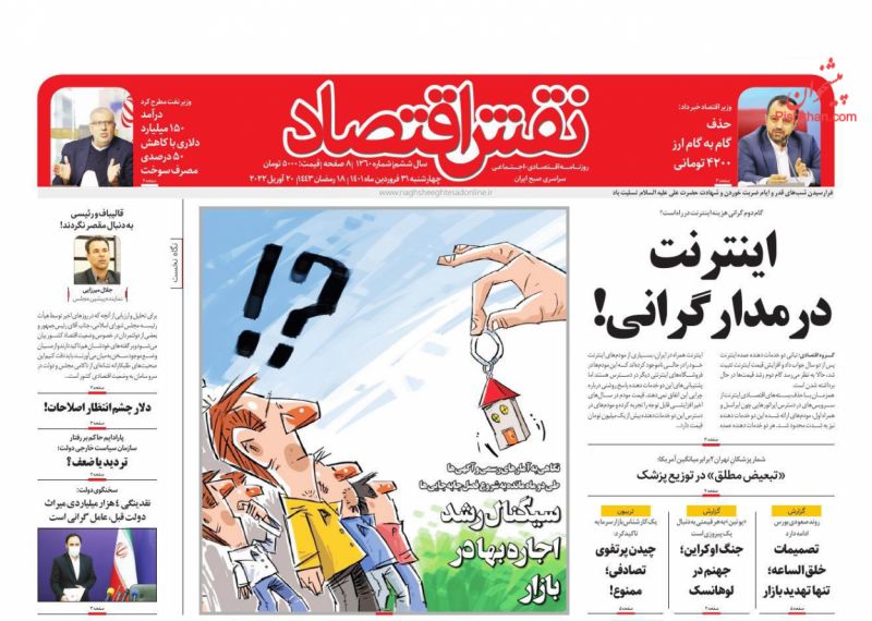 صفحه اول روزنامههای چهارشنبه ۳۱ فروردین ۱۴۰۱