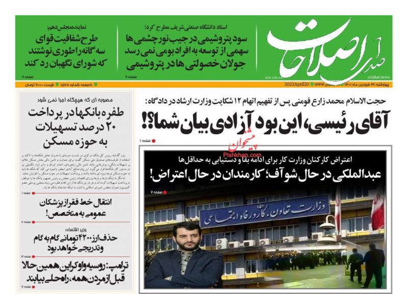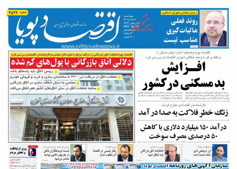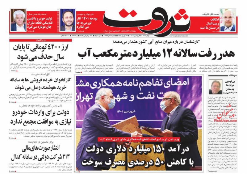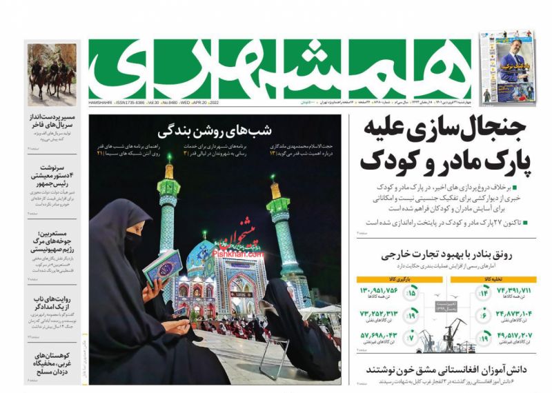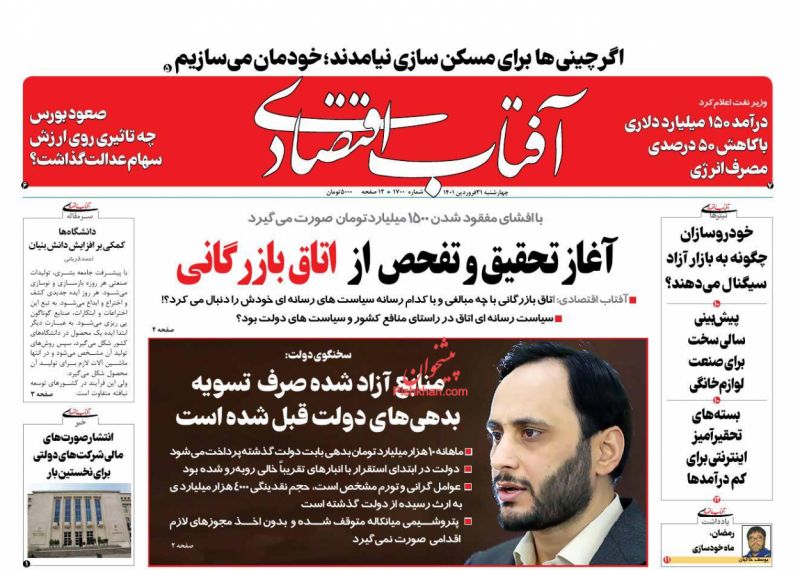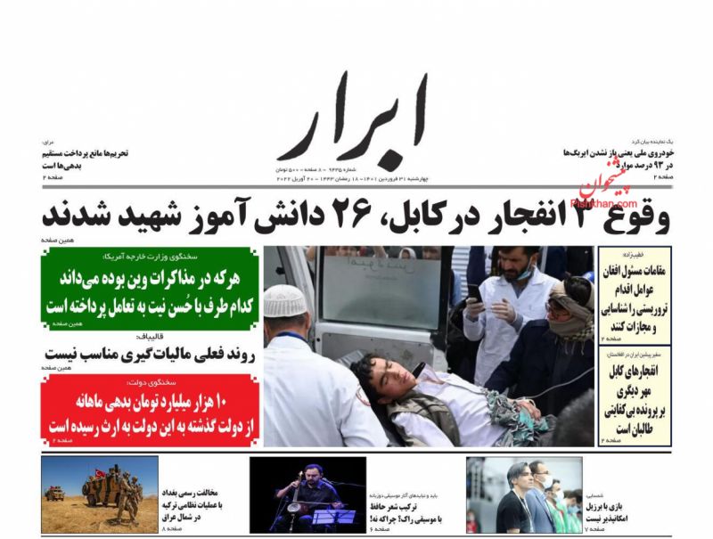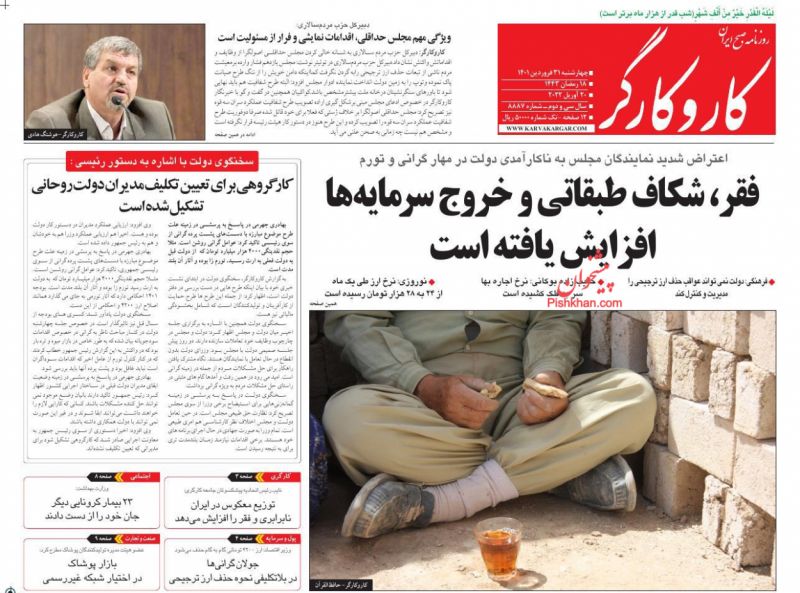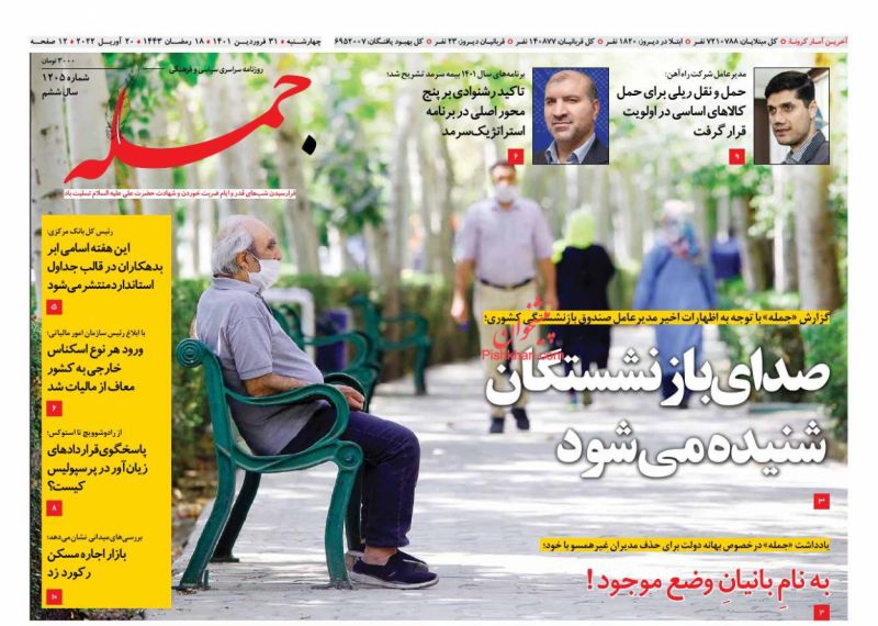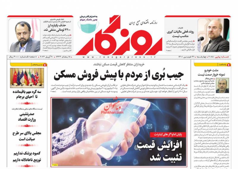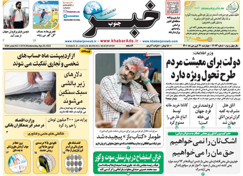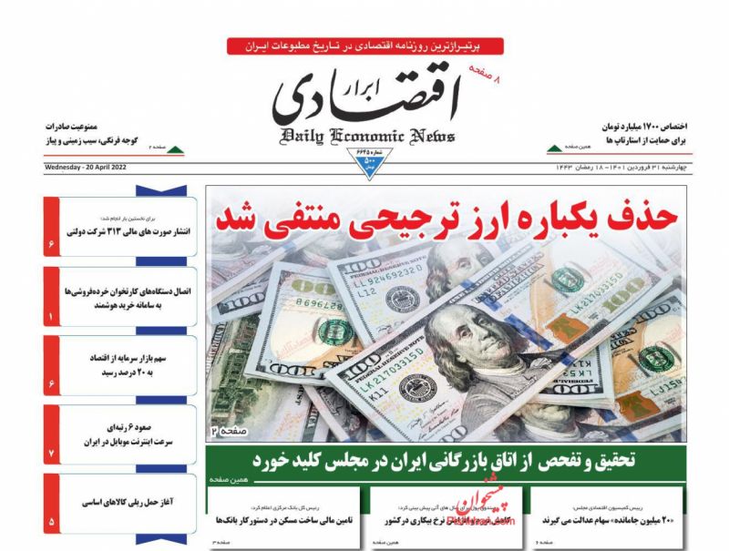 صفحه اول روزنامههای چهارشنبه ۳۱ فروردین ۱۴۰۱