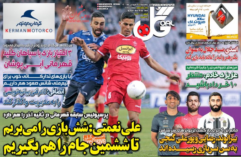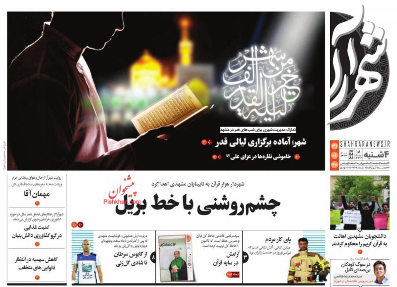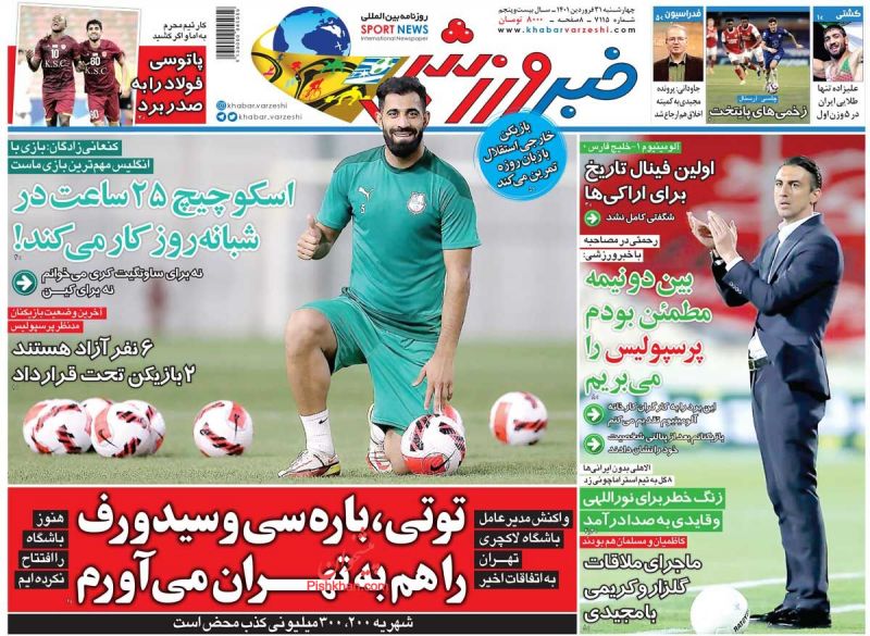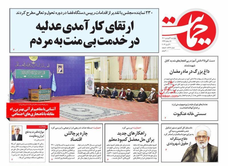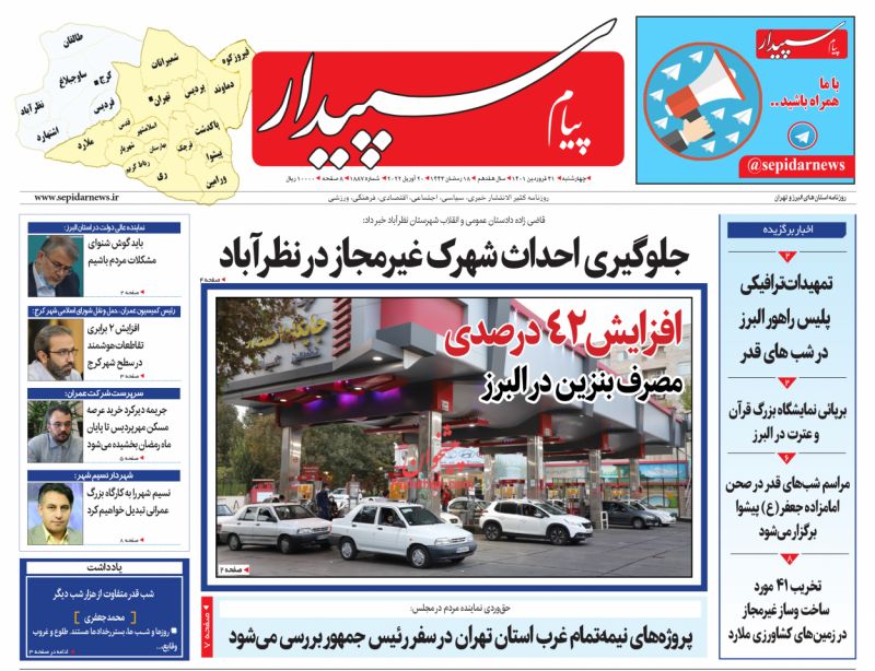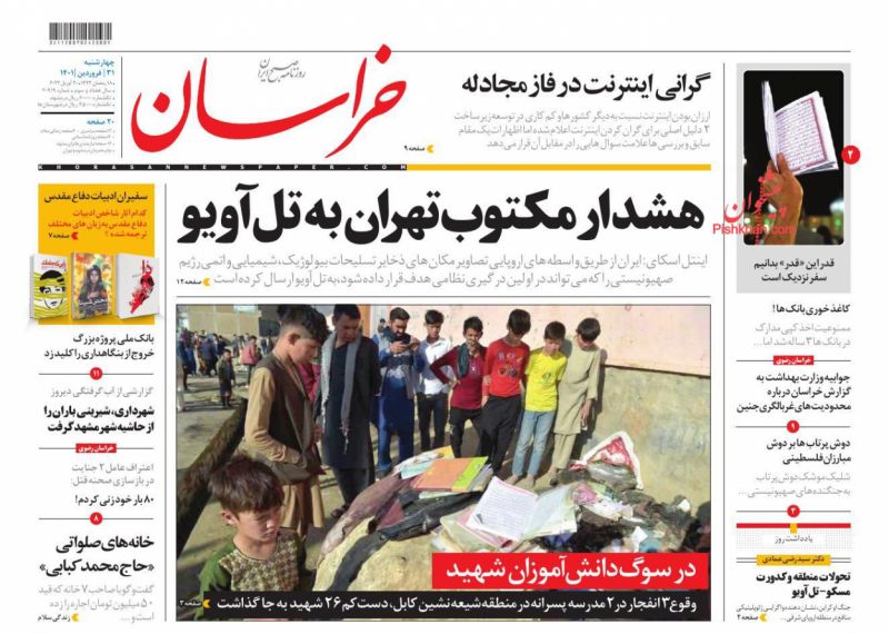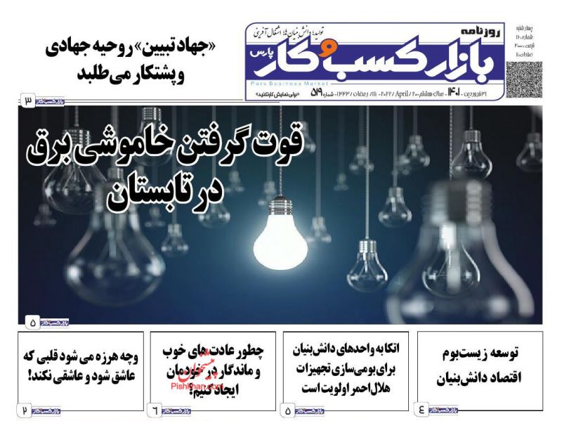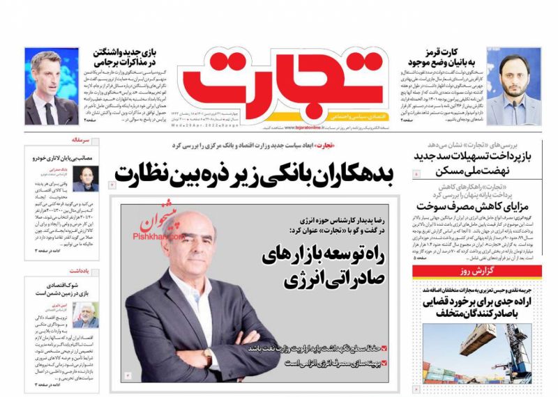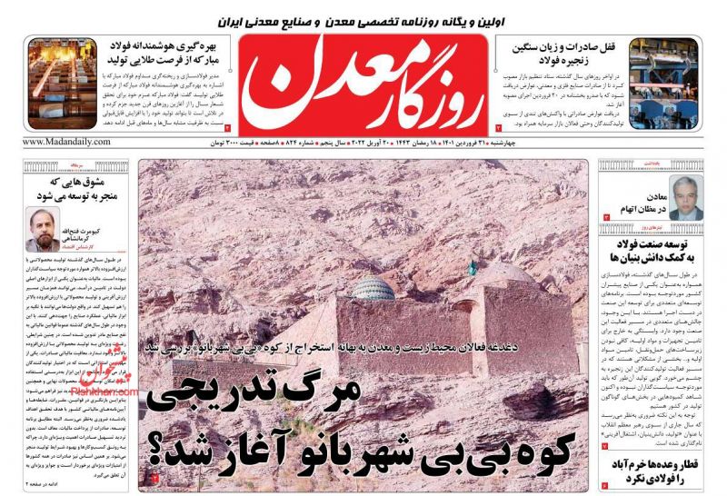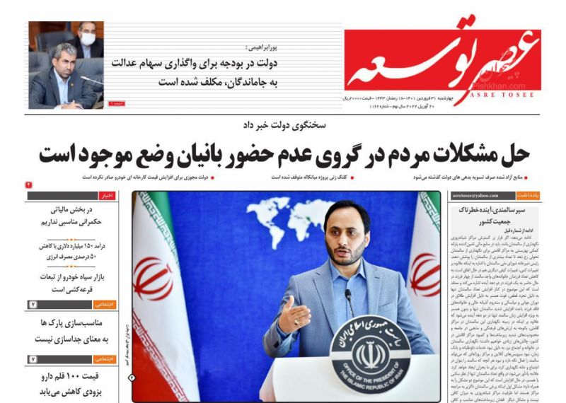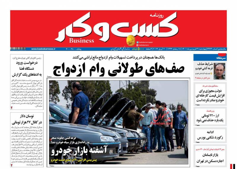 صفحه اول روزنامههای چهارشنبه ۳۱ فروردین ۱۴۰۱