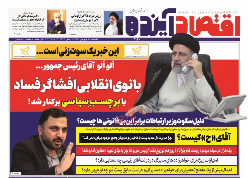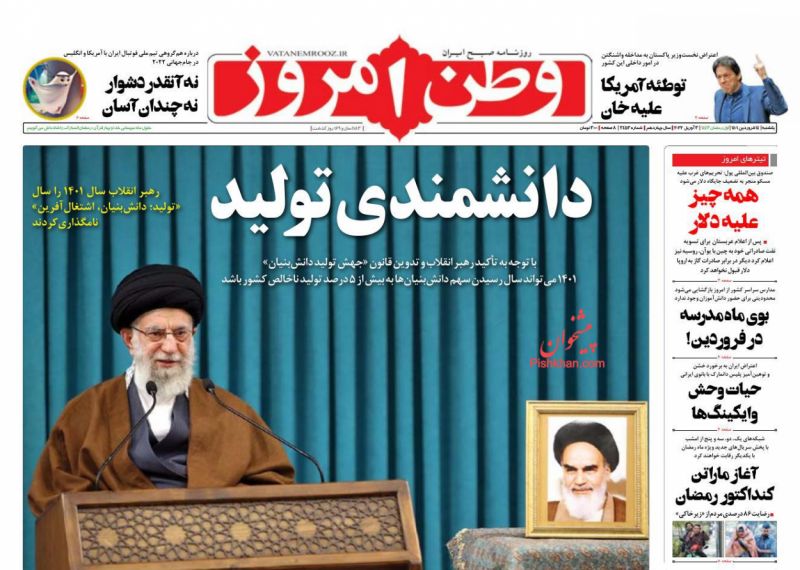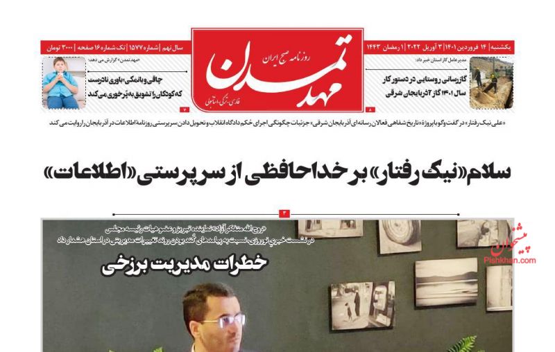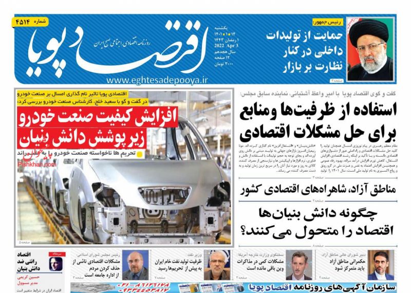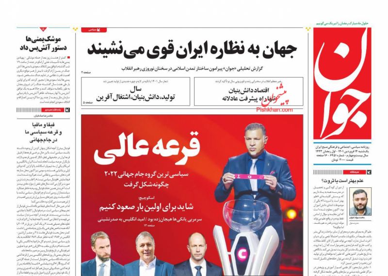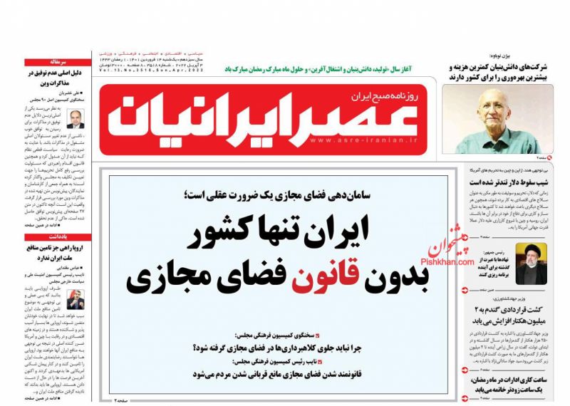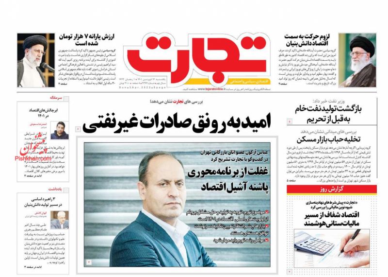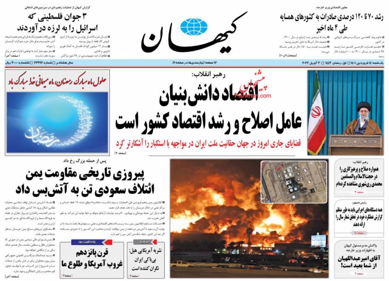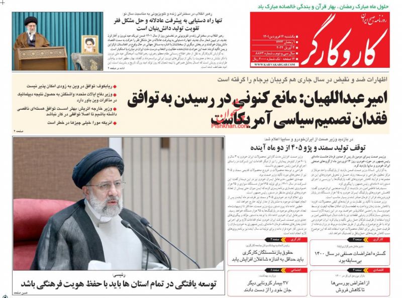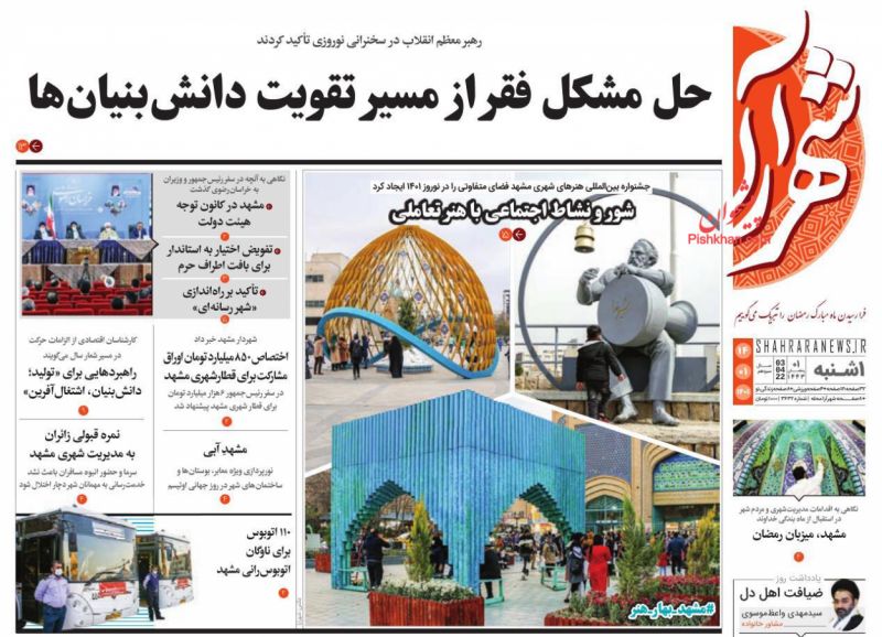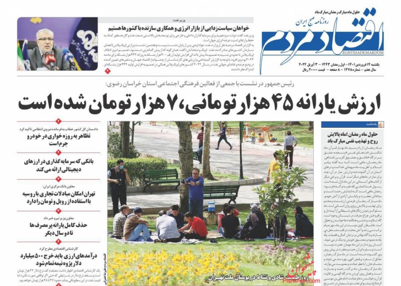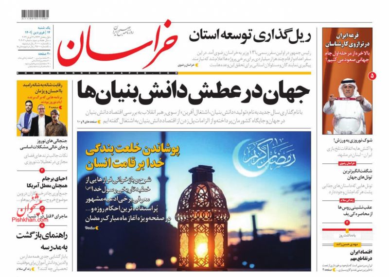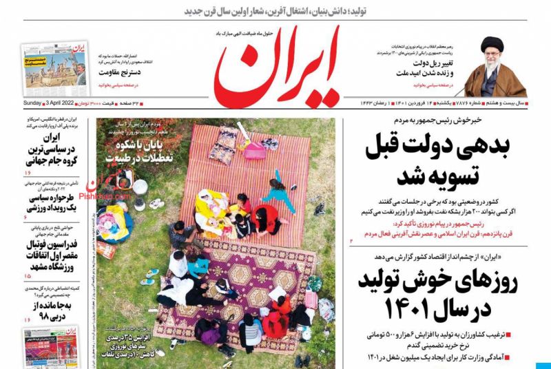 صفحه اول روزنامههای یکشنبه ۱۴ فروردین ۱۴۰۱