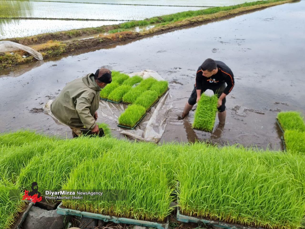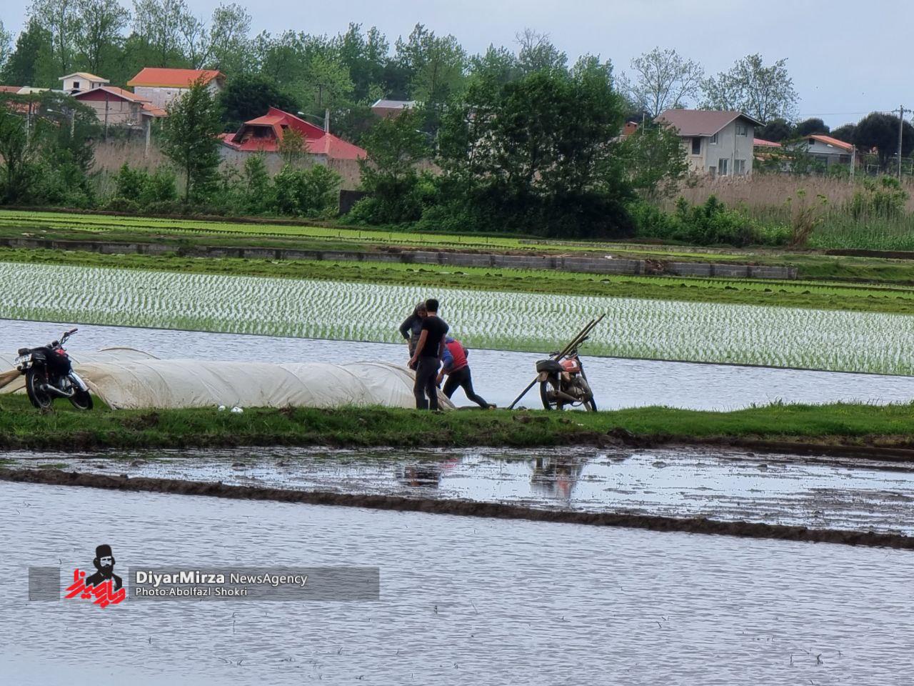 آبگیری سد لاستیکی گالشکلام و آغاز نشاء برنج در شهرستان لنگرود