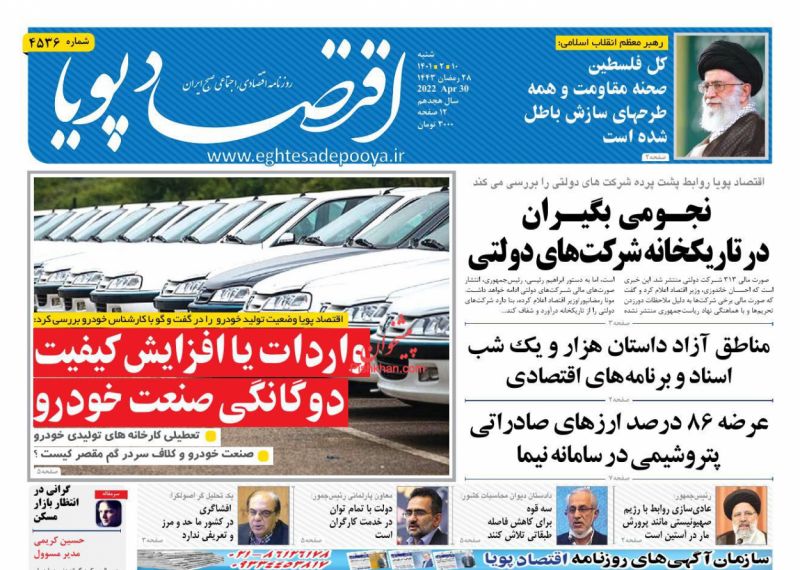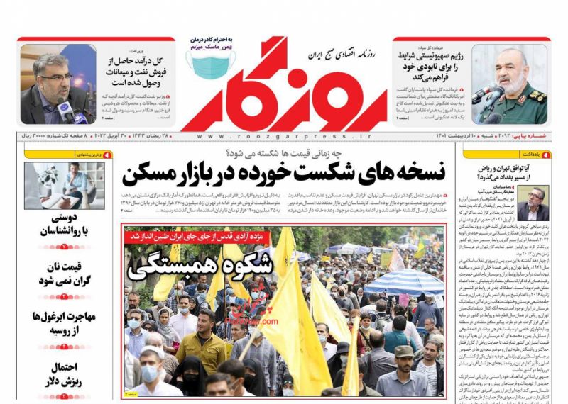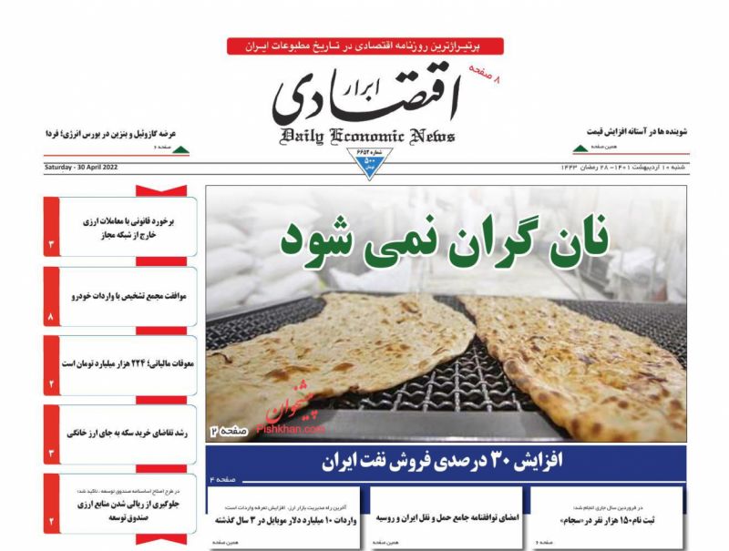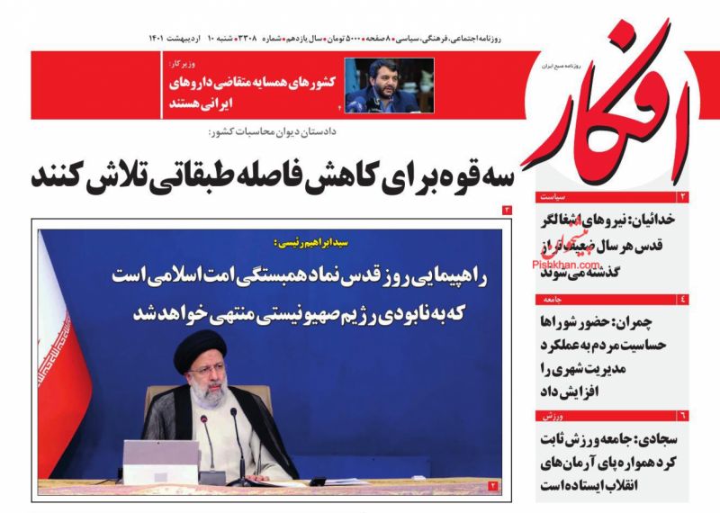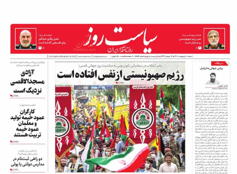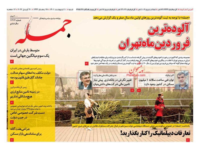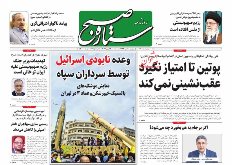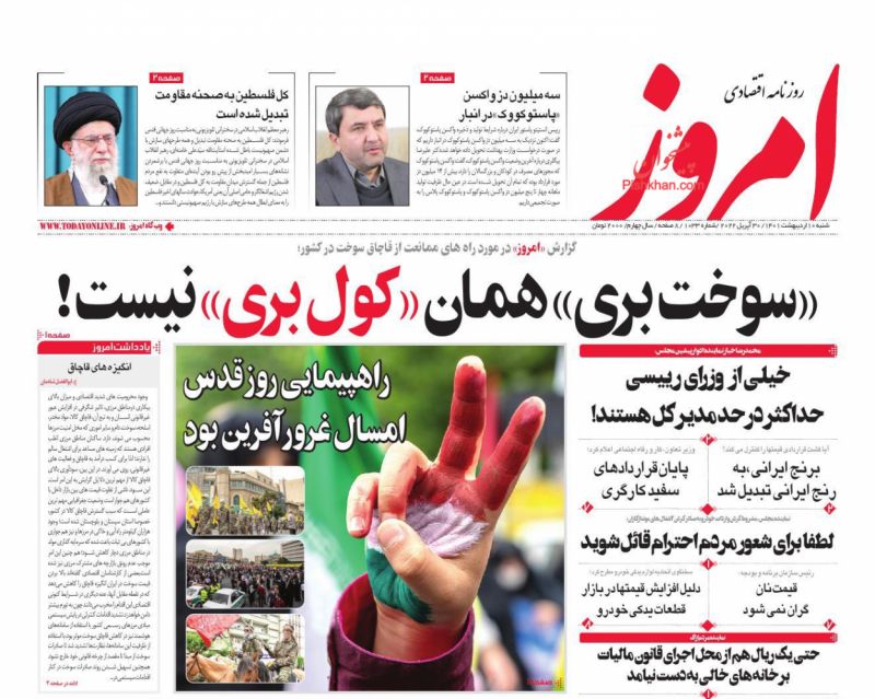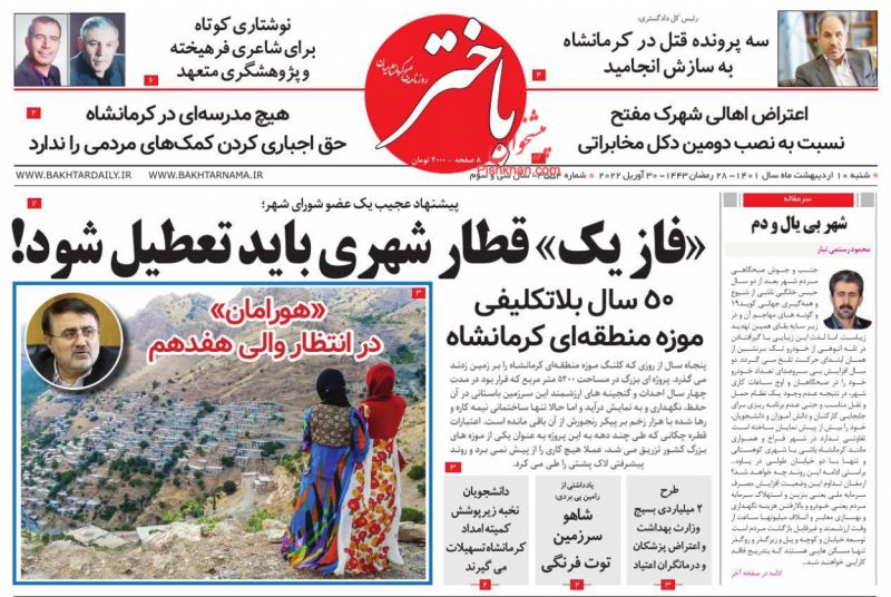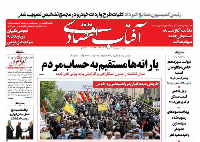 صفحه اول روزنامههای شنبه ۱۰ اردیبهشت ۱۴۰۱