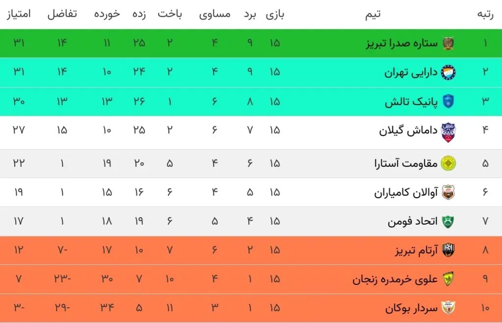 تساوی داماش مقابل دارایی تهران به نفع رقبا | سه هفته حساس برای صعود به دسته دوم