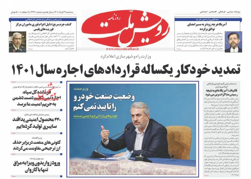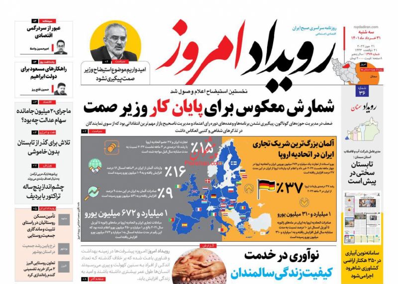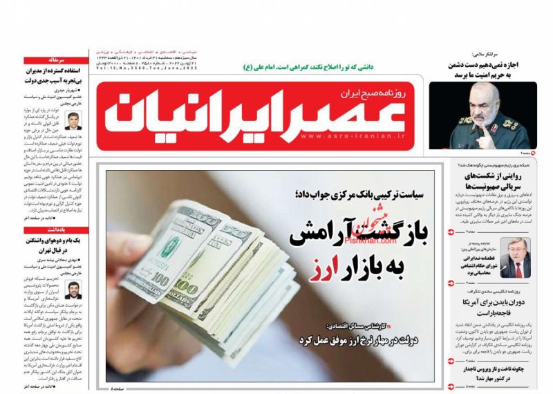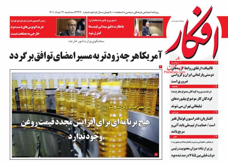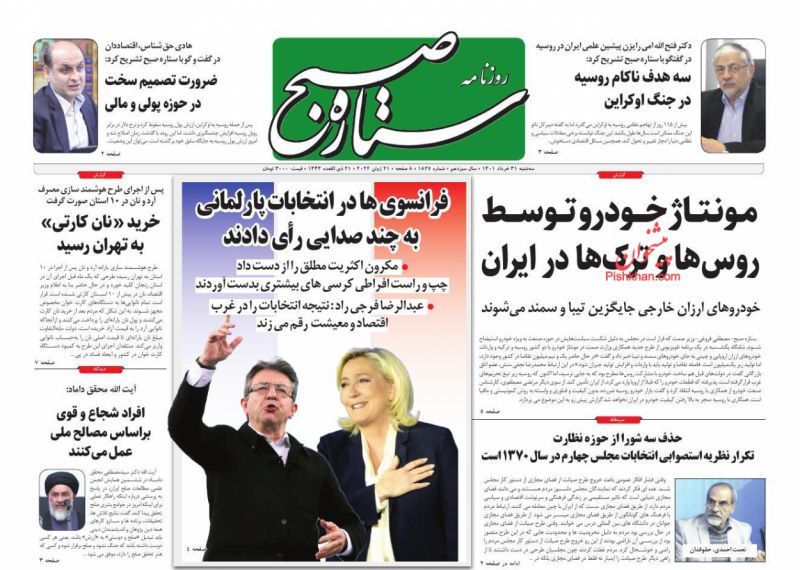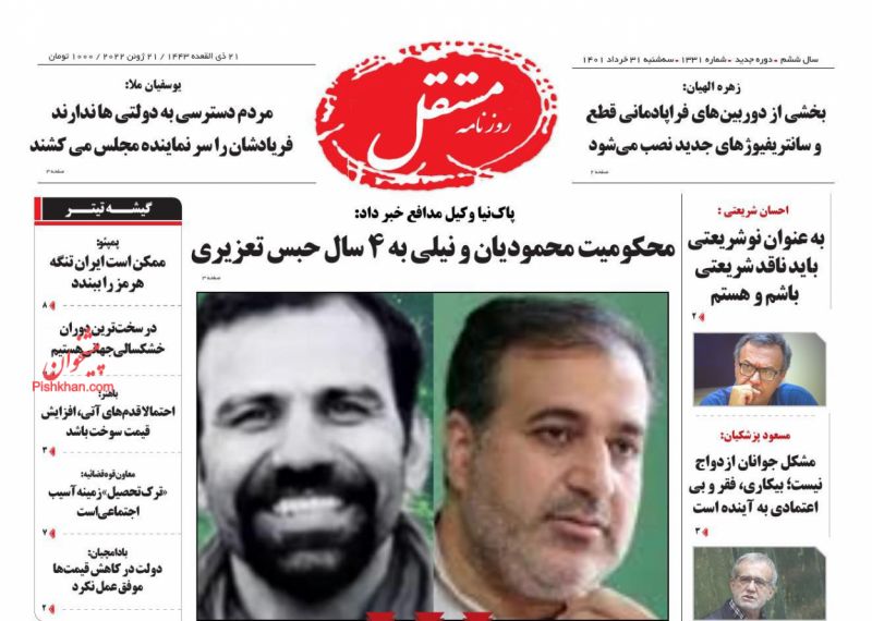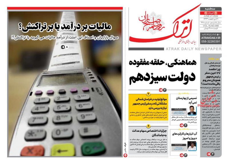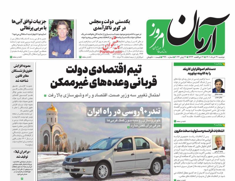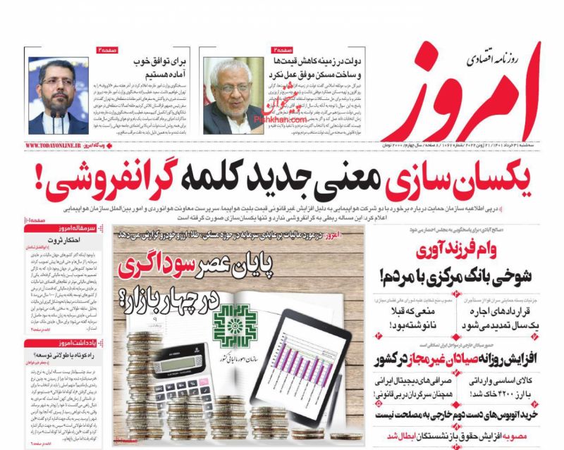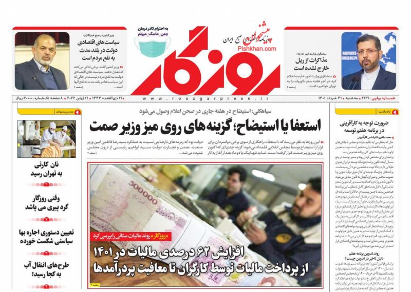 صفحه اول روزنامههای سهشنبه ۳۱ خرداد ۱۴۰۱