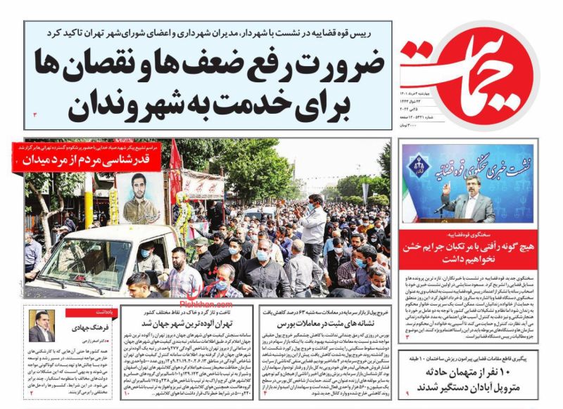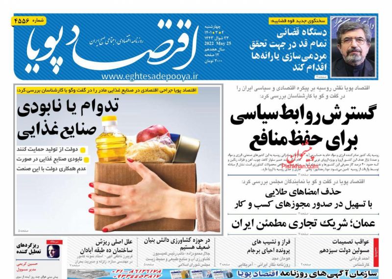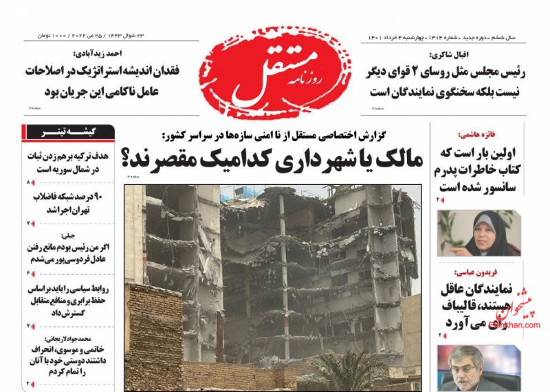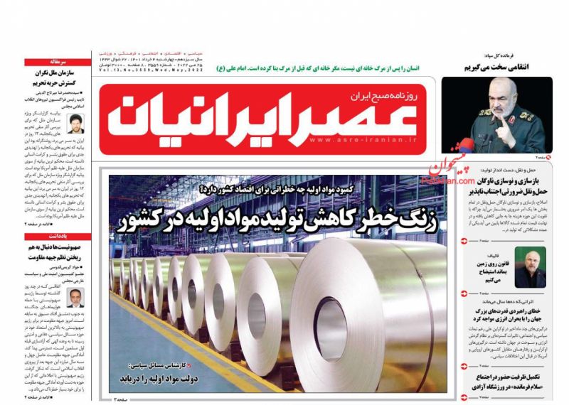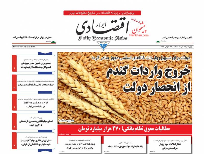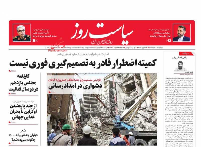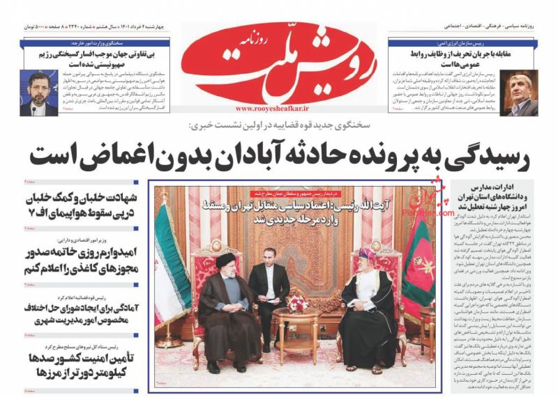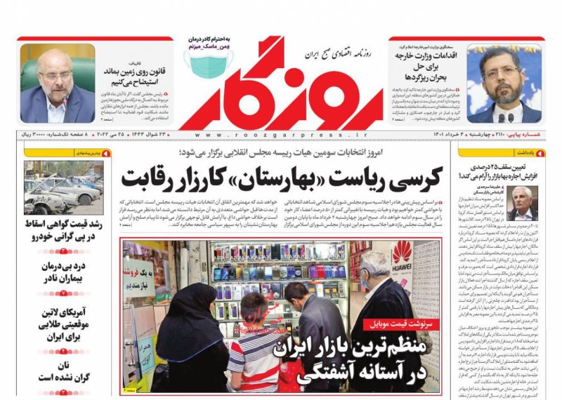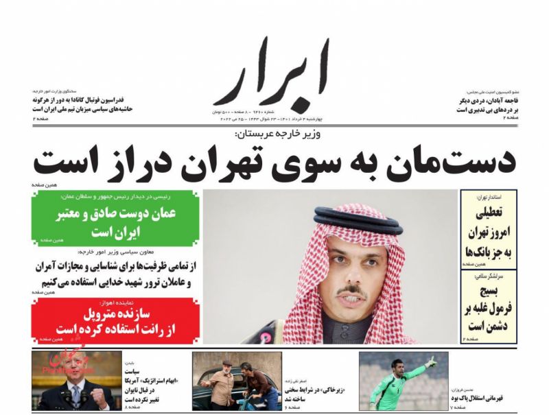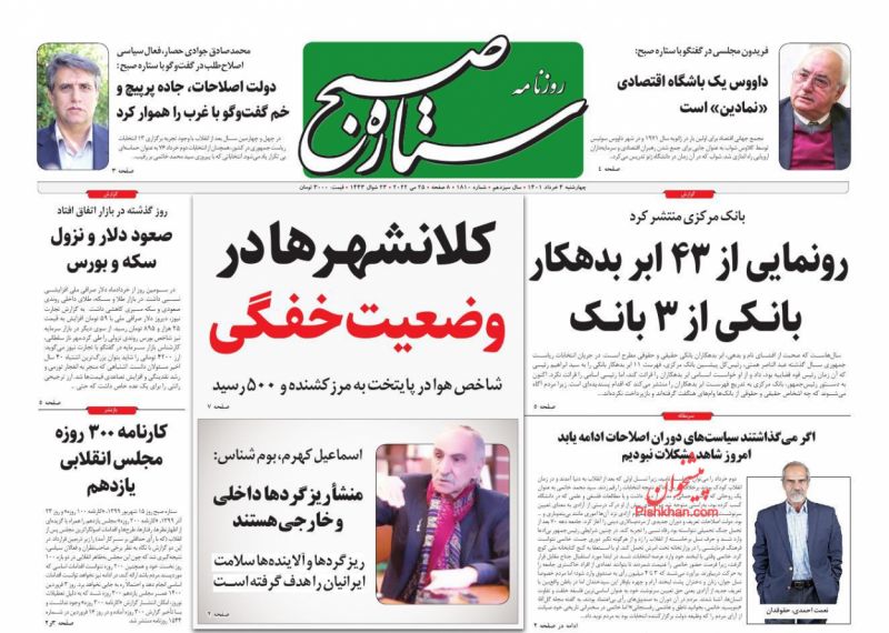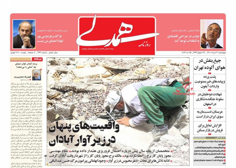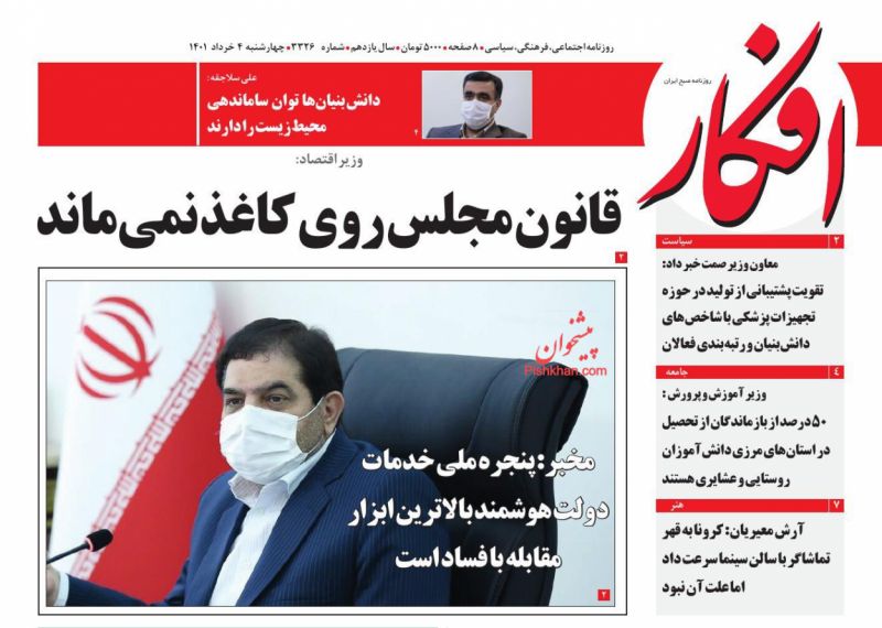 صفحه اول روزنامههای چهارشنبه ۴ خرداد ۱۴۰۱