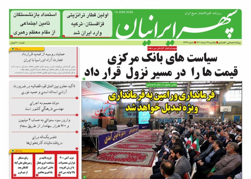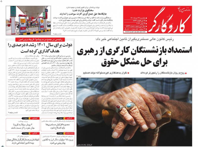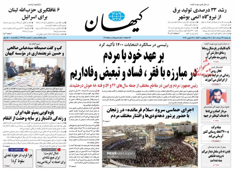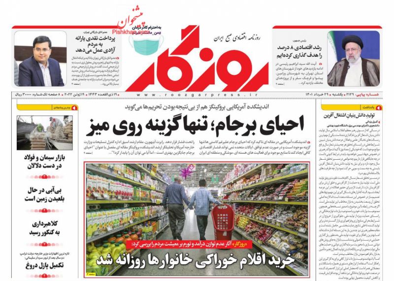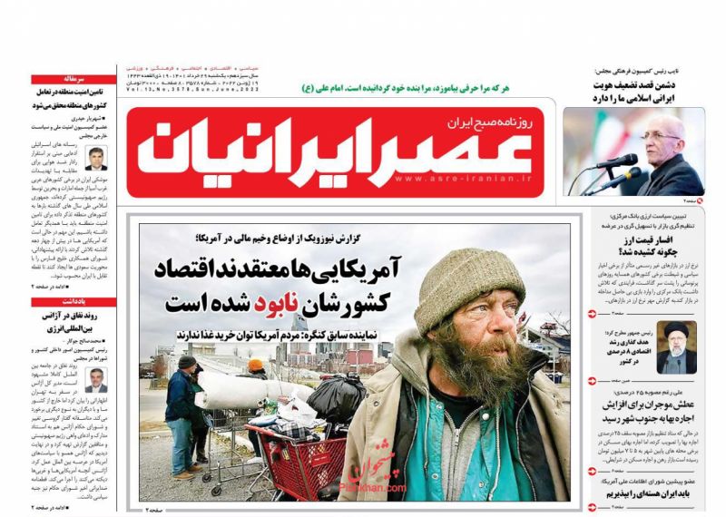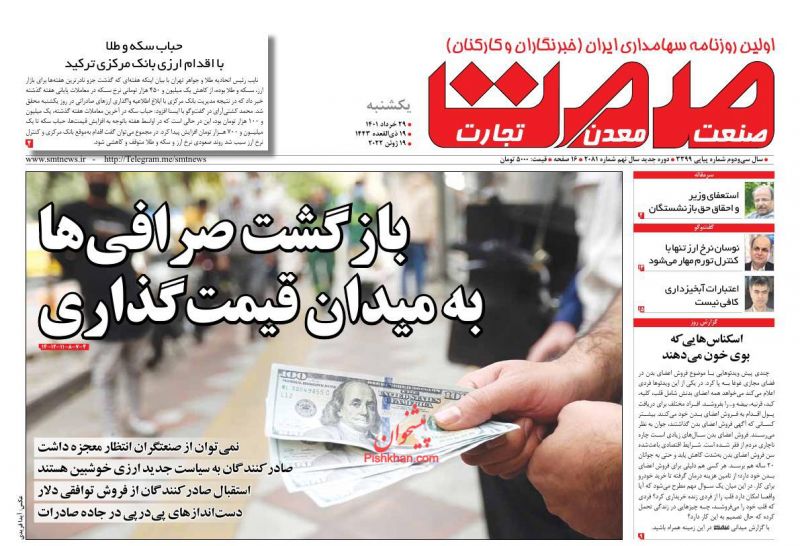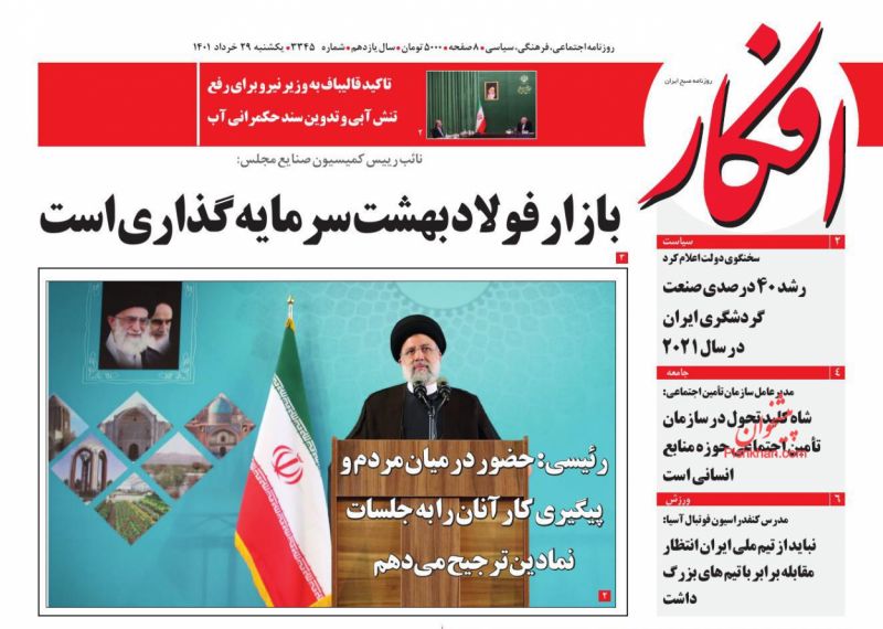 صفحه اول روزنامههای یکشنبه ۲۹ خرداد ۱۴۰۱