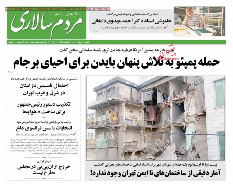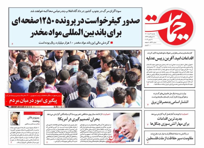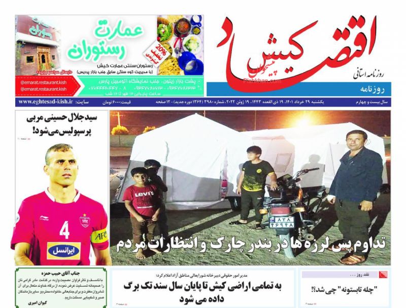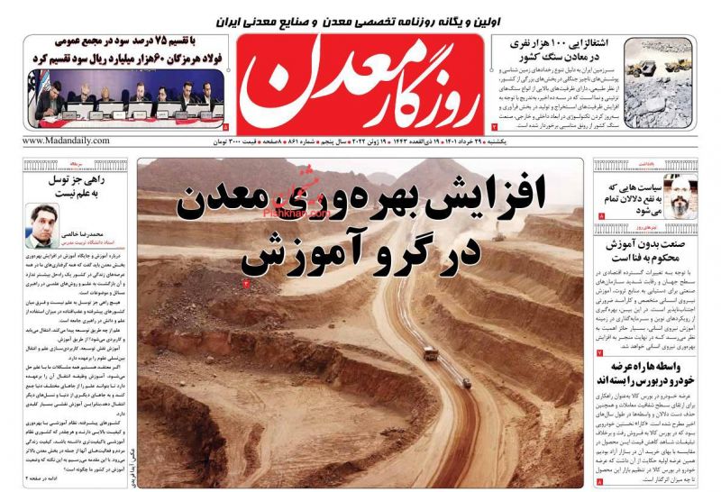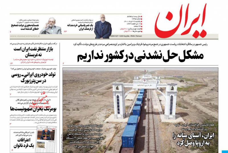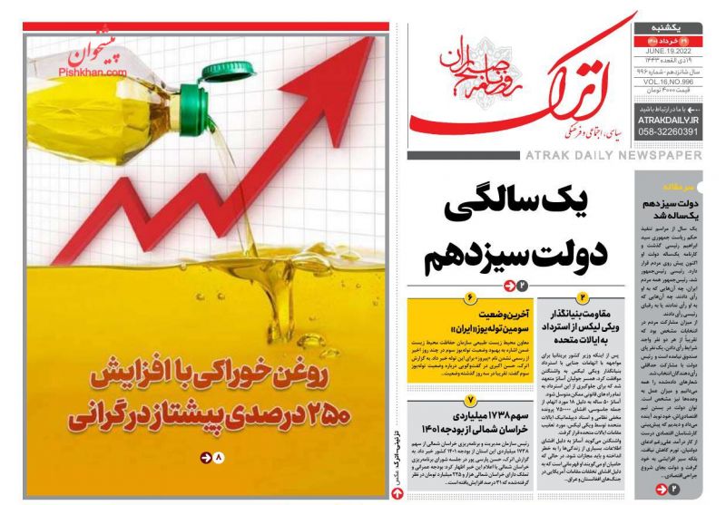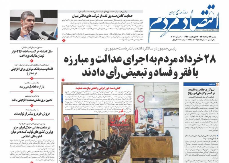 صفحه اول روزنامههای یکشنبه ۲۹ خرداد ۱۴۰۱