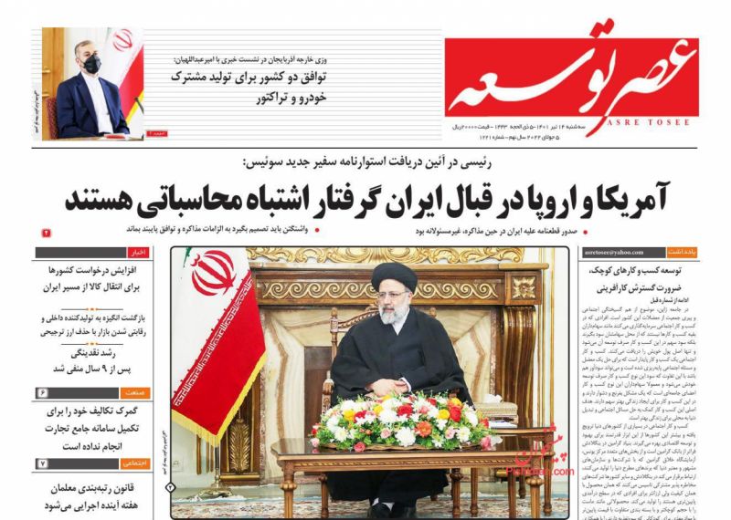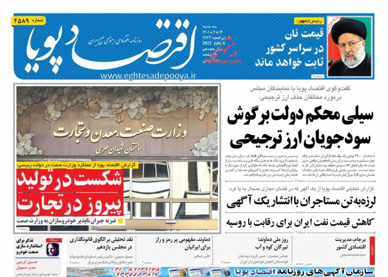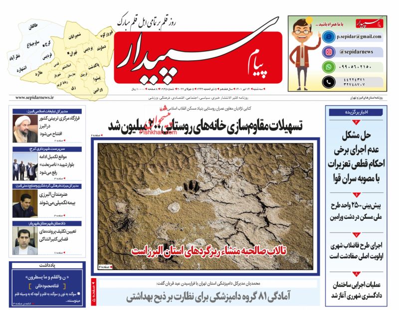 صفحه اول روزنامههای سهشنبه ۱۴ تیر ۱۴۰۱