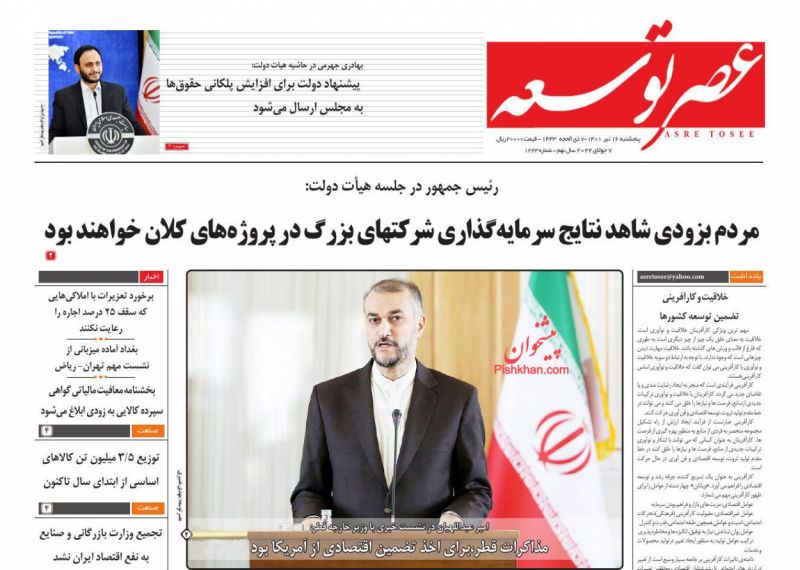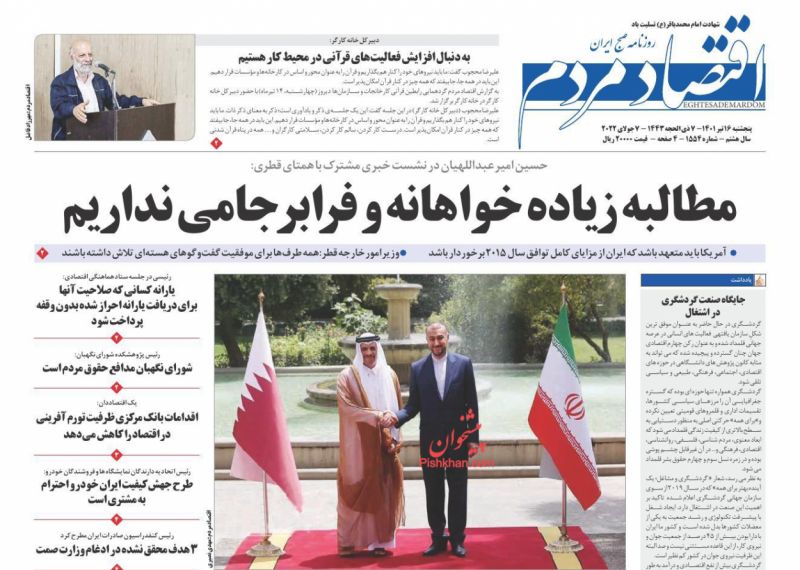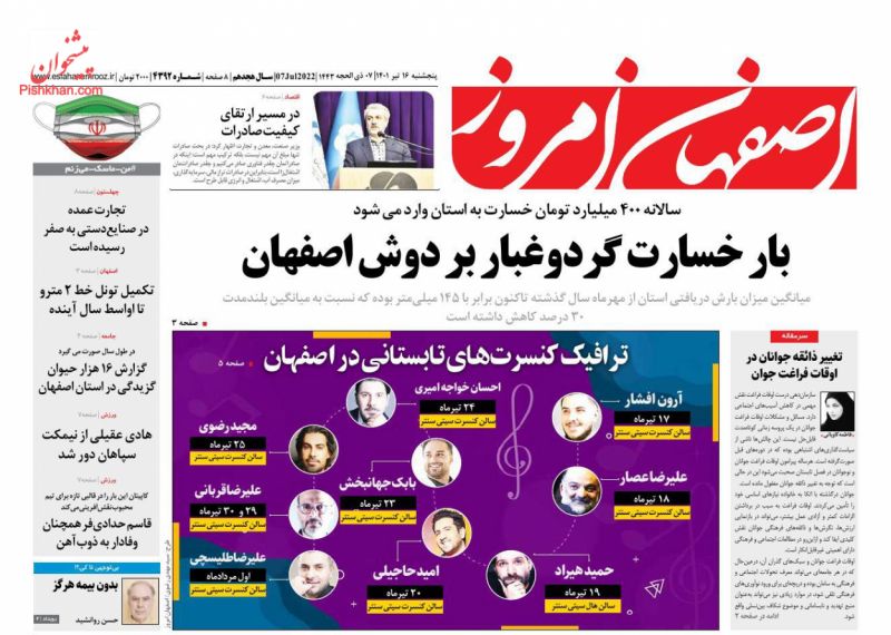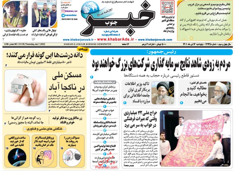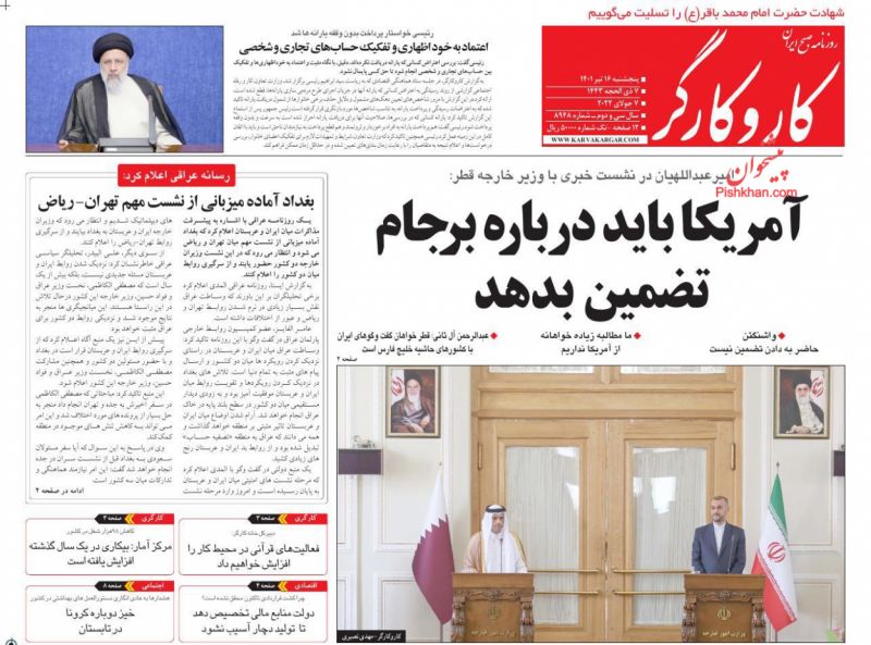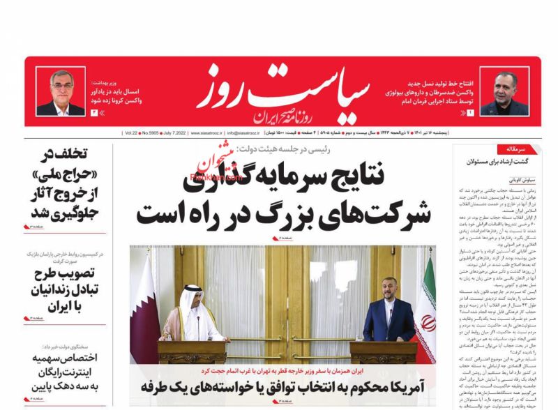 صفحه اول روزنامههای پنجشنبه ۱۶ تیر ۱۴۰۱