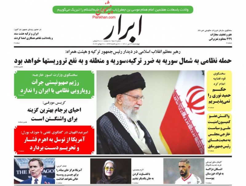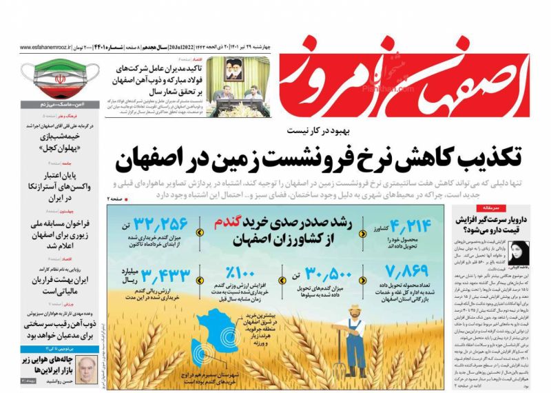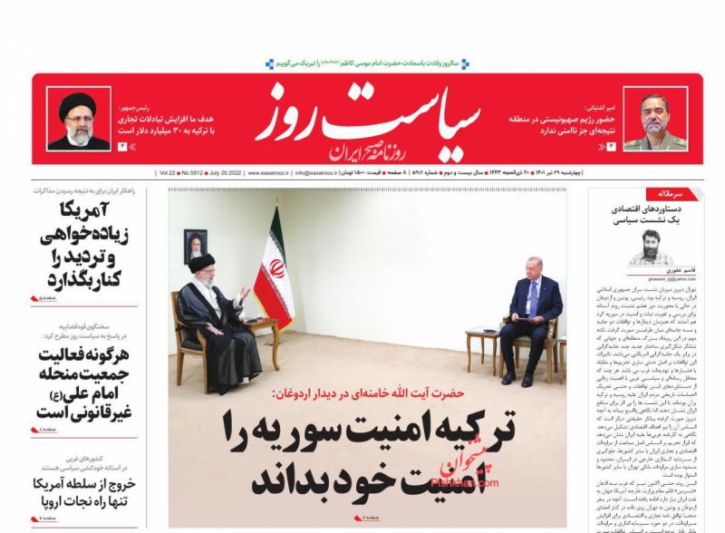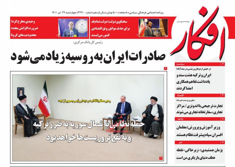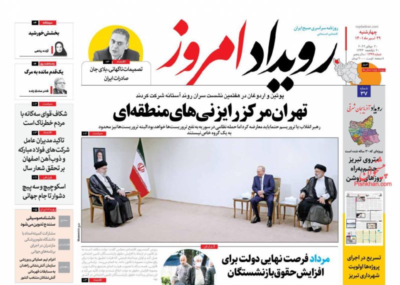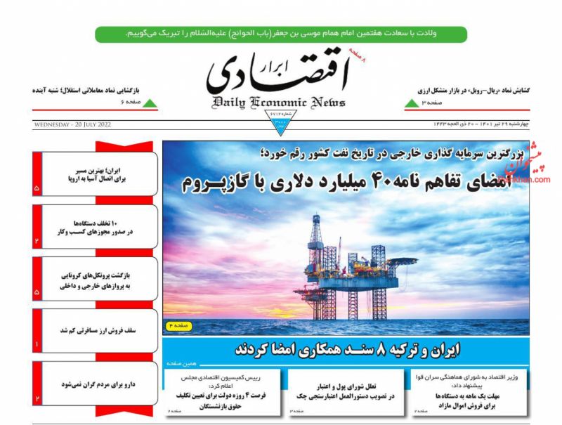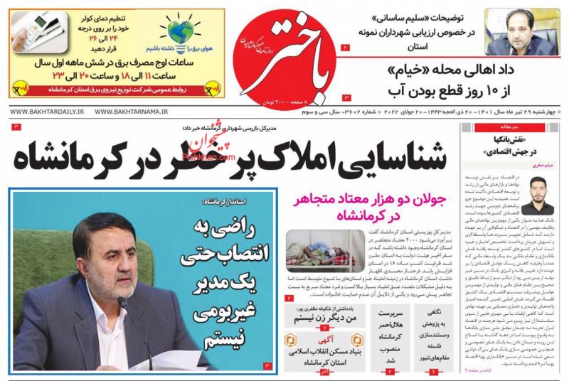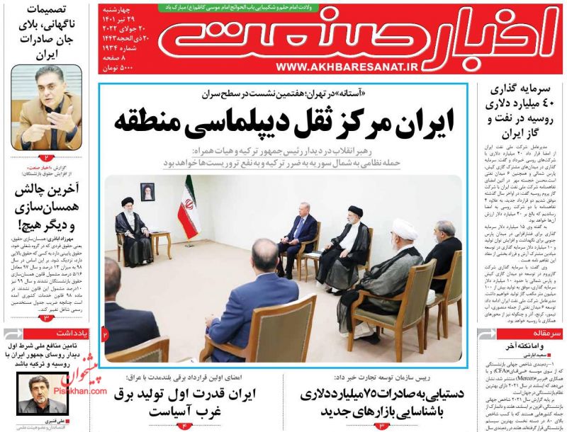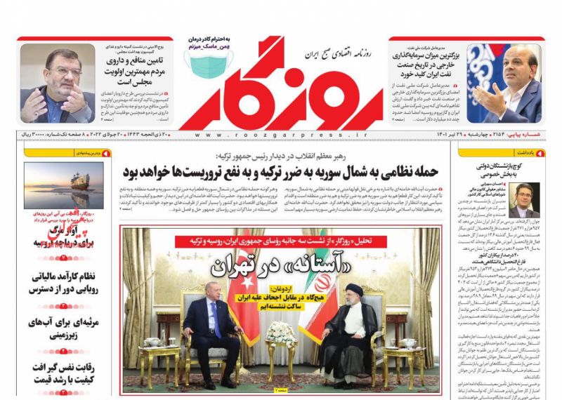 صفحه اول روزنامههای چهارشنبه ۲۹ تیر ۱۴۰۱