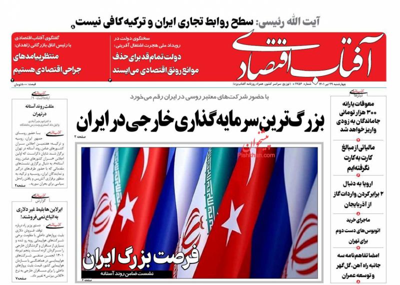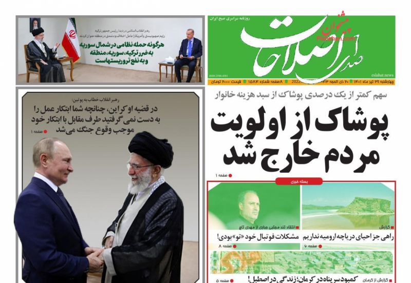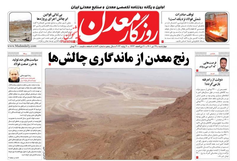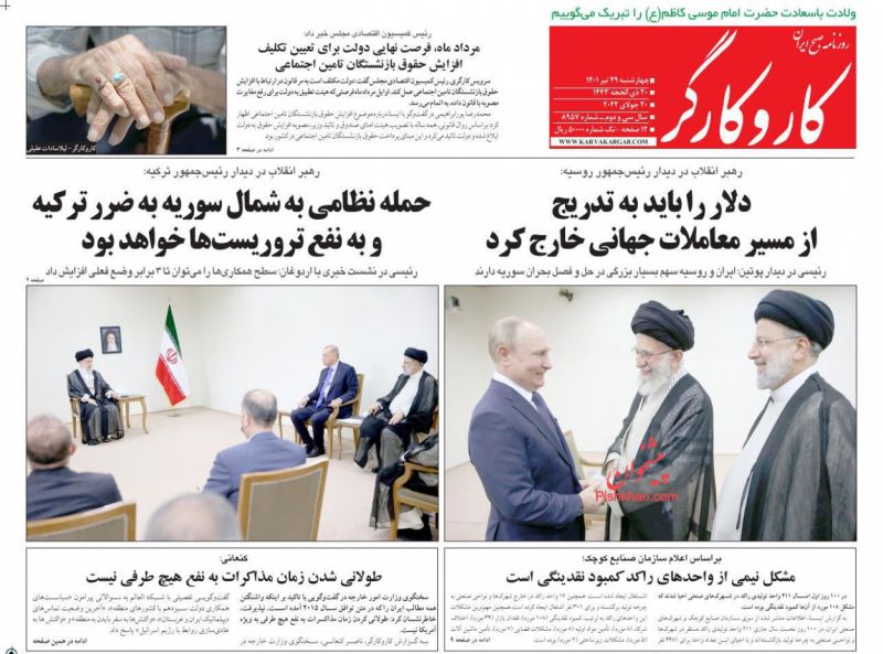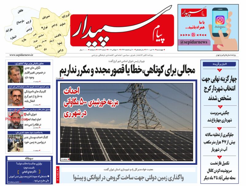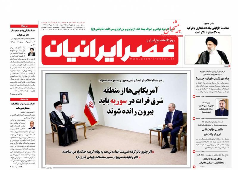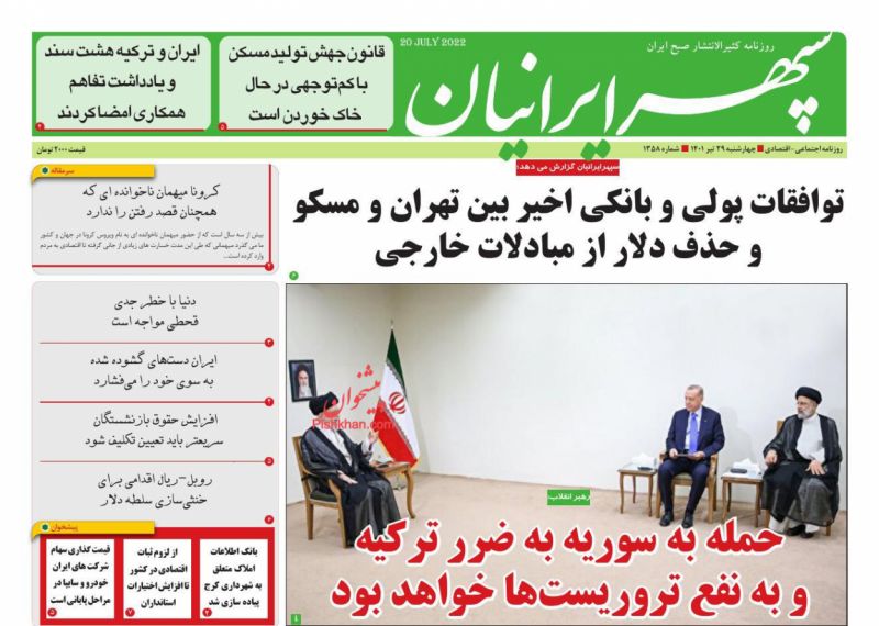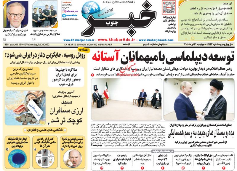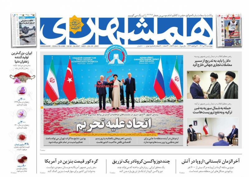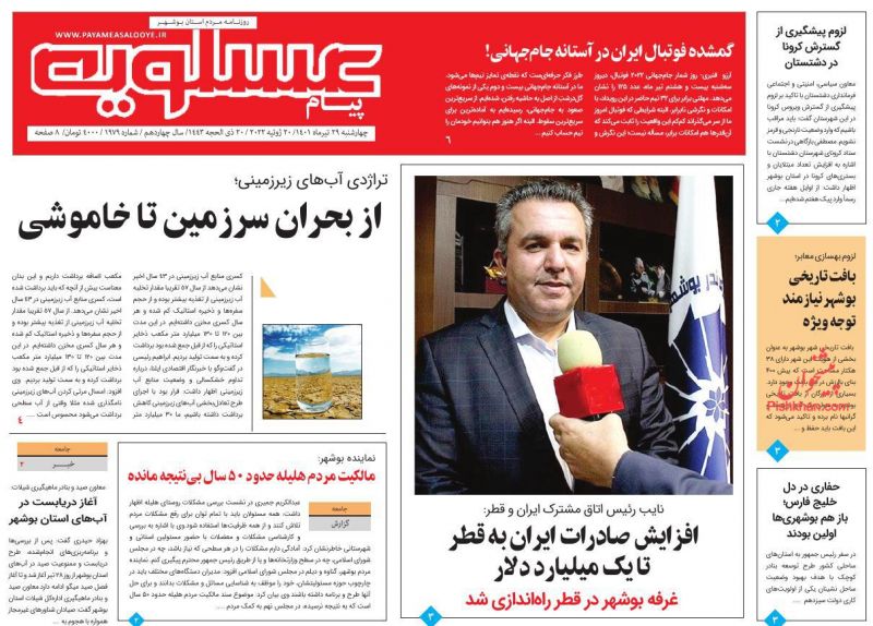 صفحه اول روزنامههای چهارشنبه ۲۹ تیر ۱۴۰۱