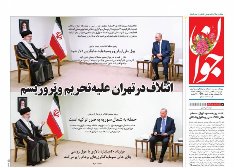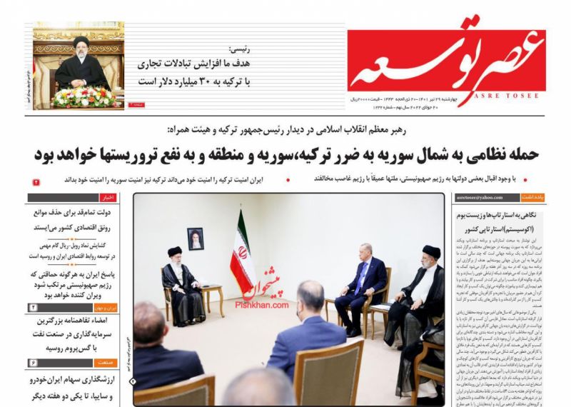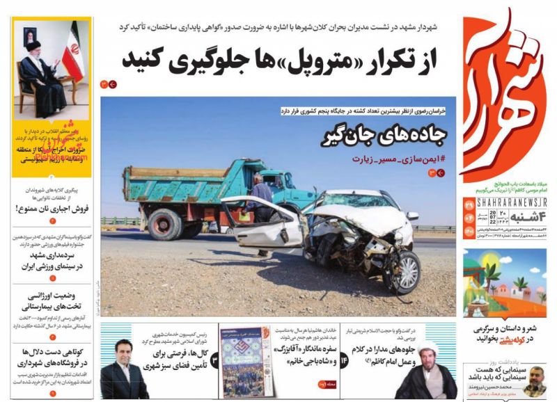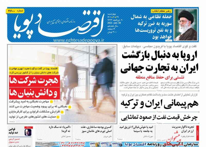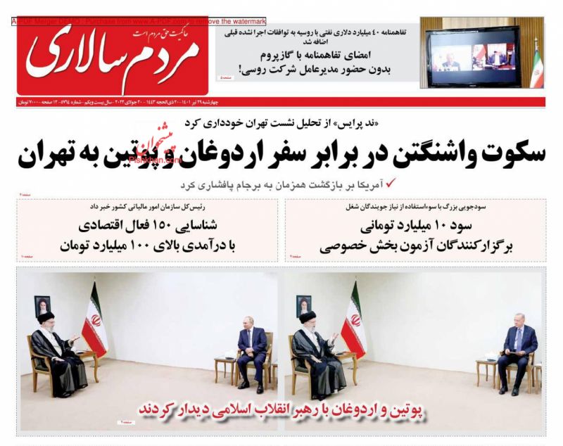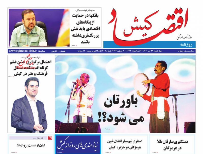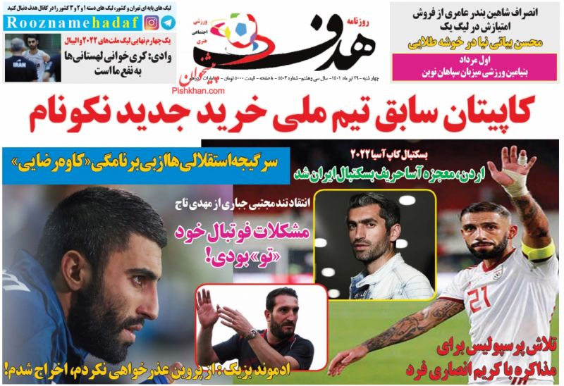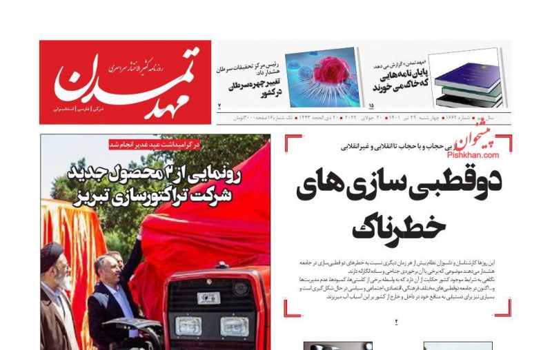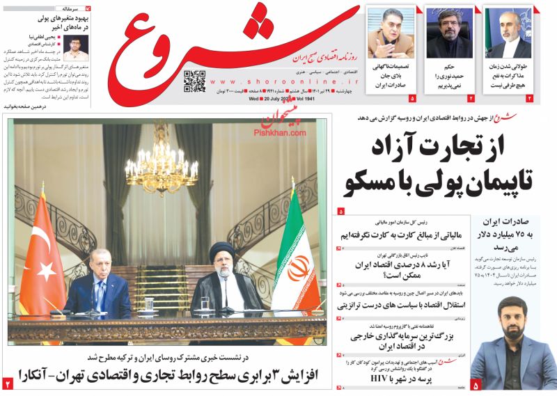 صفحه اول روزنامههای چهارشنبه ۲۹ تیر ۱۴۰۱
