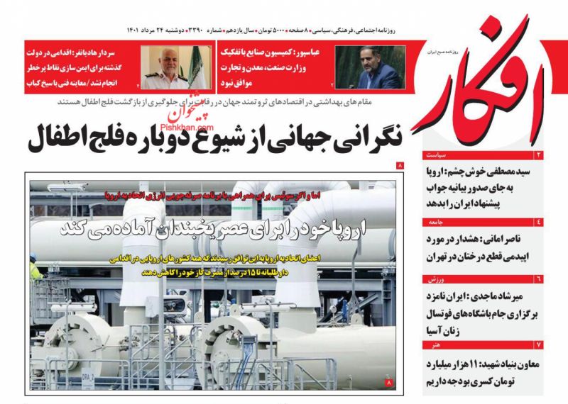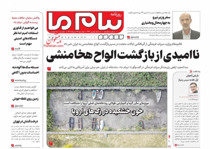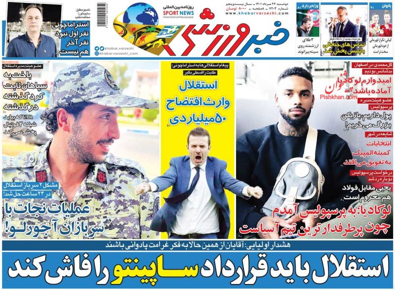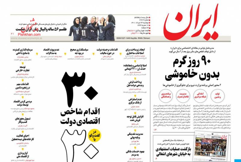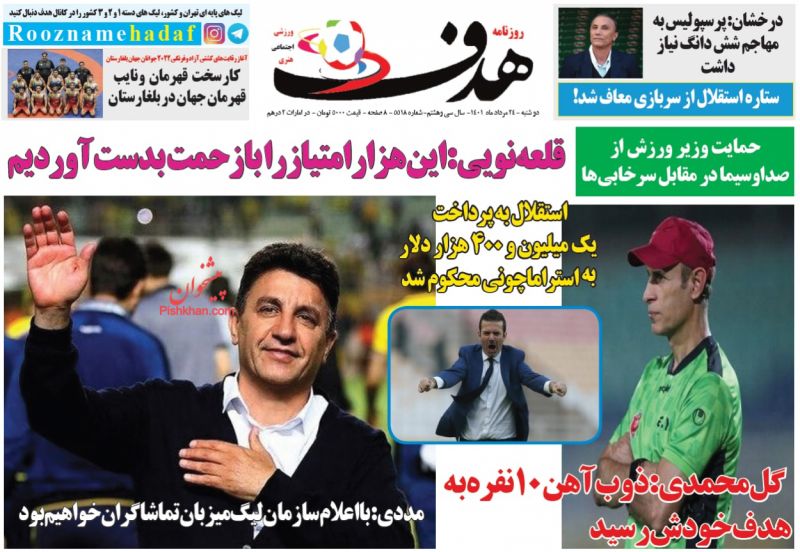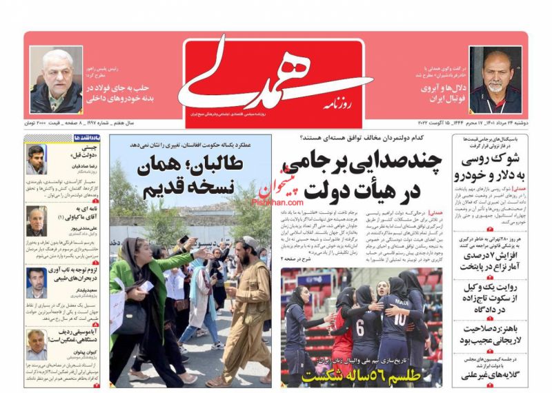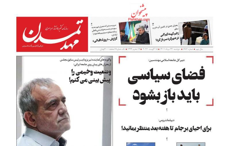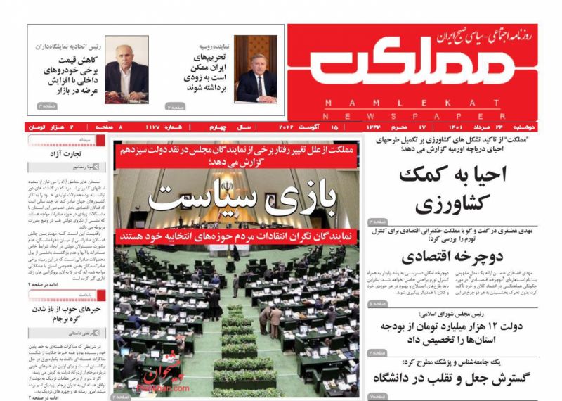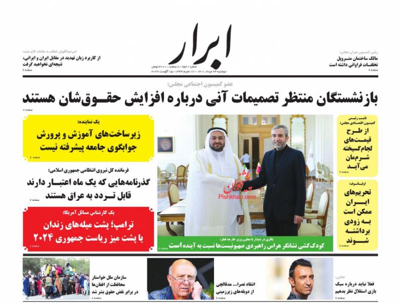 صفحه اول روزنامههای دوشنبه ۲۴ مرداد ۱۴۰۱