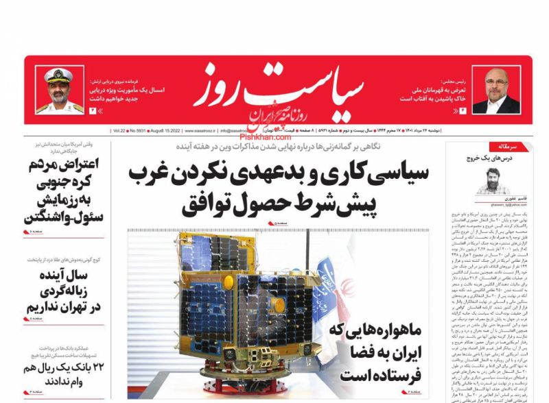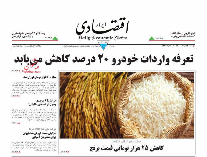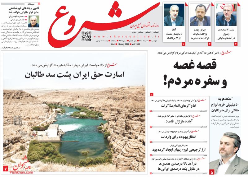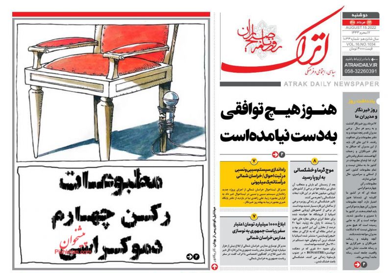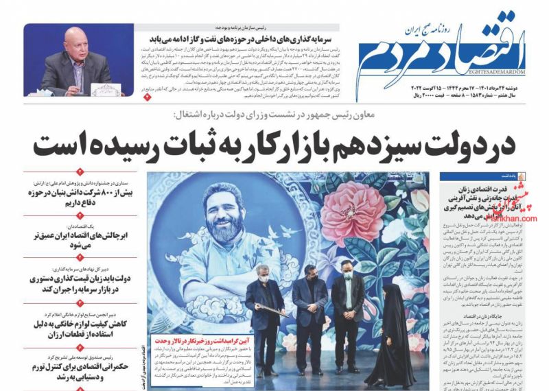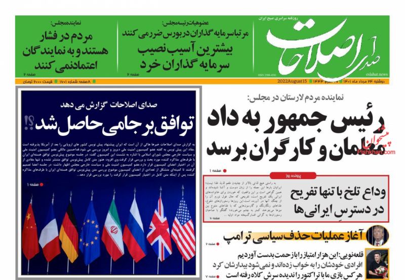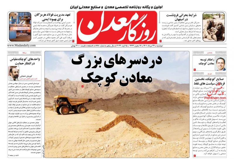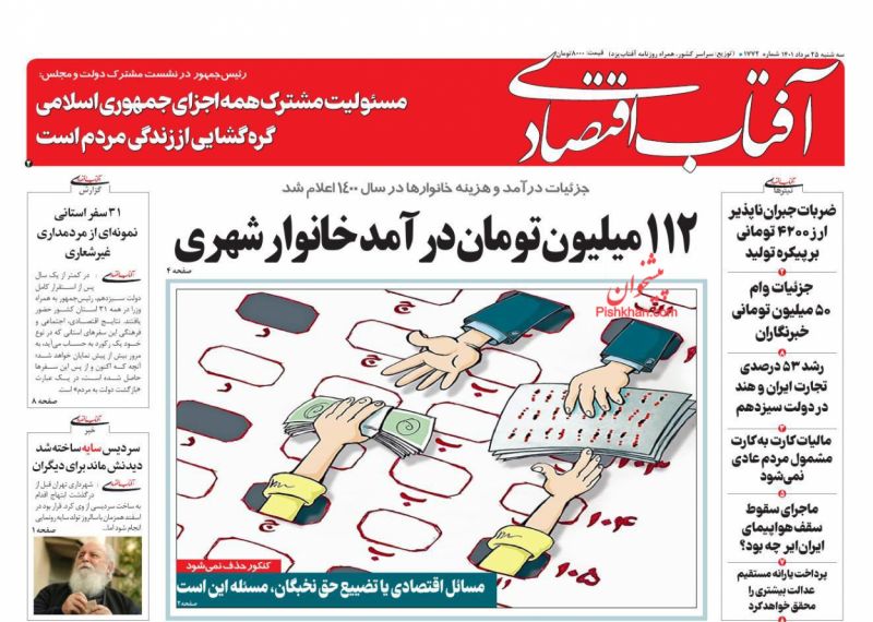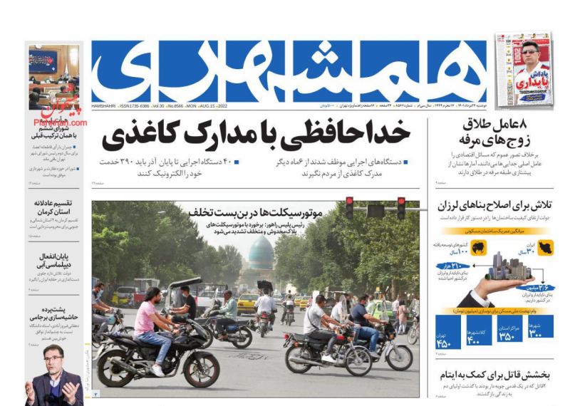 صفحه اول روزنامههای دوشنبه ۲۴ مرداد ۱۴۰۱