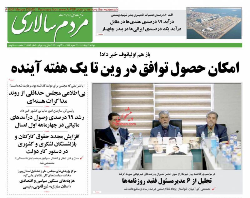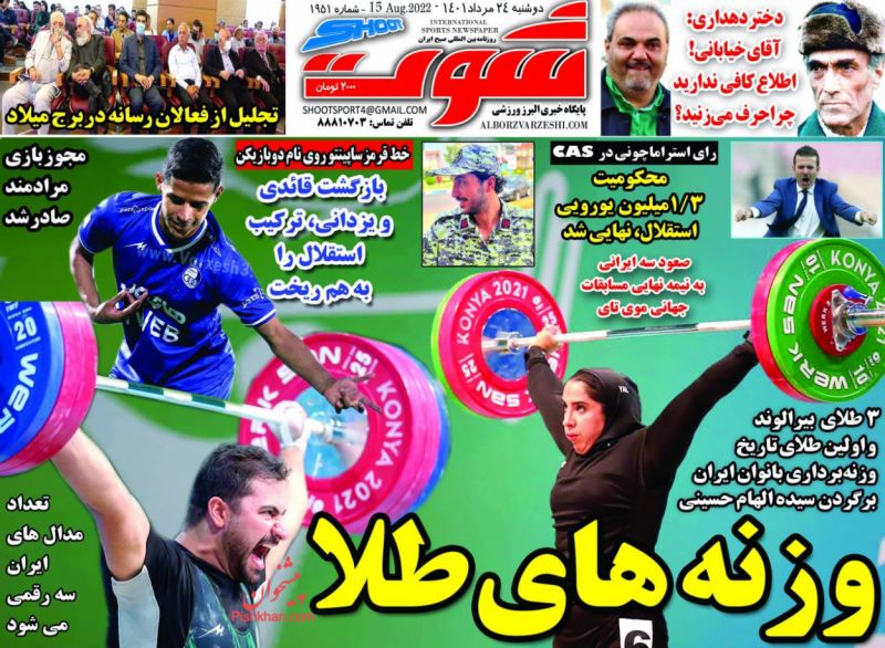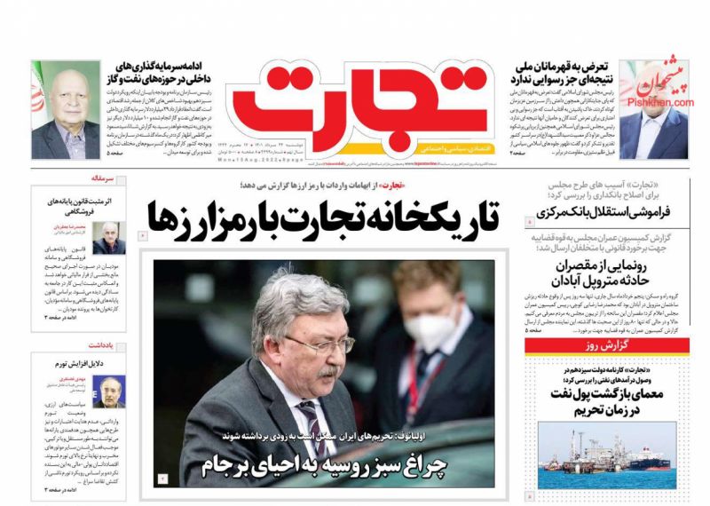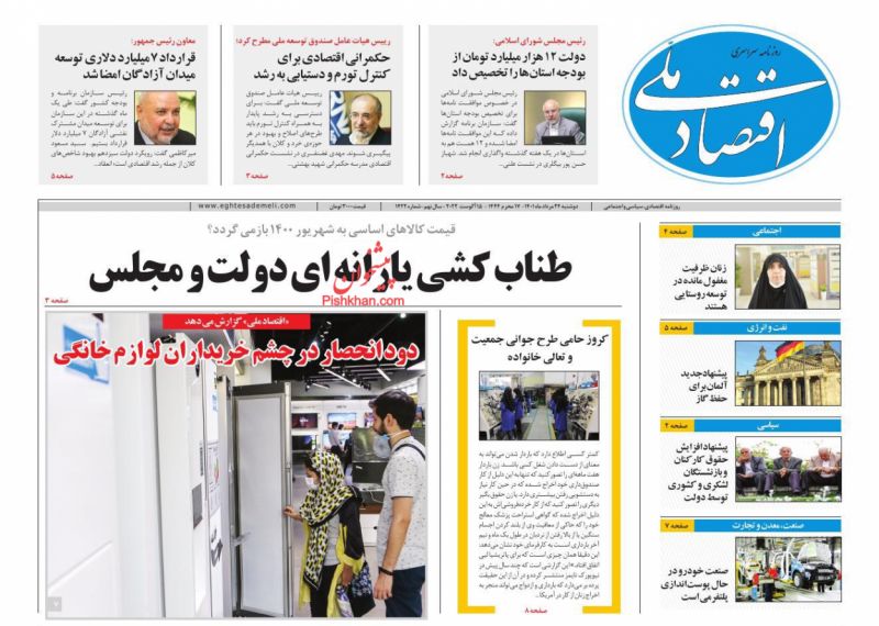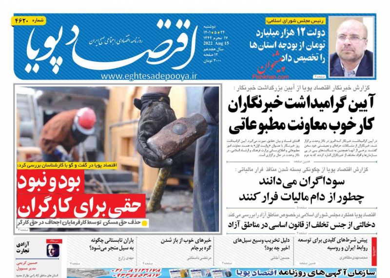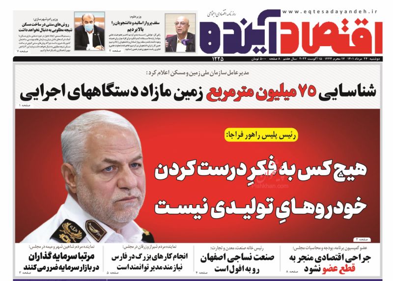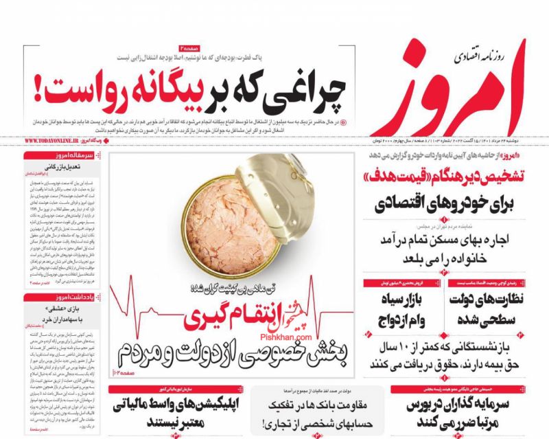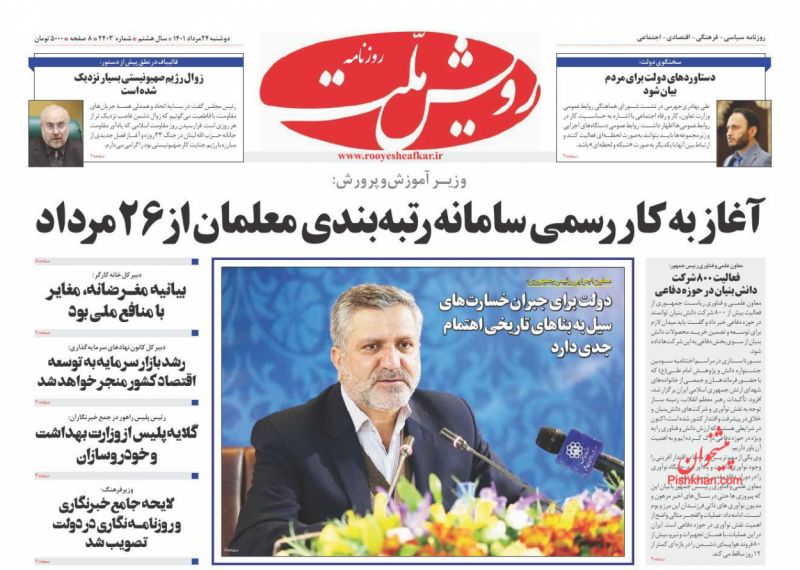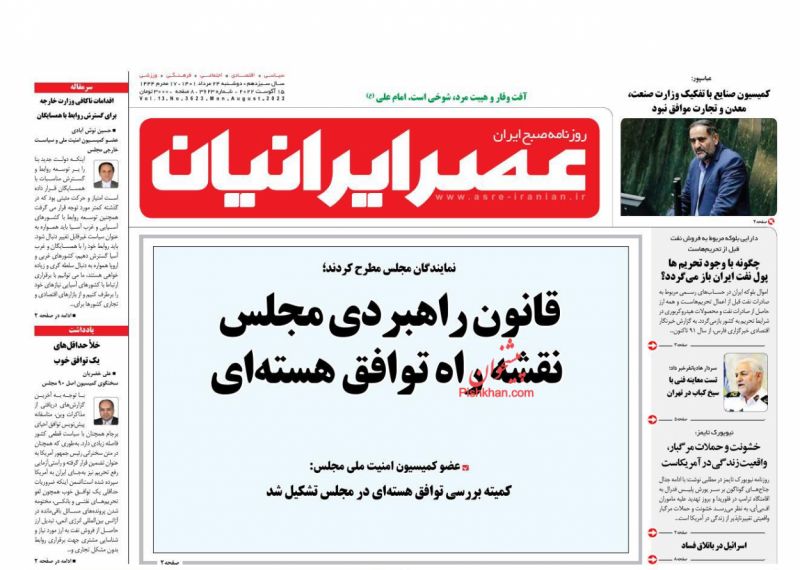 صفحه اول روزنامههای دوشنبه ۲۴ مرداد ۱۴۰۱