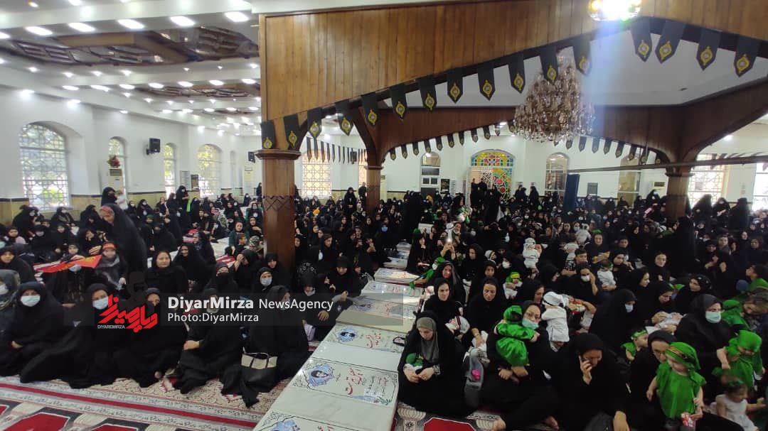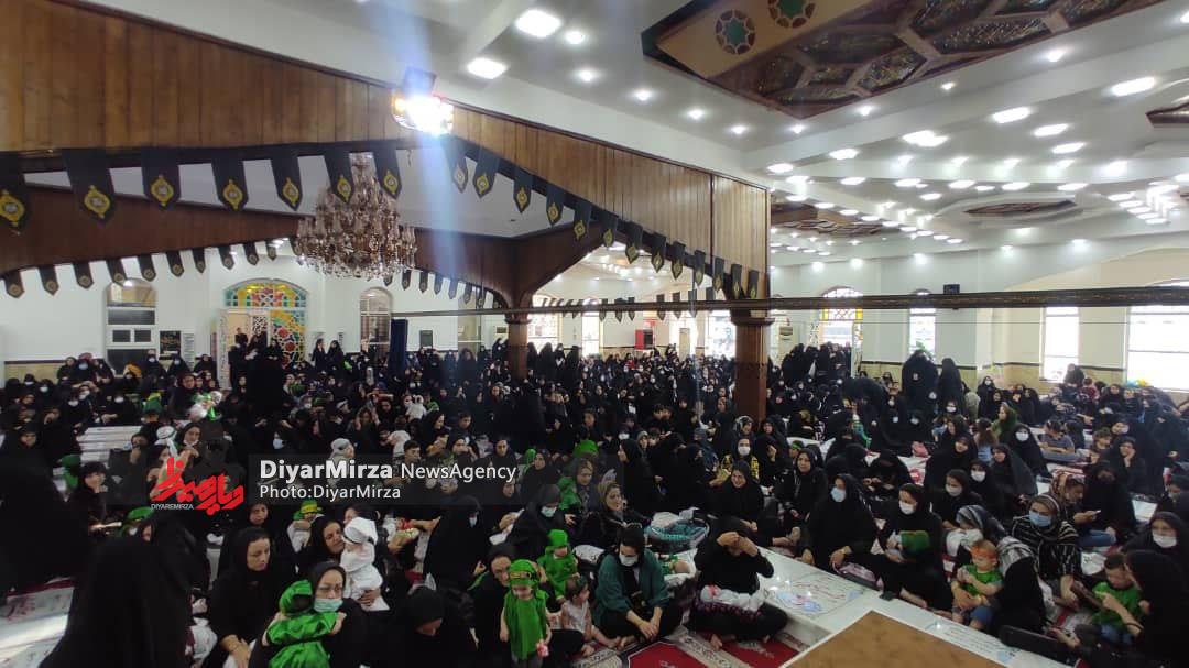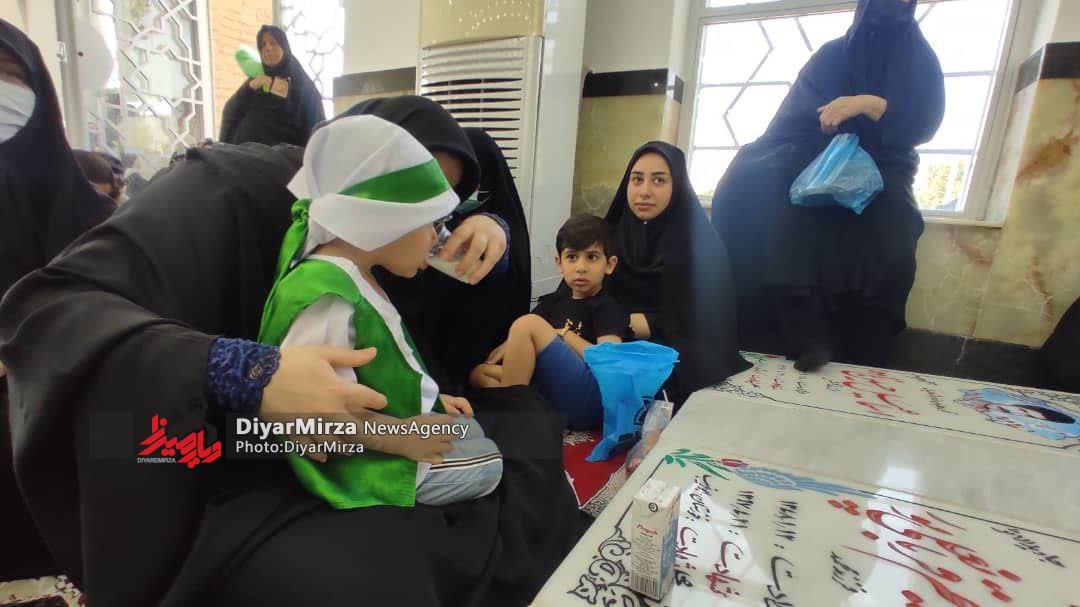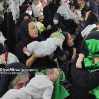 در این مراسم معنوی جمع زیادی از مادران با پوشاندن لباسهای سبز و مشکی بر تن فرزندان شیرخواره خود و به یاد حضرت علی اصغر(ع) طفل ۶ ماهه امام حسین(ع) عزاداری و نوحهخوانی کردند.