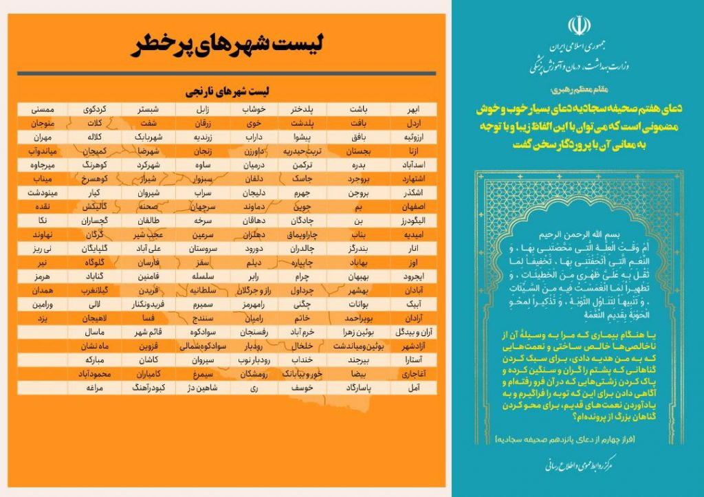 کاهش تعداد شهرهای قرمز کرونایی | ۱۶۳ شهر در وضعیت نارنجی