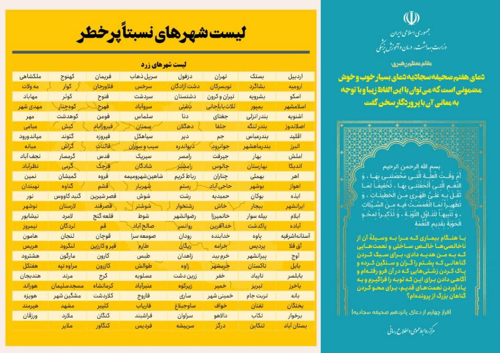 همچنین تعداد شهرهای با وضعیت زرد از ۱۷۳ به ۲۰۷ و تعداد شهرهای با وضعیت آبی از ۱۳ به ۱۴ شهر رسید.
