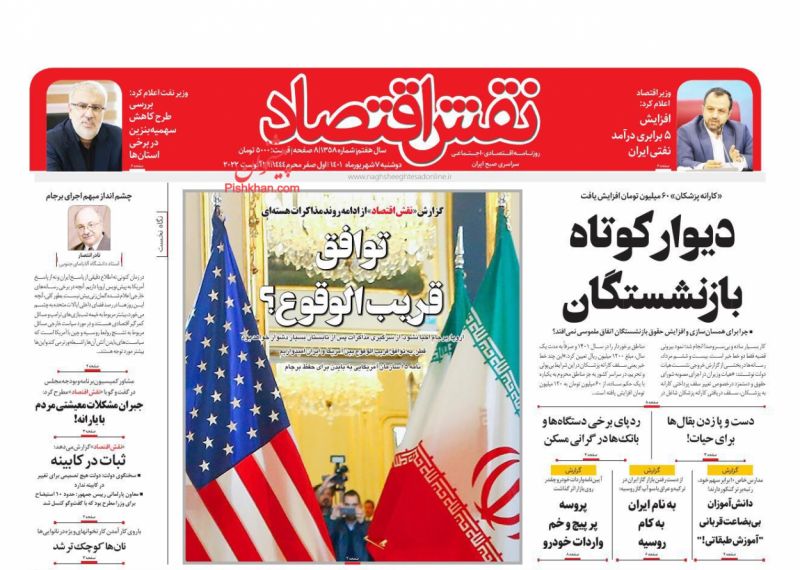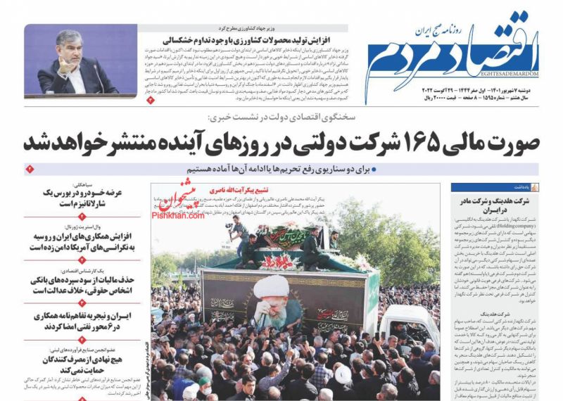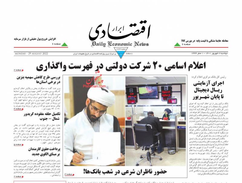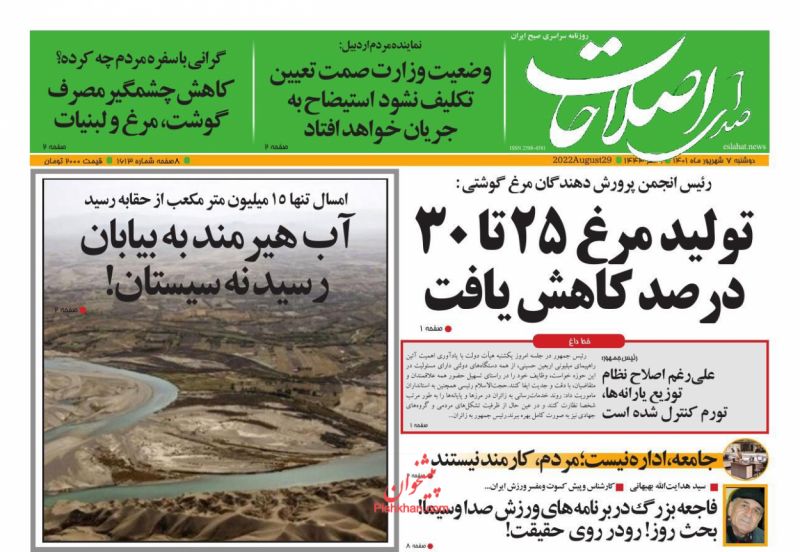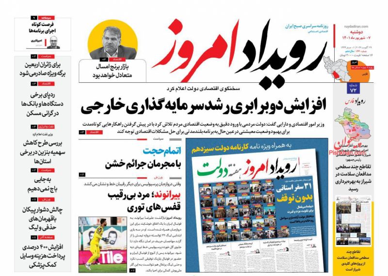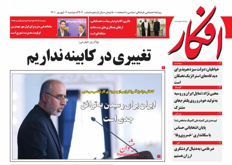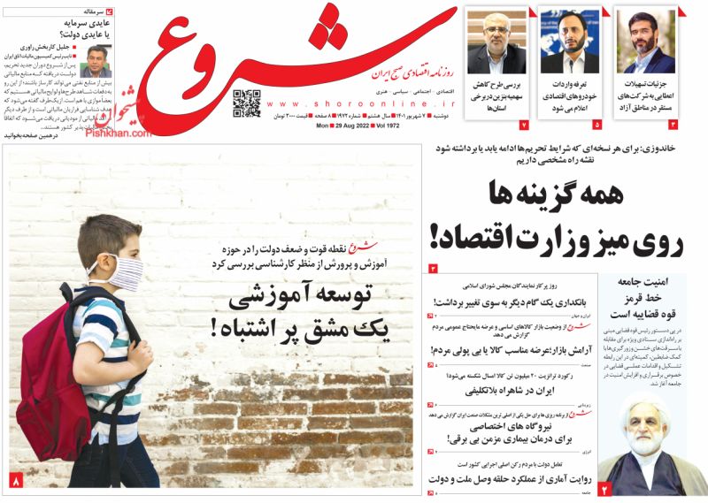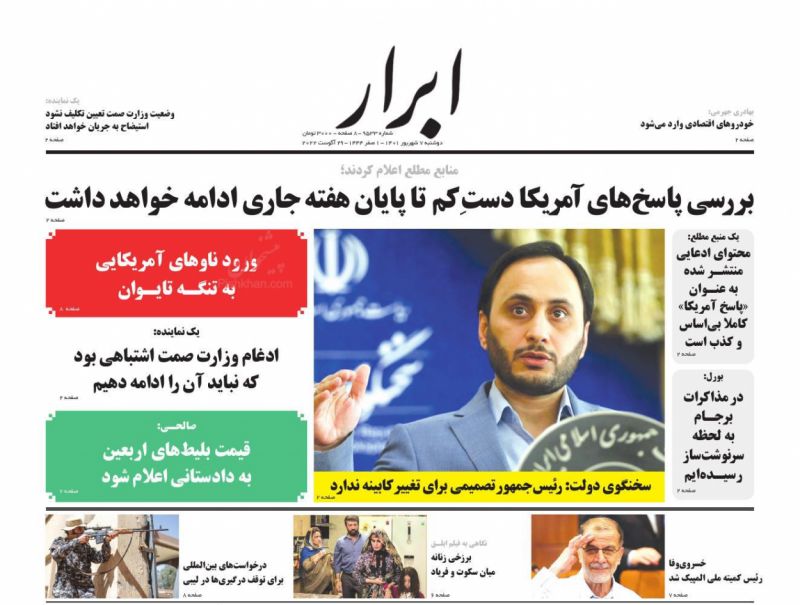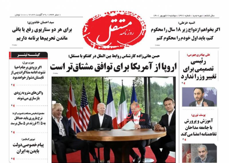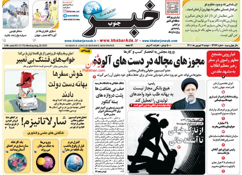 صفحه اول روزنامههای دوشنبه ۷ شهریور ۱۴۰۱
