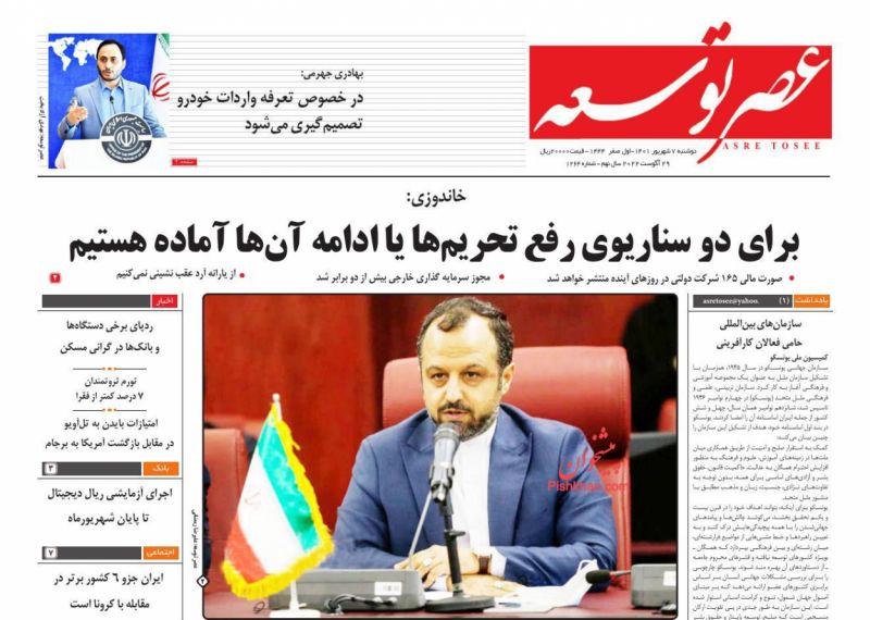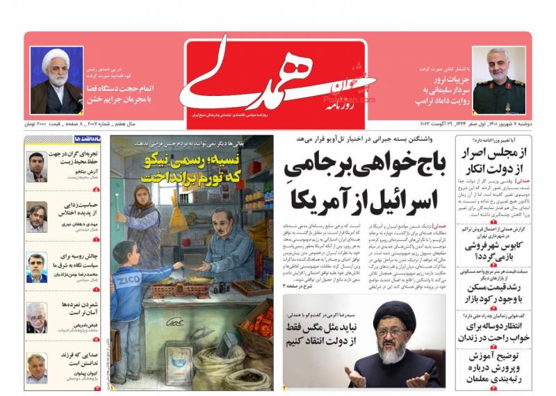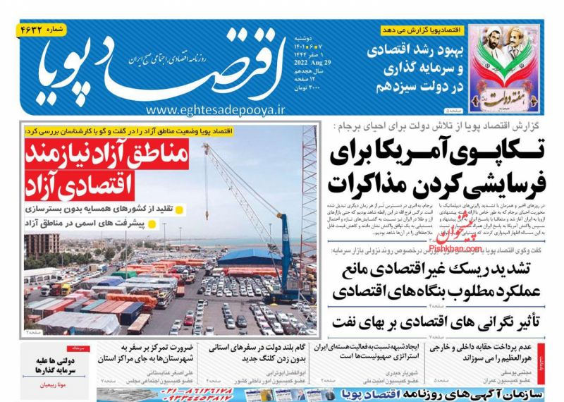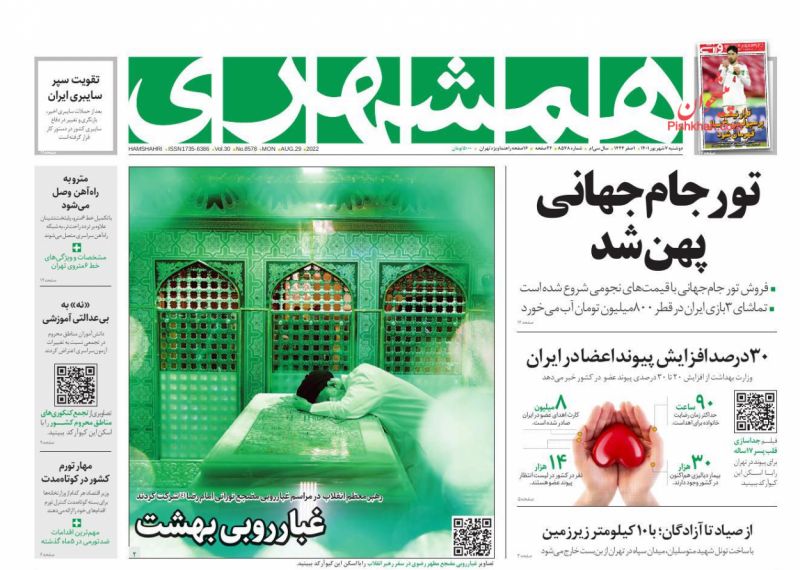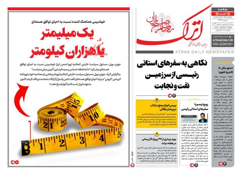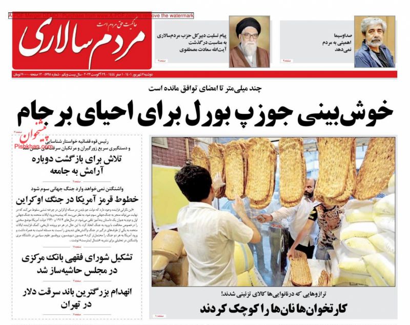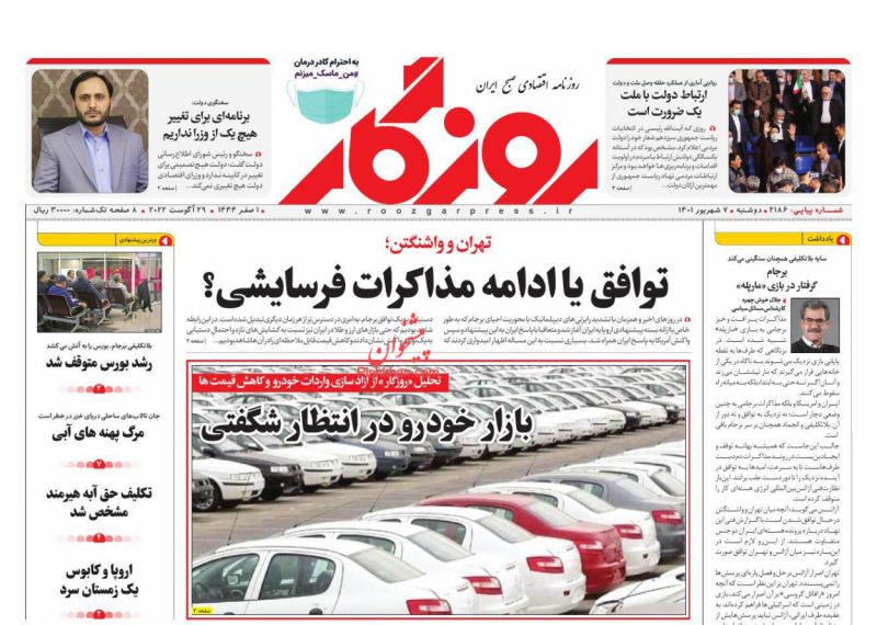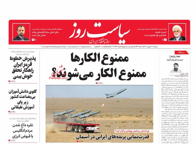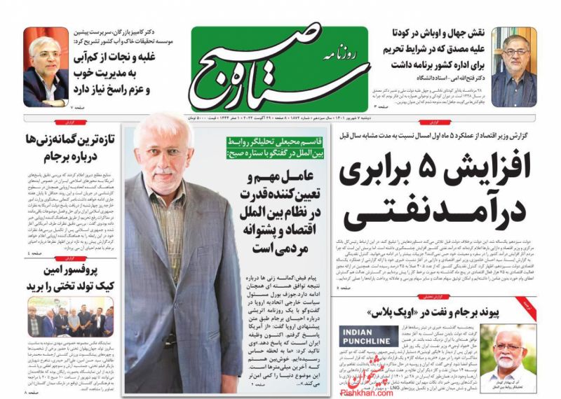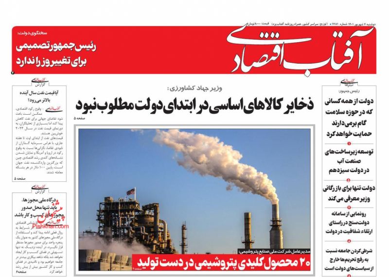 صفحه اول روزنامههای دوشنبه ۷ شهریور ۱۴۰۱