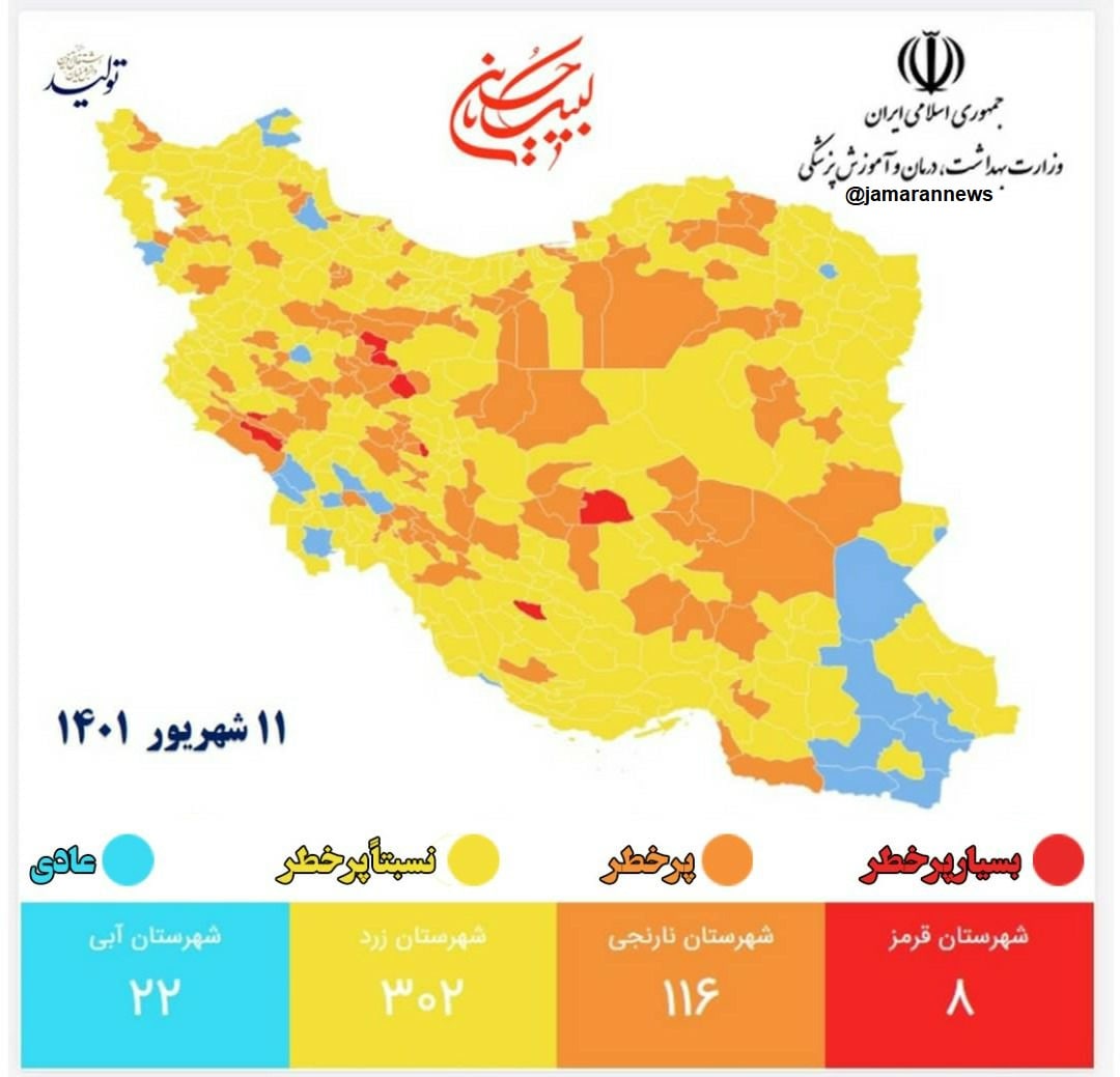 نقشه کرونایی کشور “آبی” تر شد | فقط ۸ شهر قرمز در کشور داریم