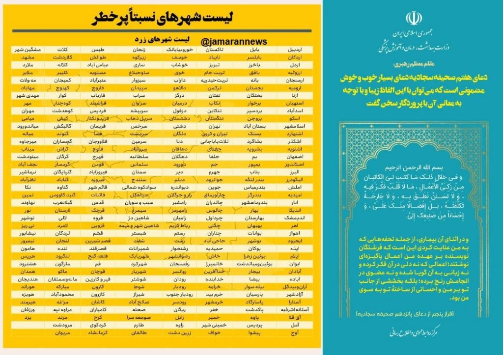 همچنین تعداد شهرهای با وضعیت زرد از ۲۰۷ به ۳۰۲ و تعداد شهرهای با وضعیت آبی از ۱۴ به ۲۲ شهر افزایش یافت.