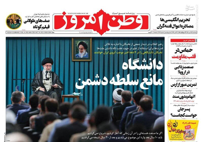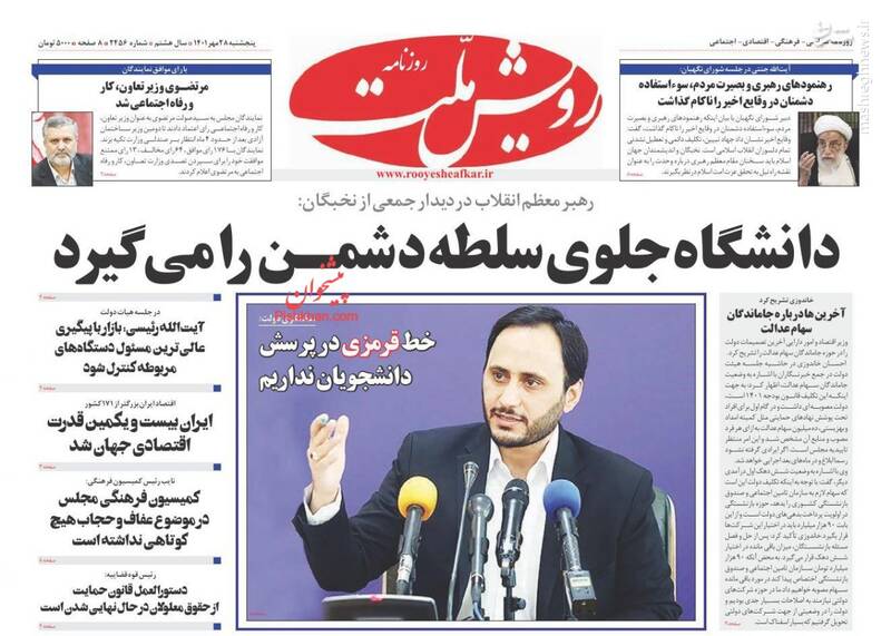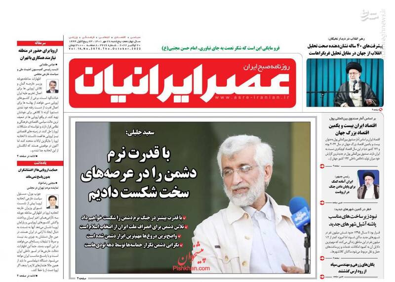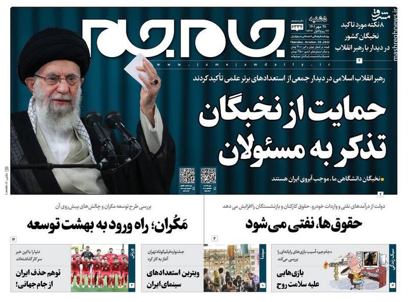 صفحه اول روزنامههای پنجشنبه ۲۸ مهر ۱۴۰۱