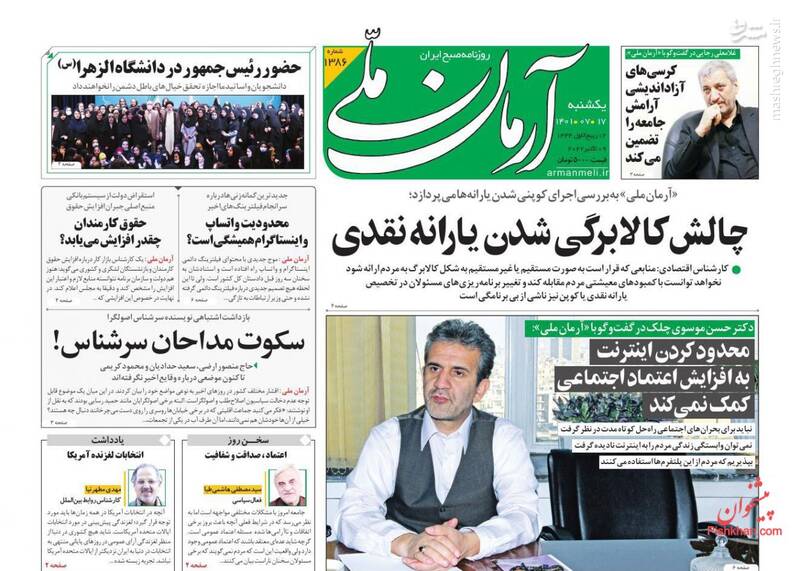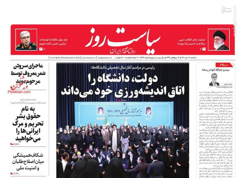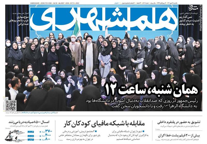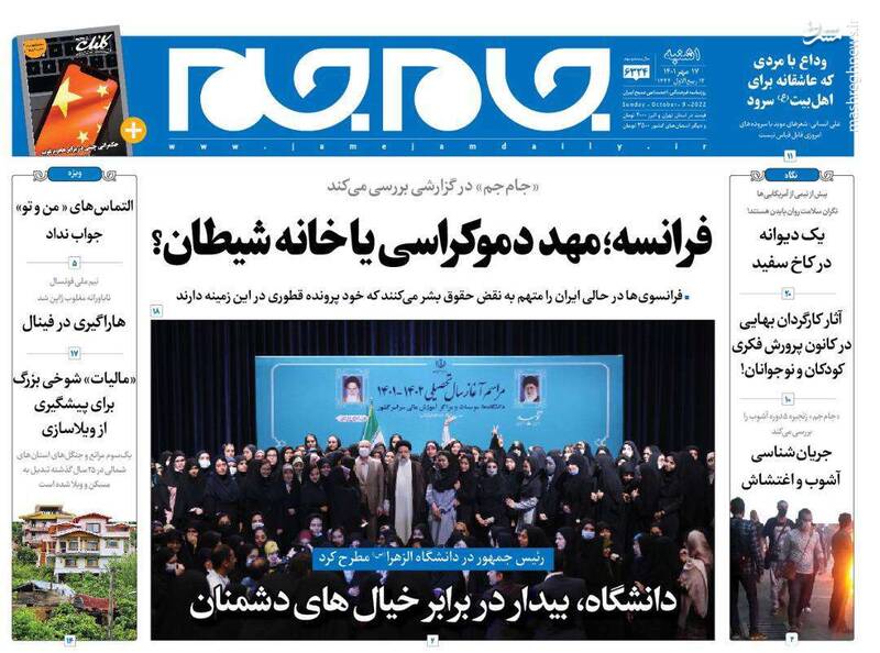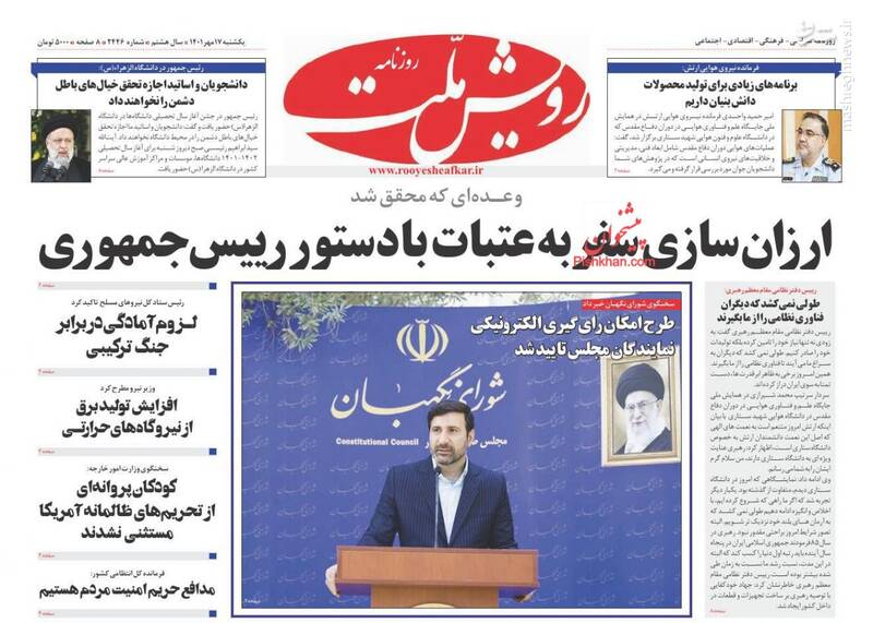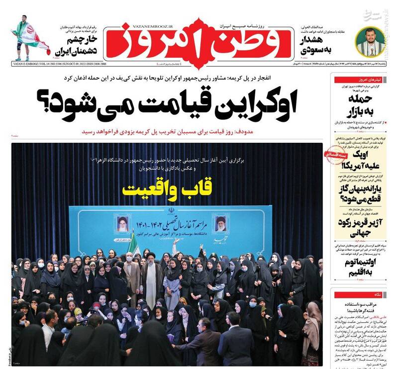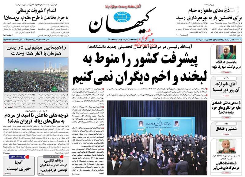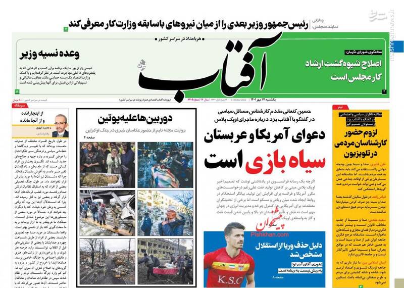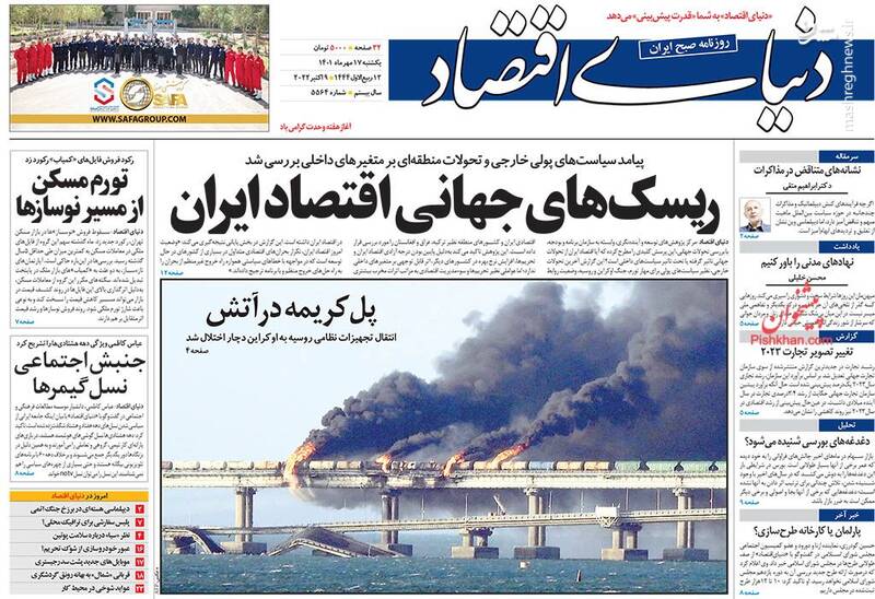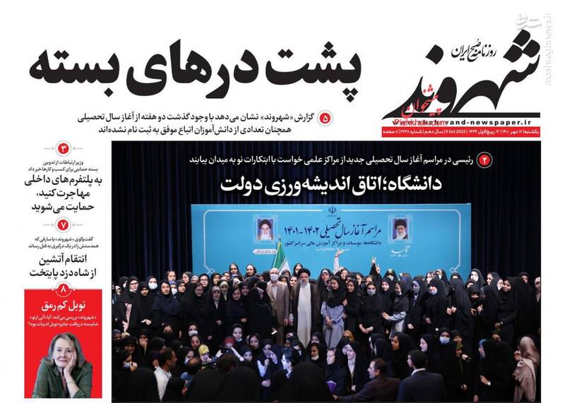 صفحه اول روزنامههای یکشنبه ۱۷ مهر ۱۴۰۱