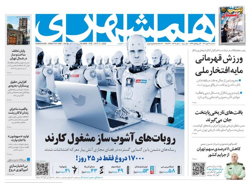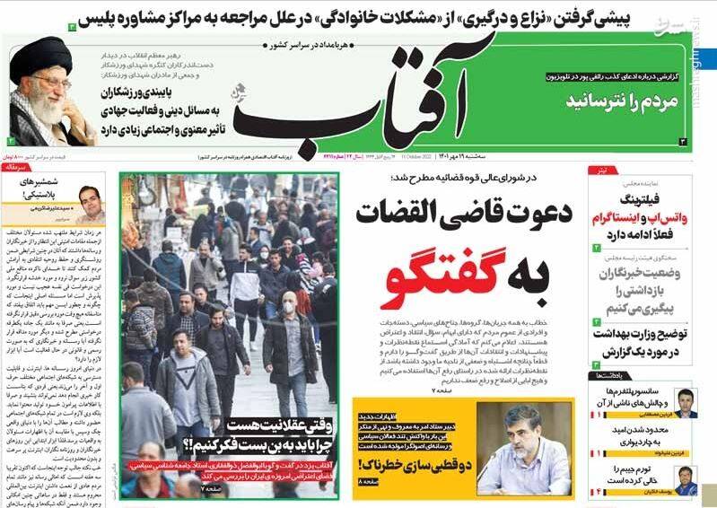 صفحه اول روزنامههای سهشنبه ۱۹ مهر ۱۴۰۱