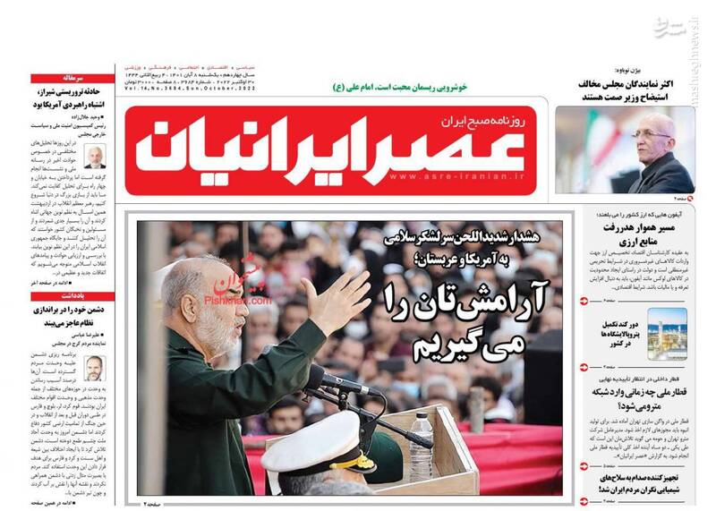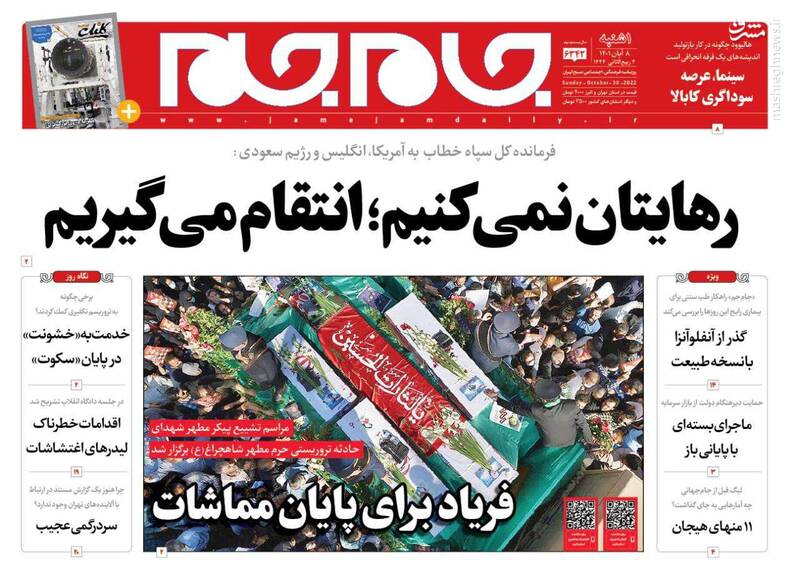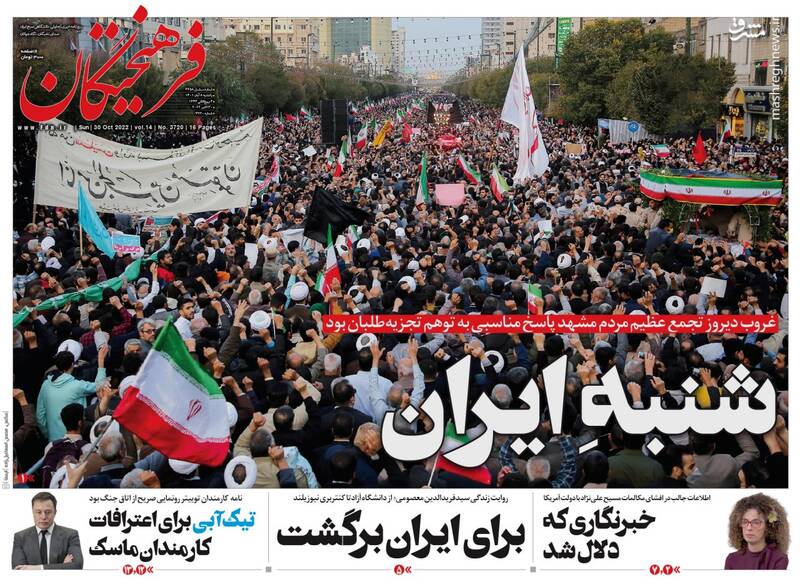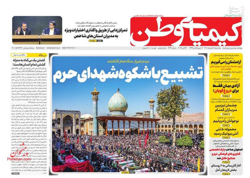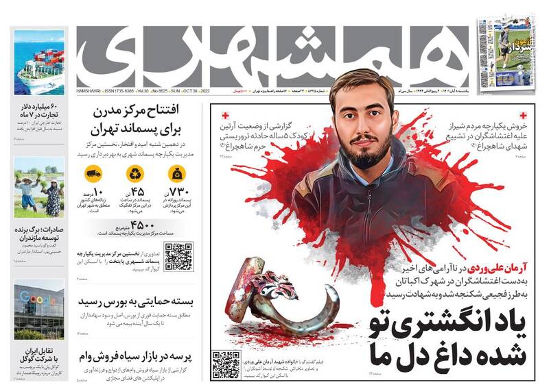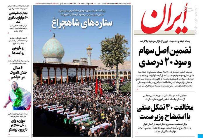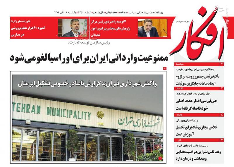 صفحه اول روزنامههای یکشنبه ۸ آبان ۱۴۰۱