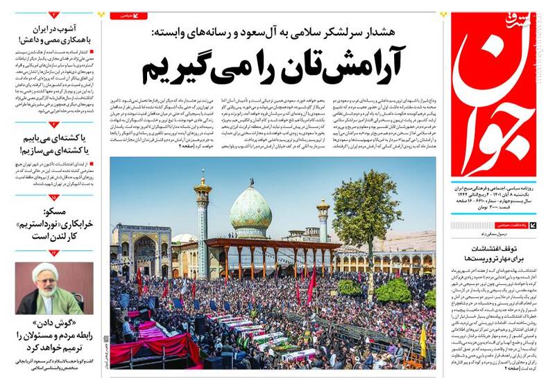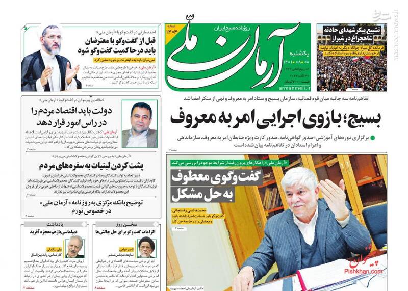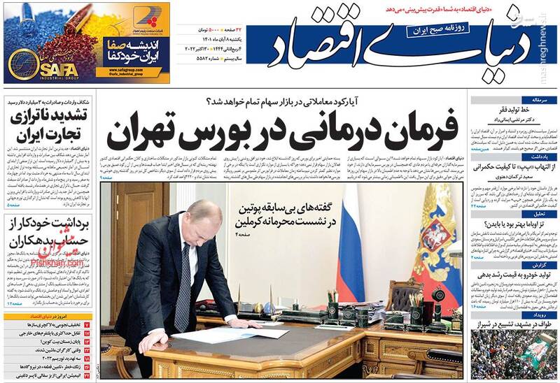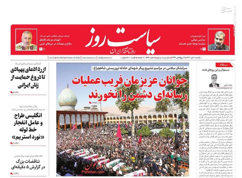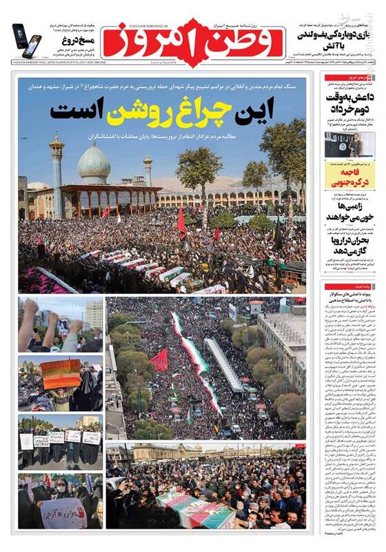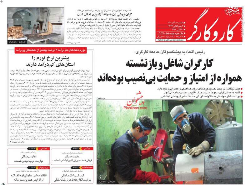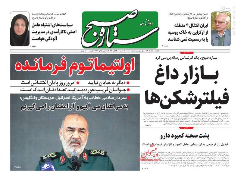 صفحه اول روزنامههای یکشنبه ۸ آبان ۱۴۰۱