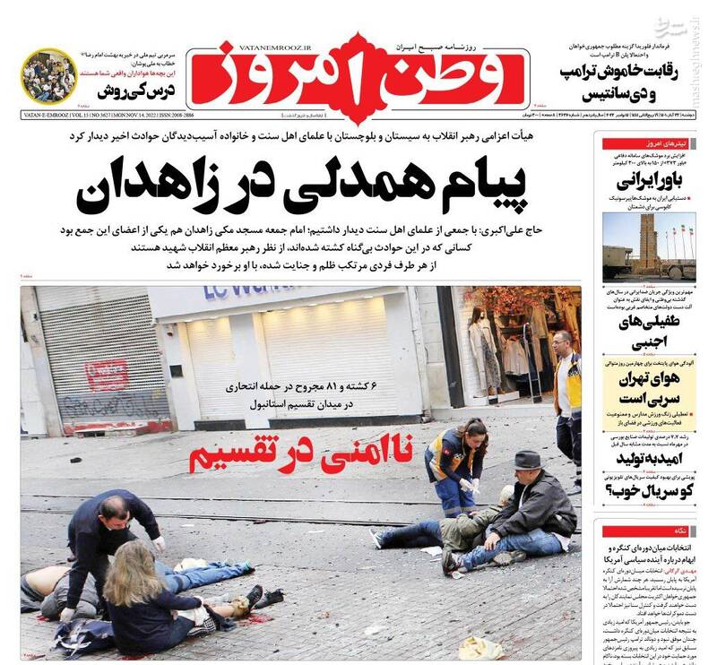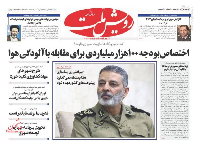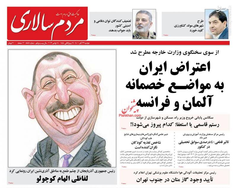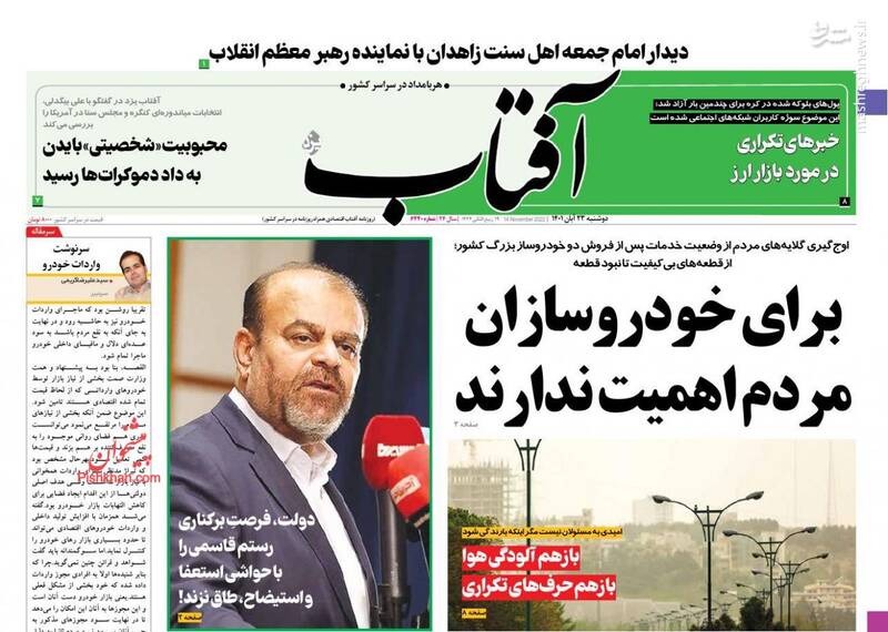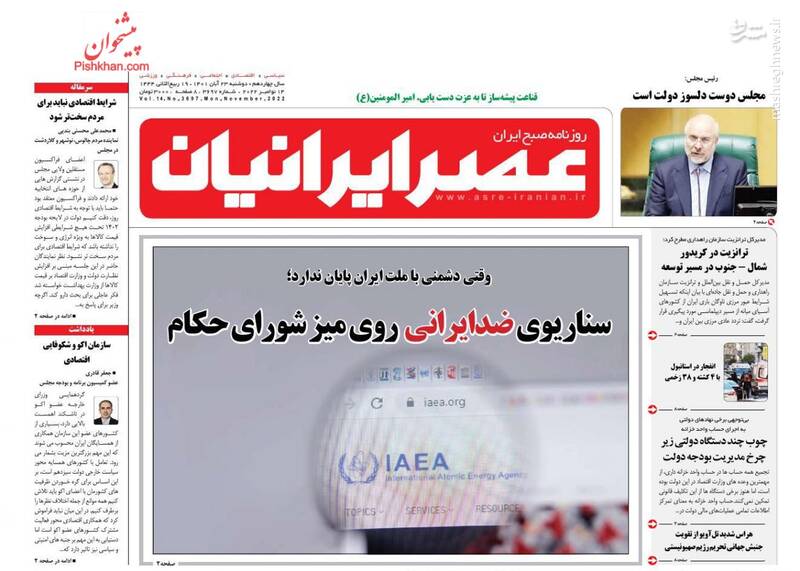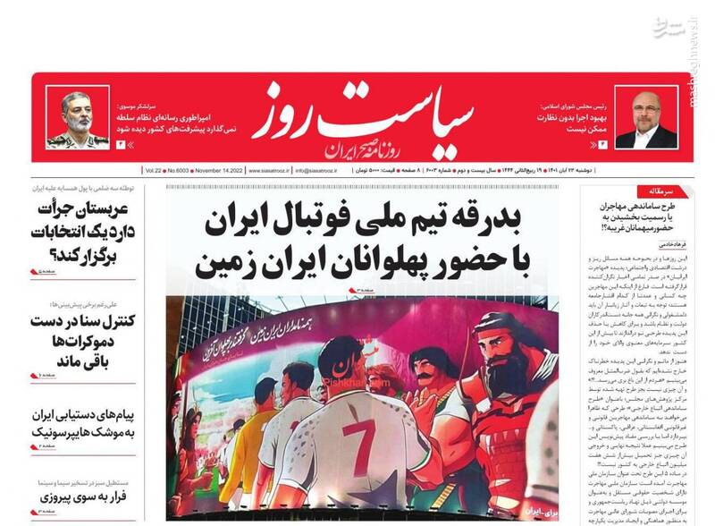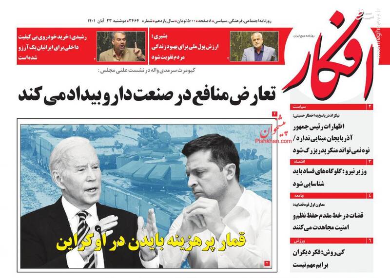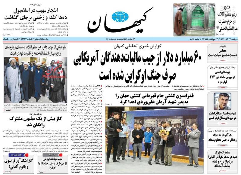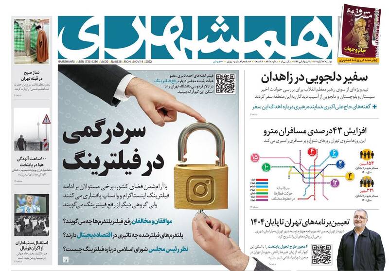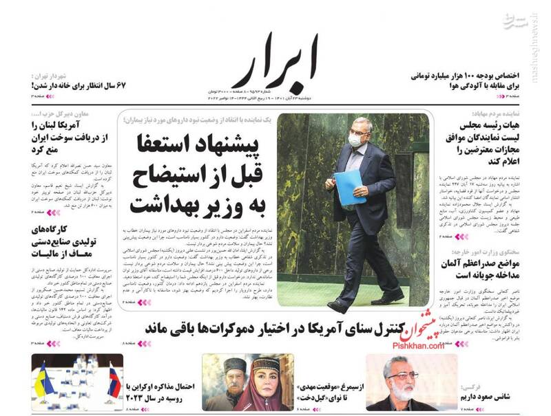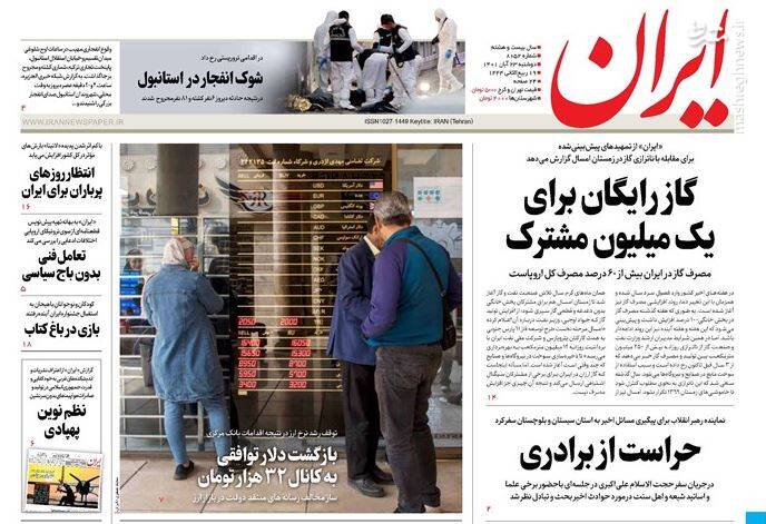 صفحه اول روزنامههای دوشنبه ۲۳ آبان ماه ۱۴۰۱