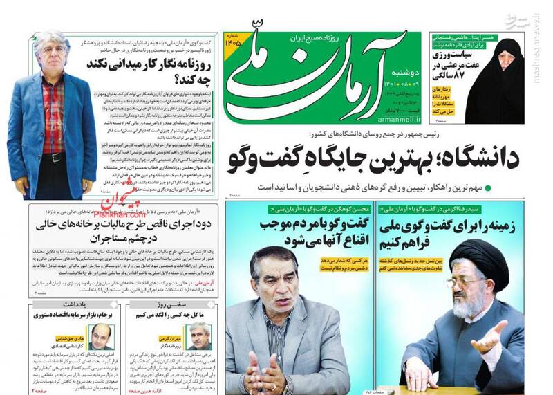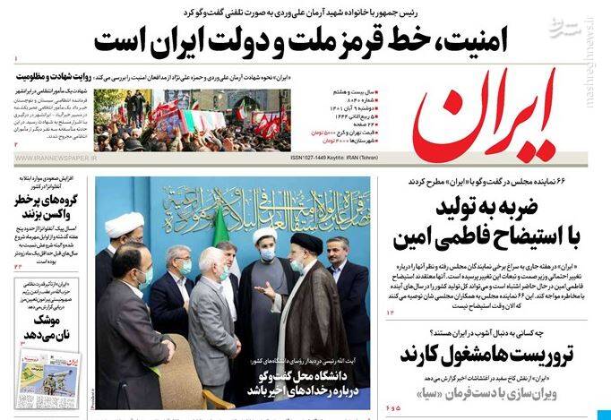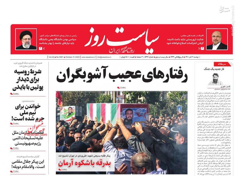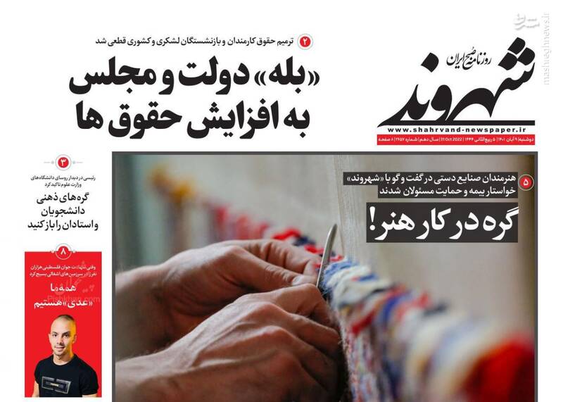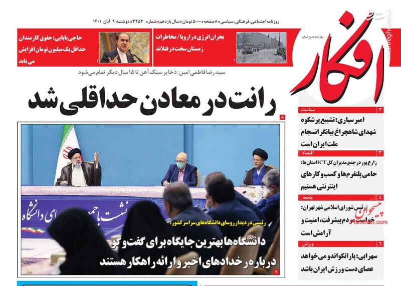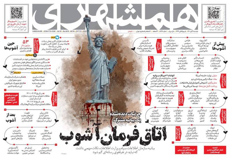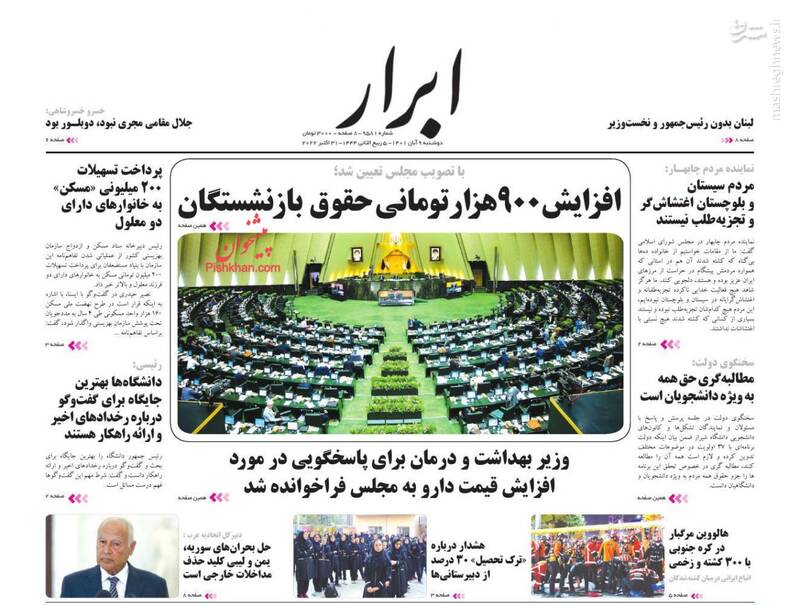 صفحه اول روزنامههای دوشنبه ۹ آبان ۱۴۰۱