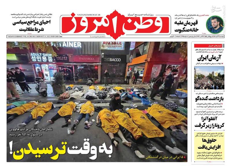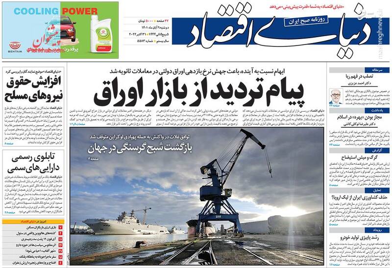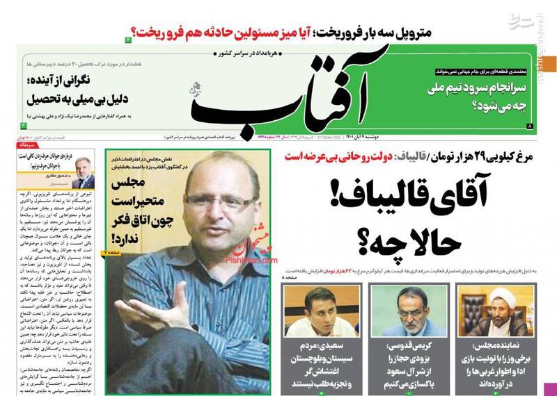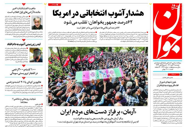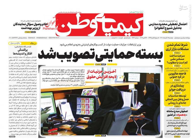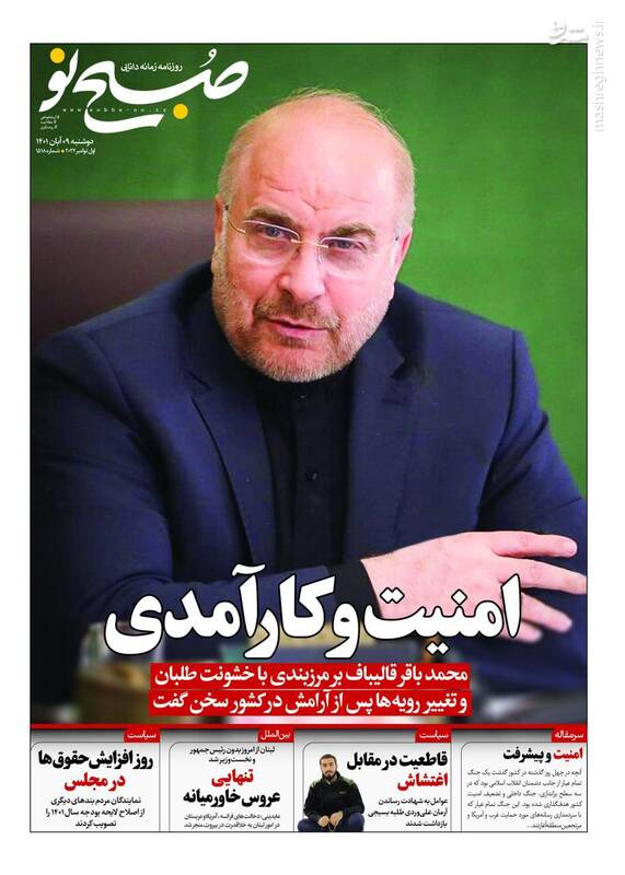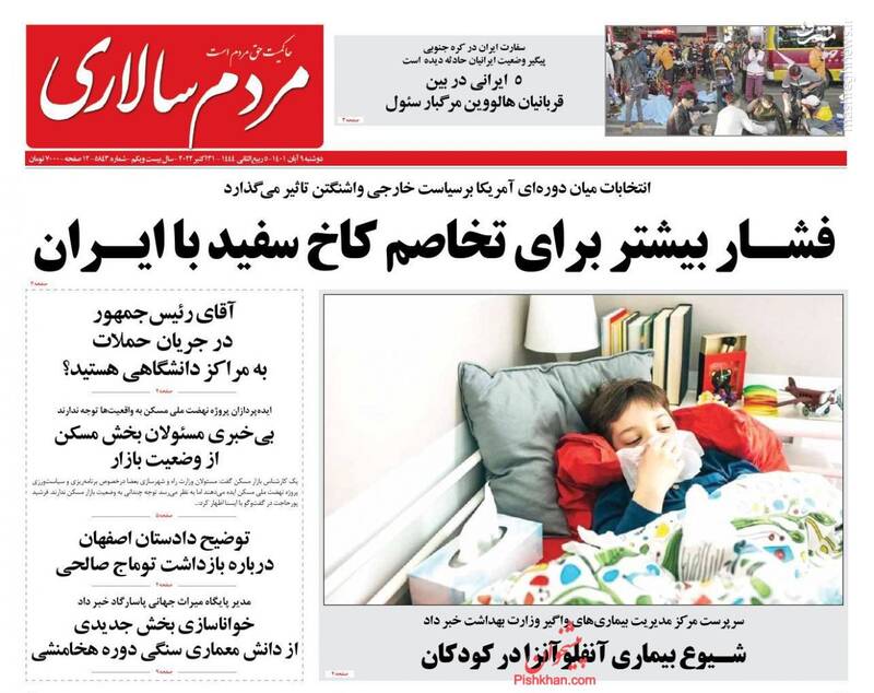 صفحه اول روزنامههای دوشنبه ۹ آبان ۱۴۰۱