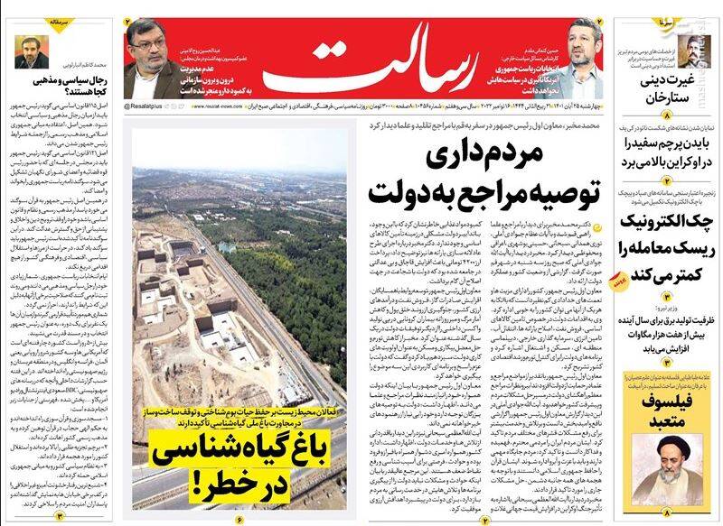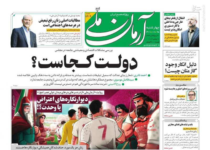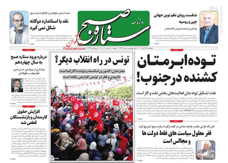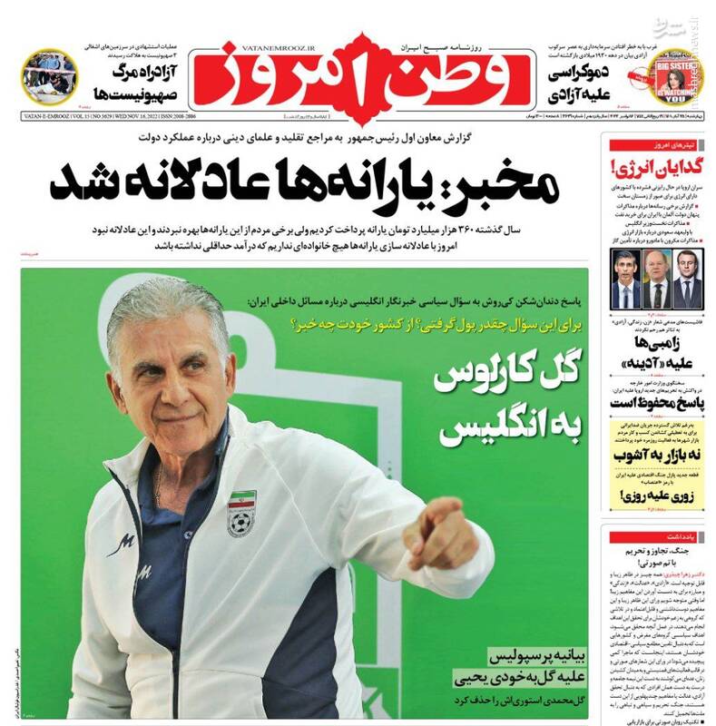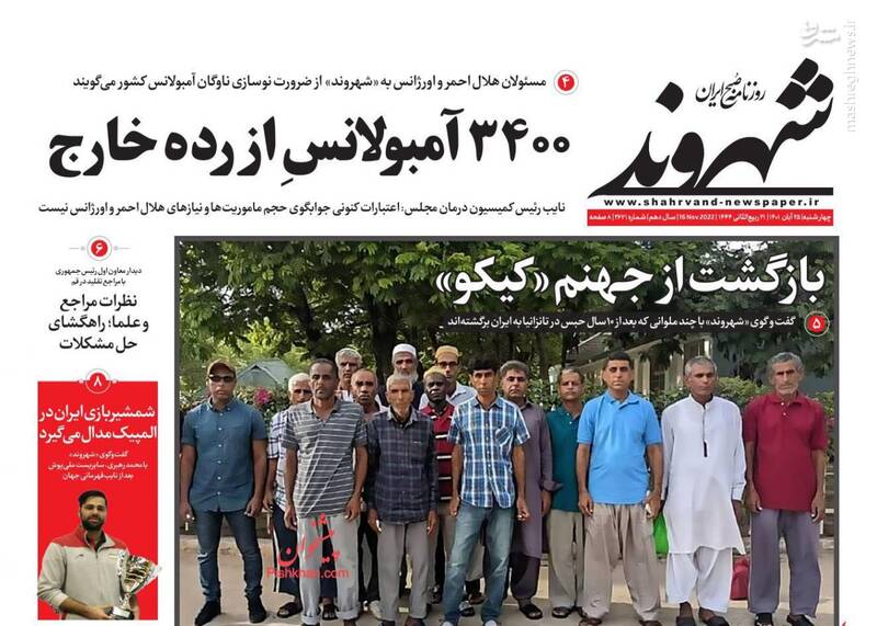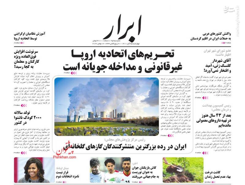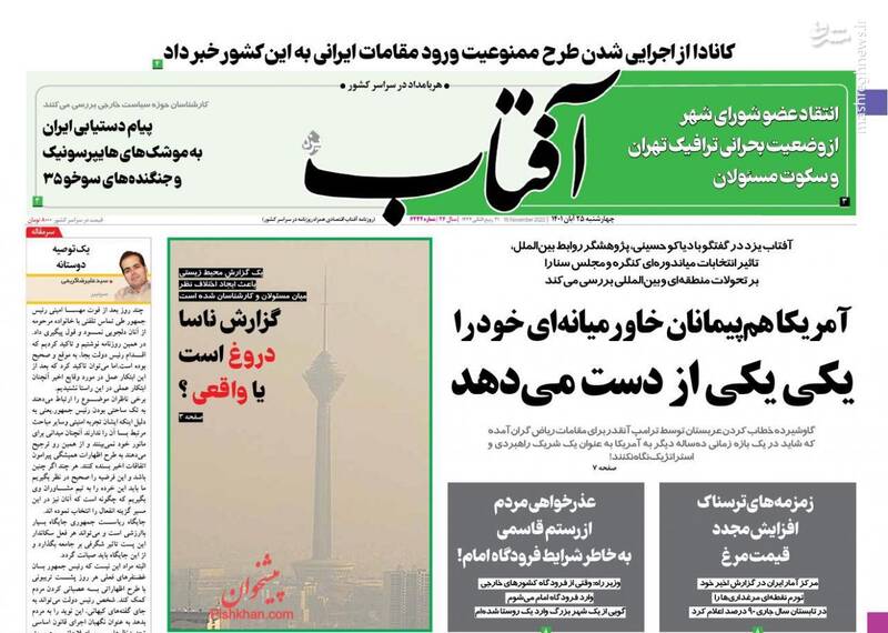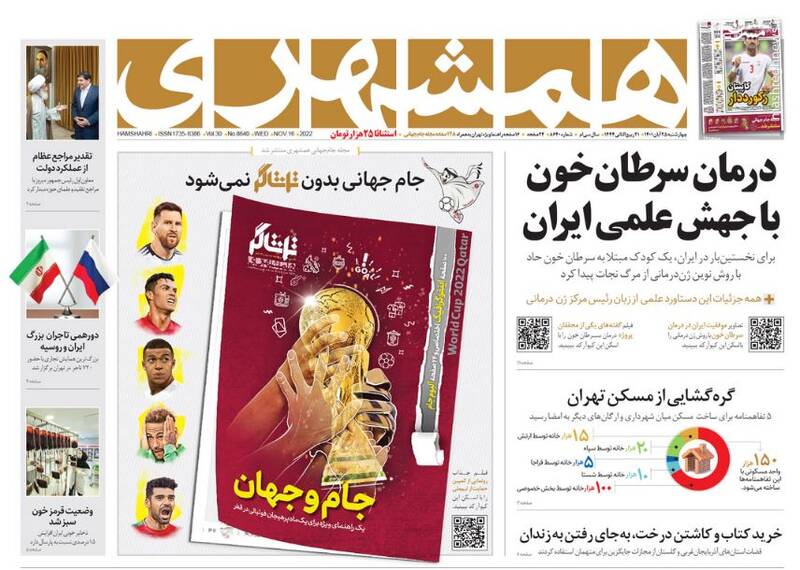 صفحه اول روزنامههای روز چهارشنبه ۲۵ آبان ماه ۱۴۰۱