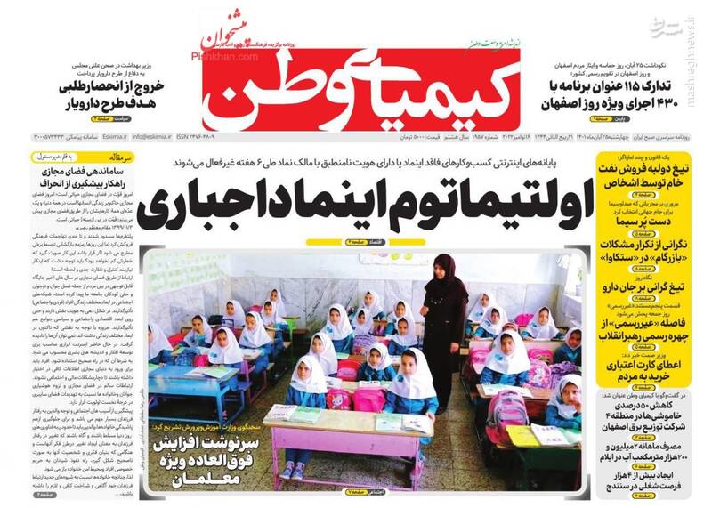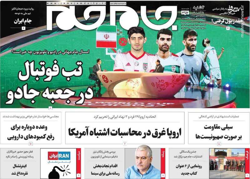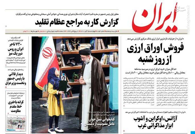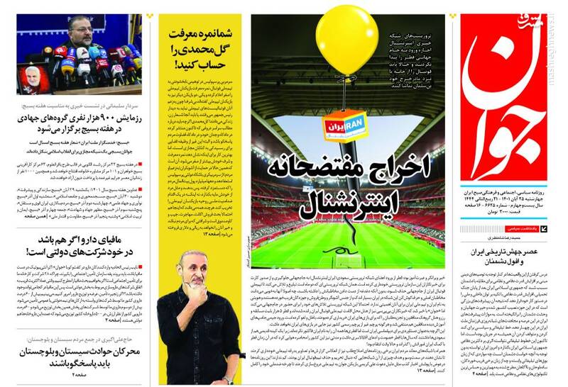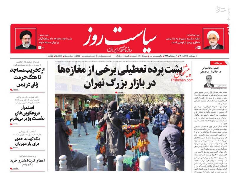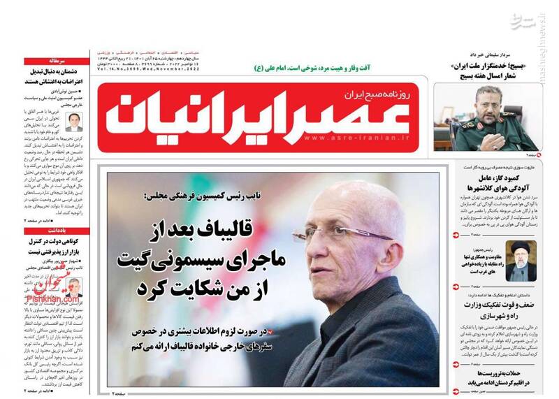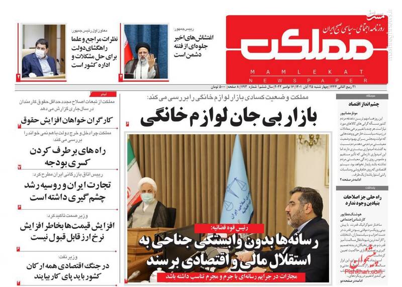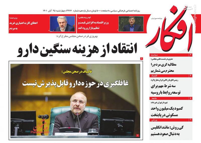 صفحه اول روزنامههای روز چهارشنبه ۲۵ آبان ماه ۱۴۰۱