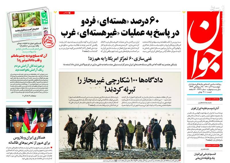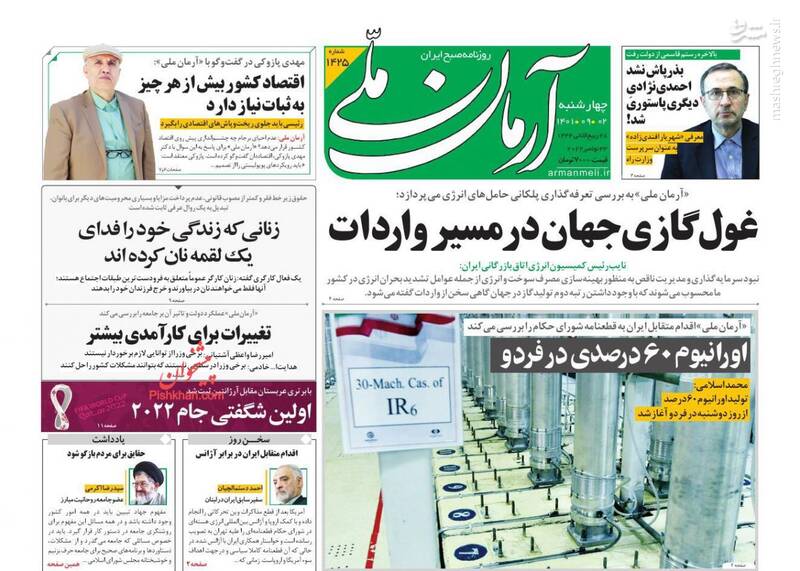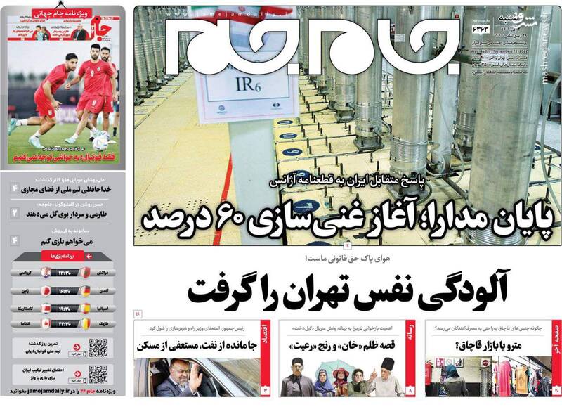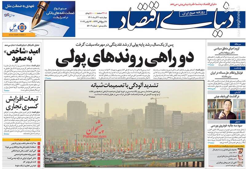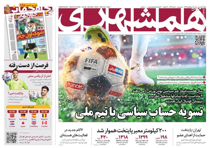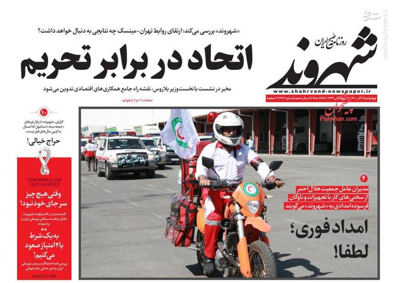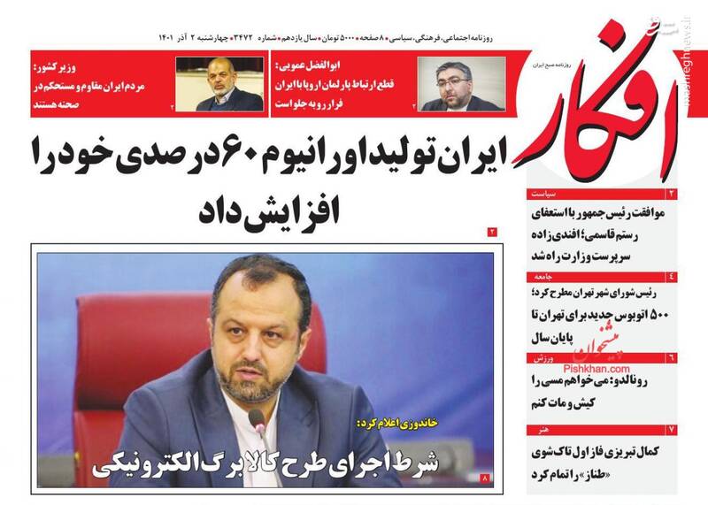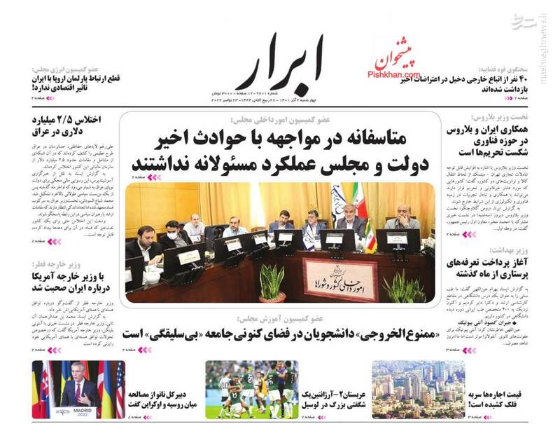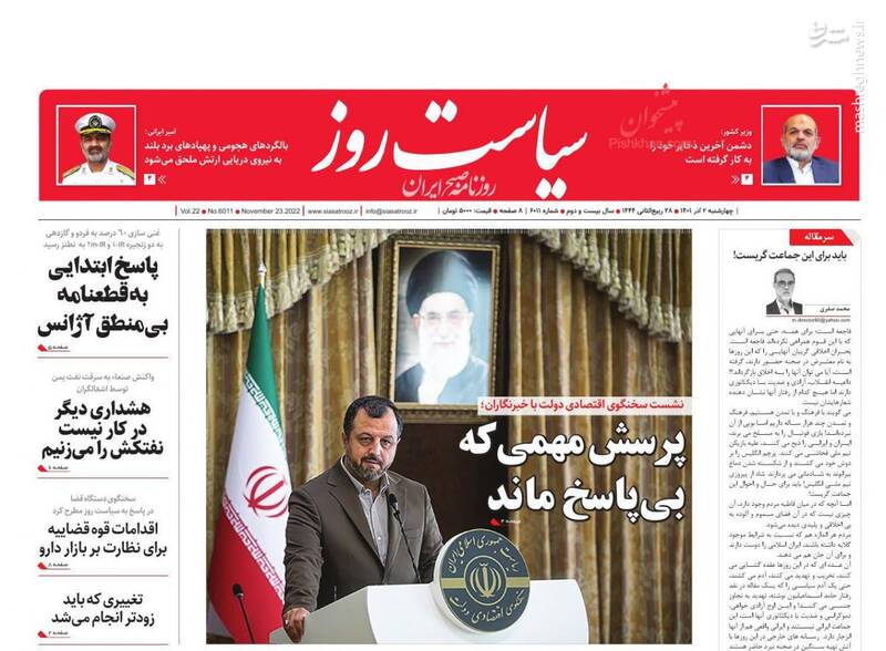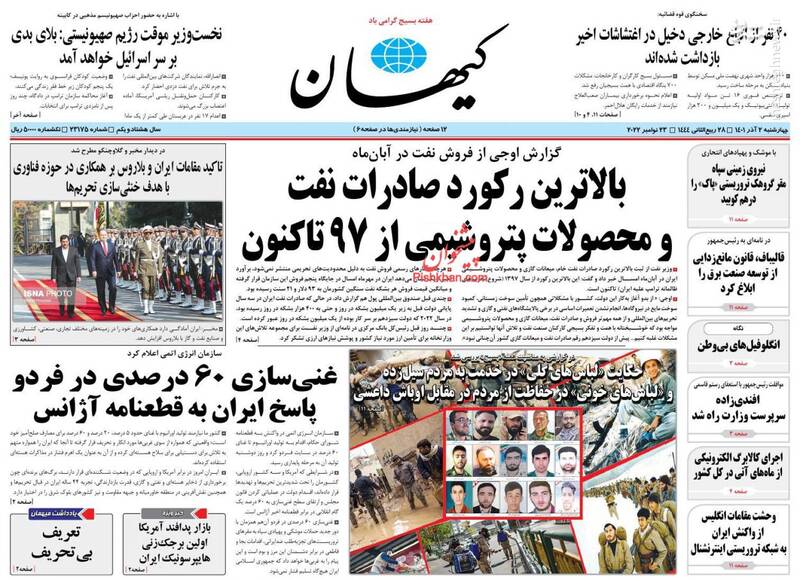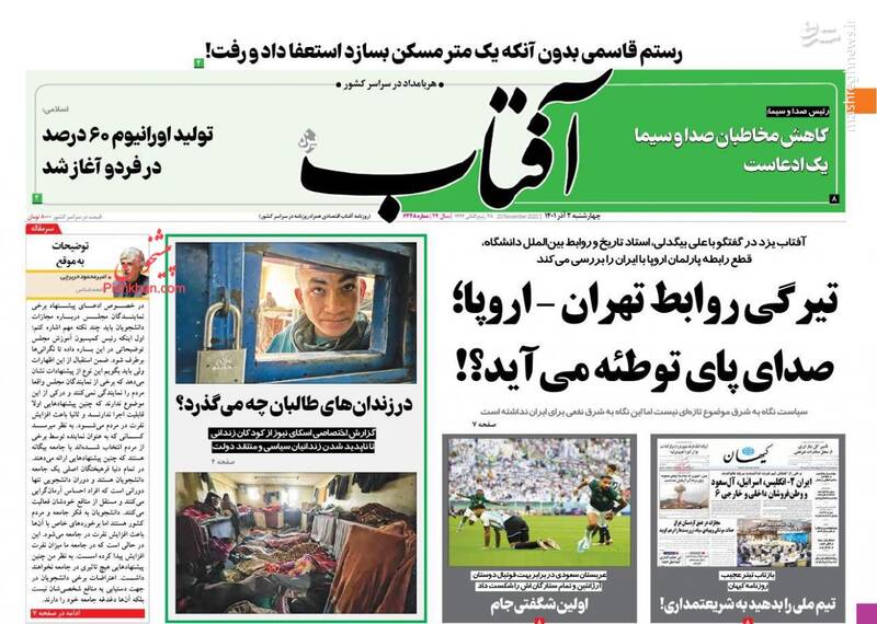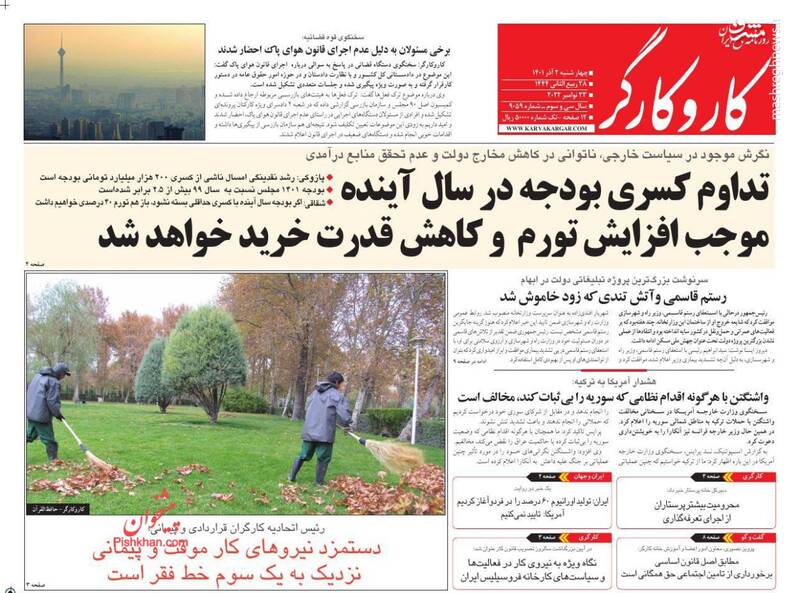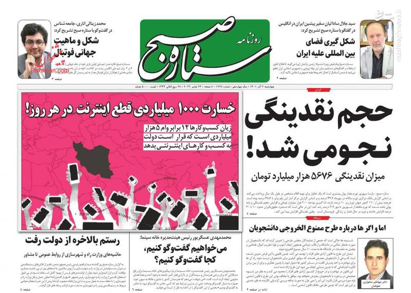 صفحه اول روزنامههای چهارشنبه ۲ آذر ۱۴۰۱