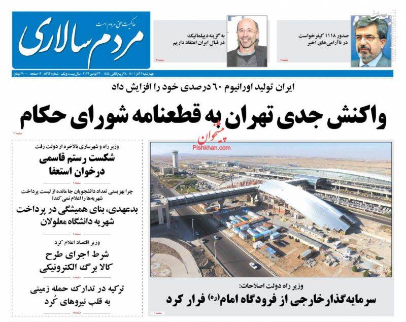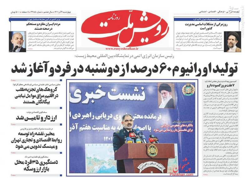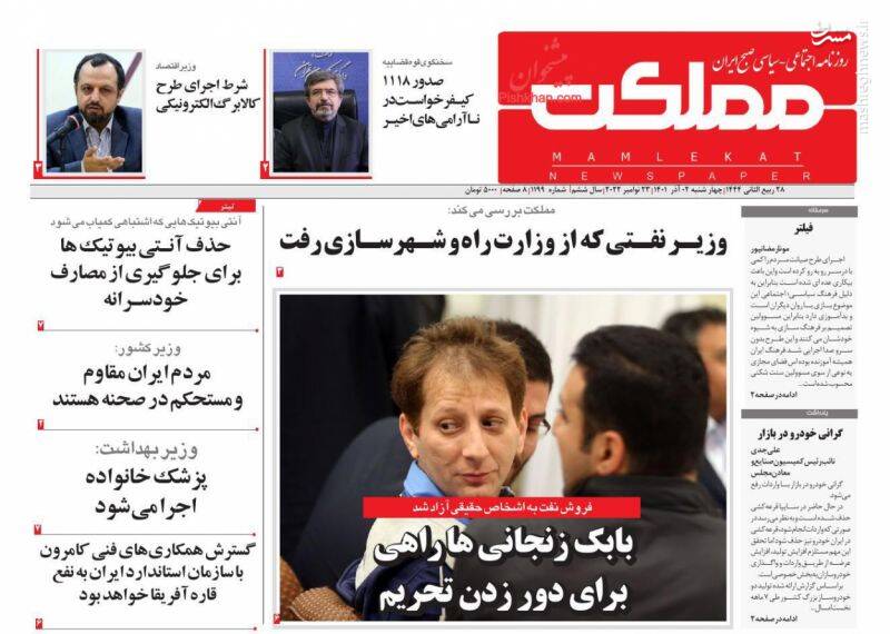 ، از جمله تیترهای روزنامه ها در روز چهارشنبه دوم آذرماه است.