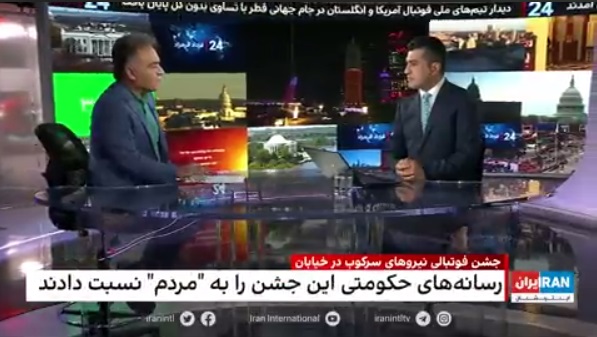 مجری ورزشی شبکه اینترنشنال پس از بازی با پیراهن سیاه به استودیوی پخش آمد و از تک تک کلماتش عصبانیت و نفرت از خوشحالی ایرانیان پدیدار بود.