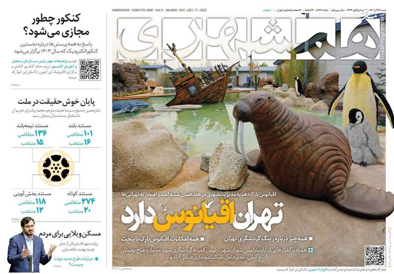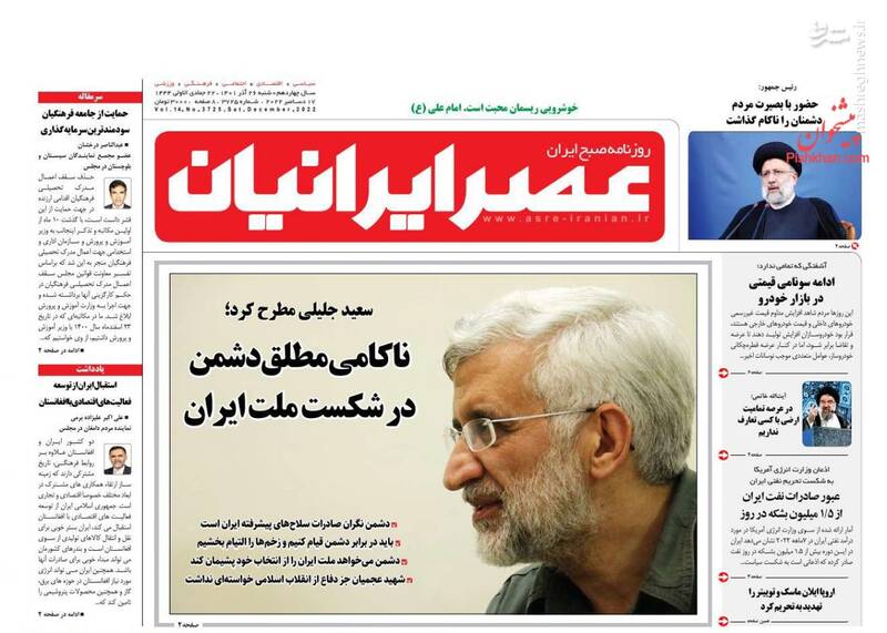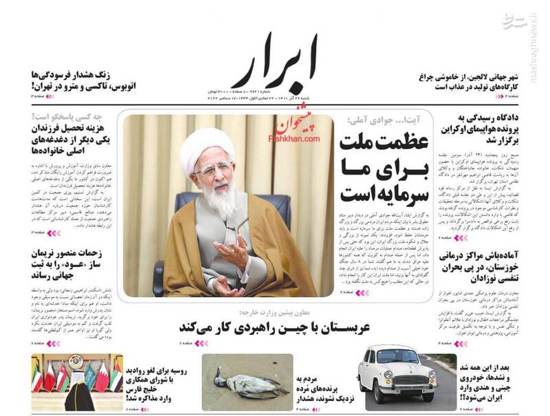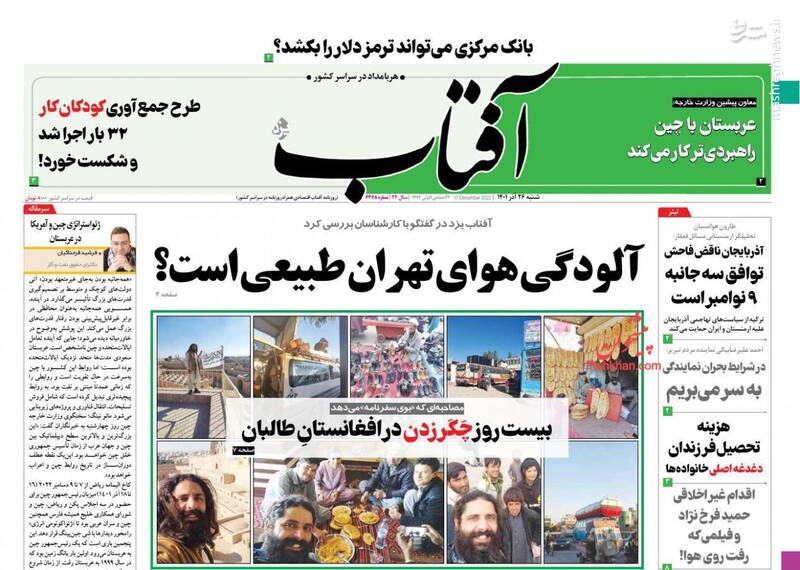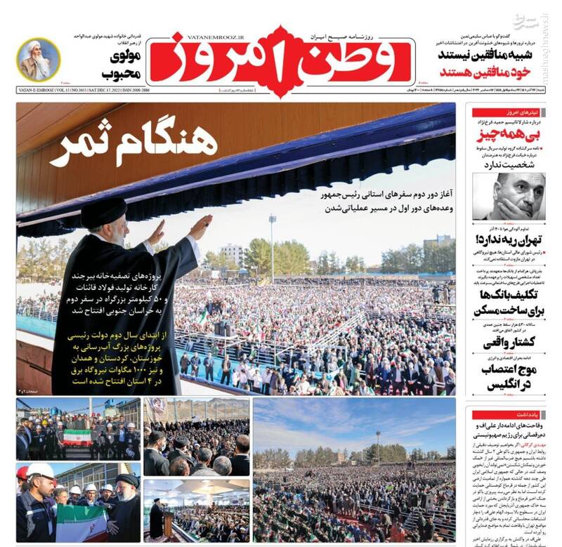 صفحه اول روزنامههای شنبه ۲۶ آذر ۱۴۰۱