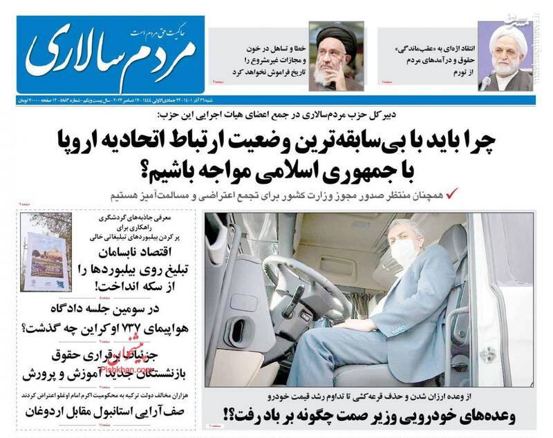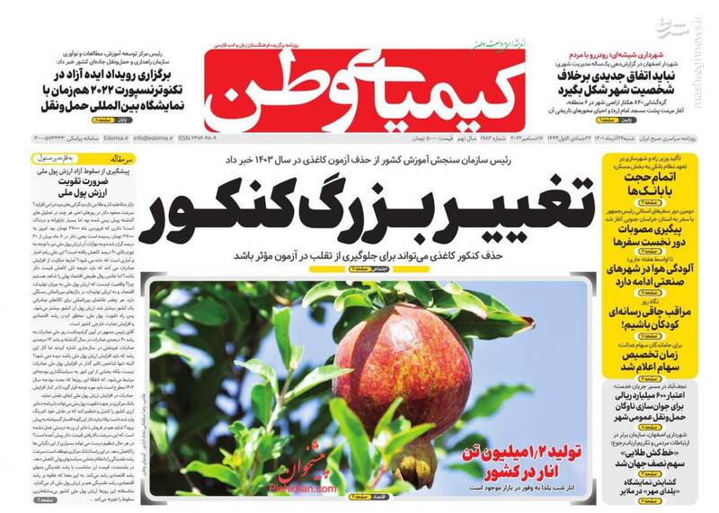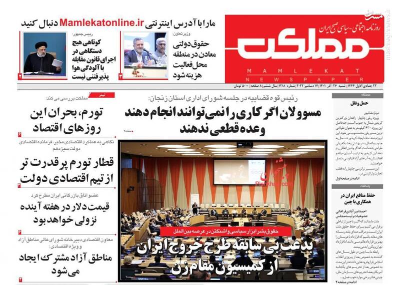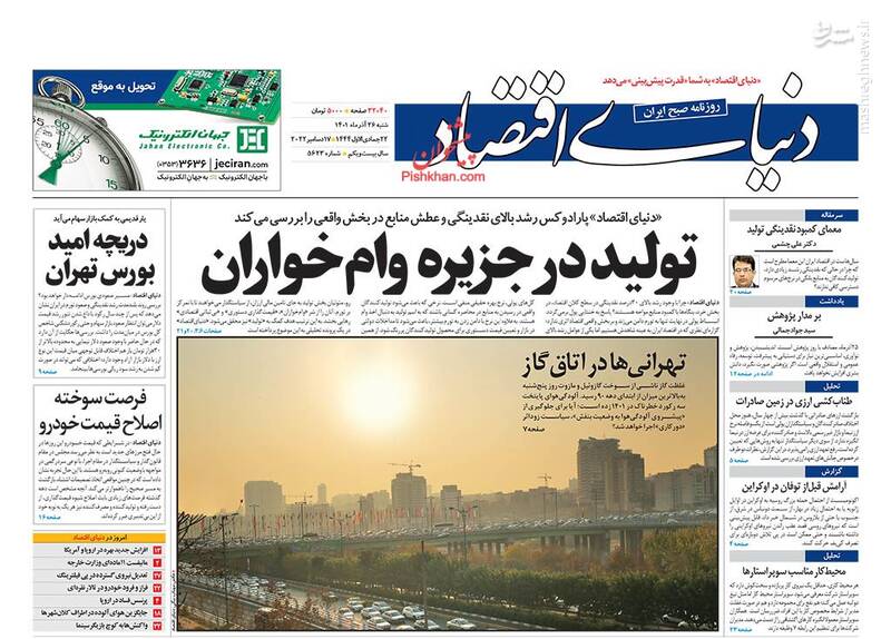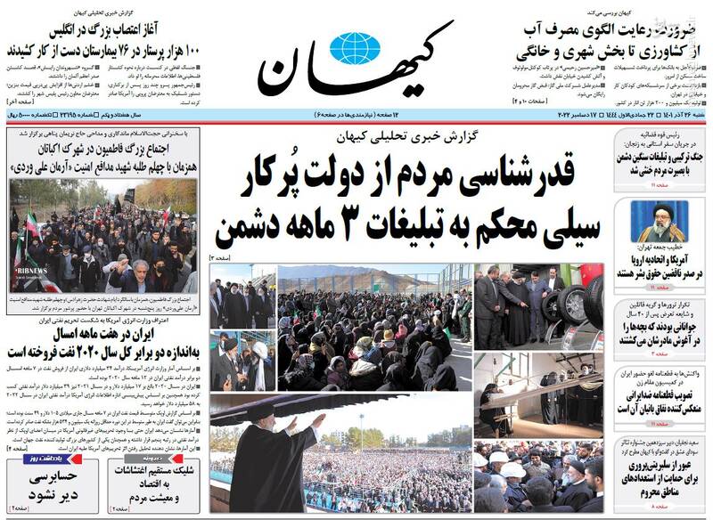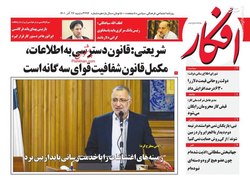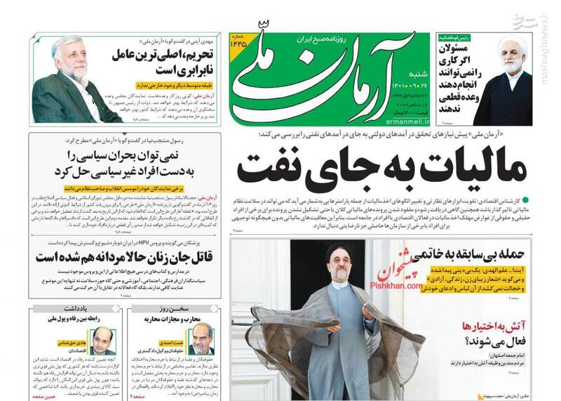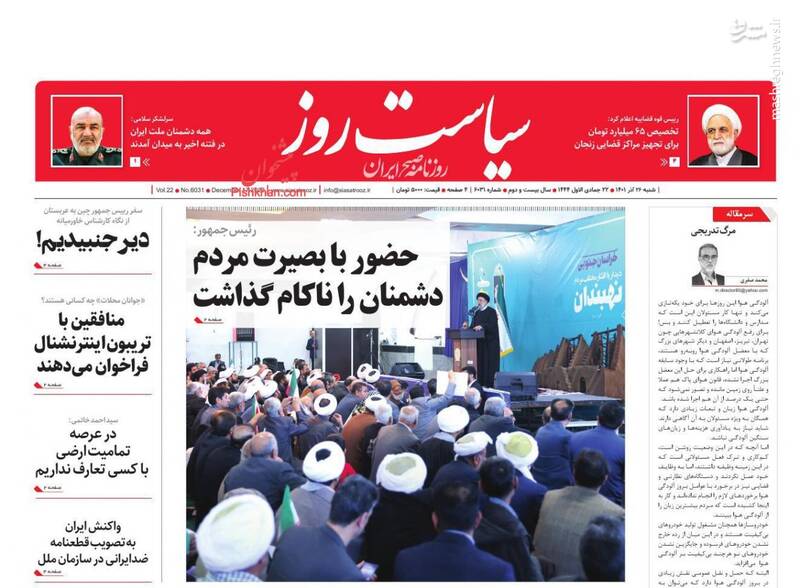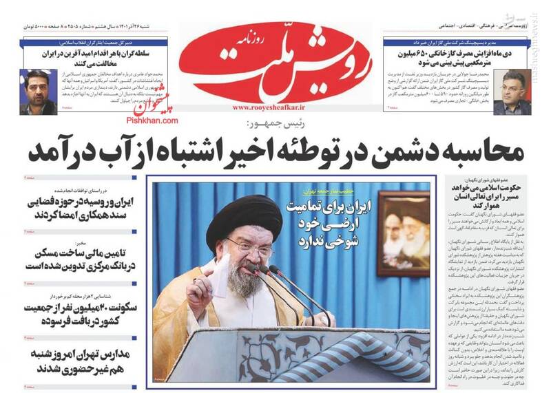تیترهای روزنامهها در روز شنبه ۲۶ آذر است.