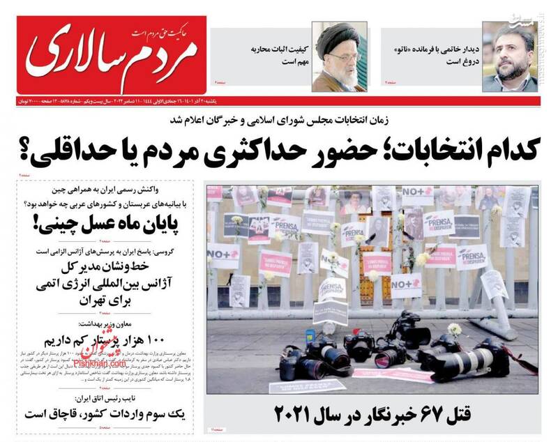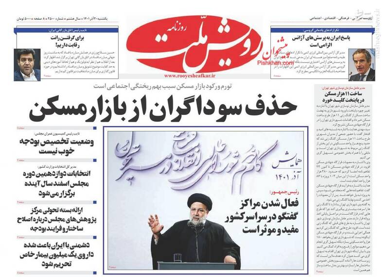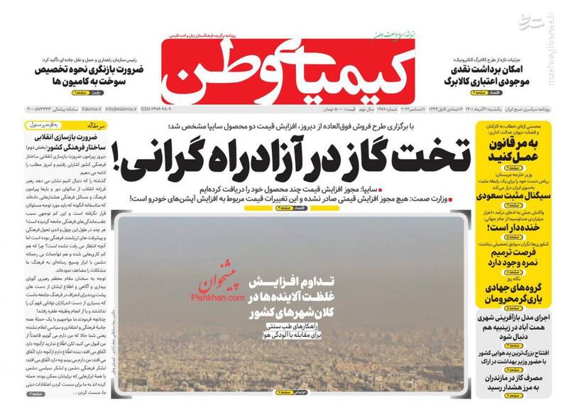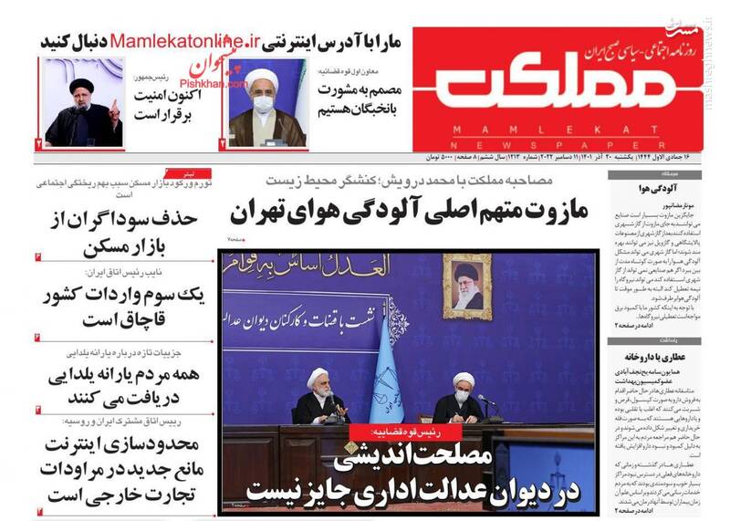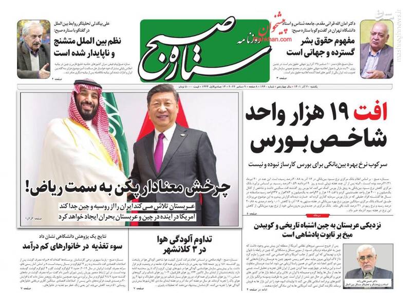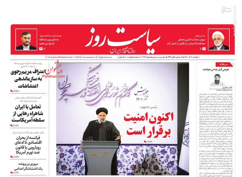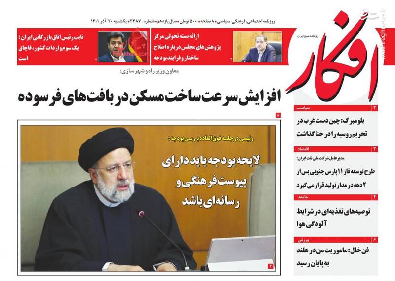 صفحه اول روزنامههای یکشنبه ۲۰ آذر ۱۴۰۱