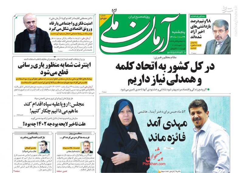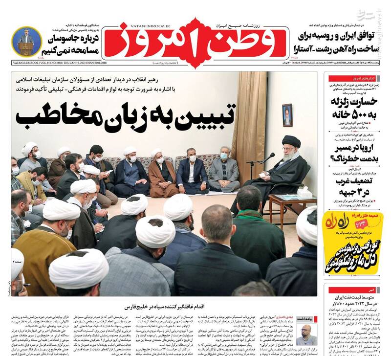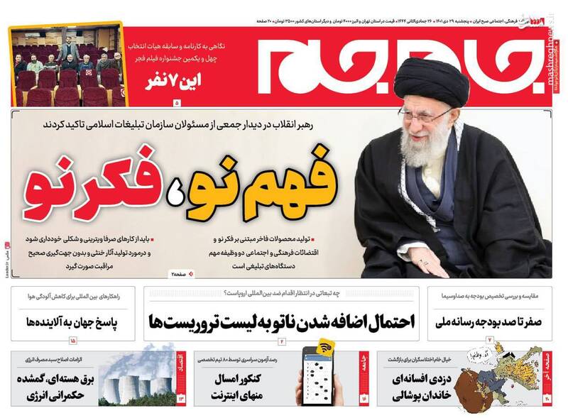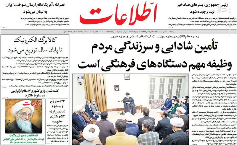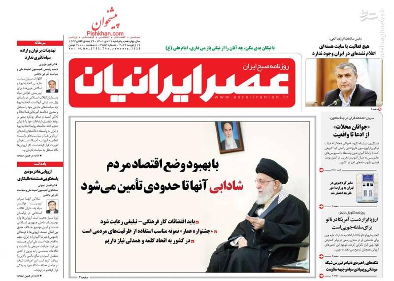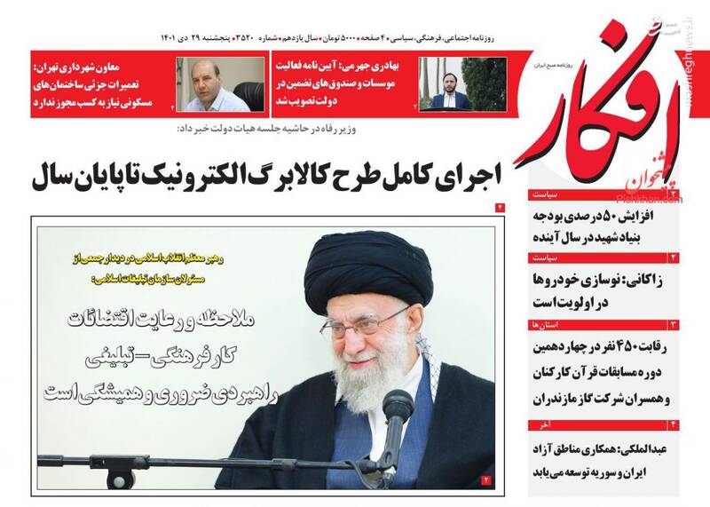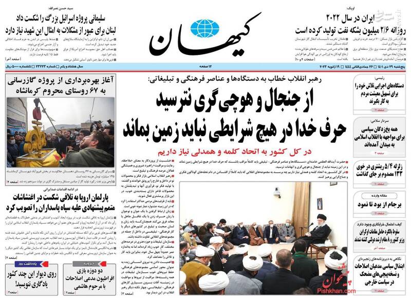 صفحه اول روزنامههای پنجشنبه ۱۹ دی ماه ۱۴۰۱