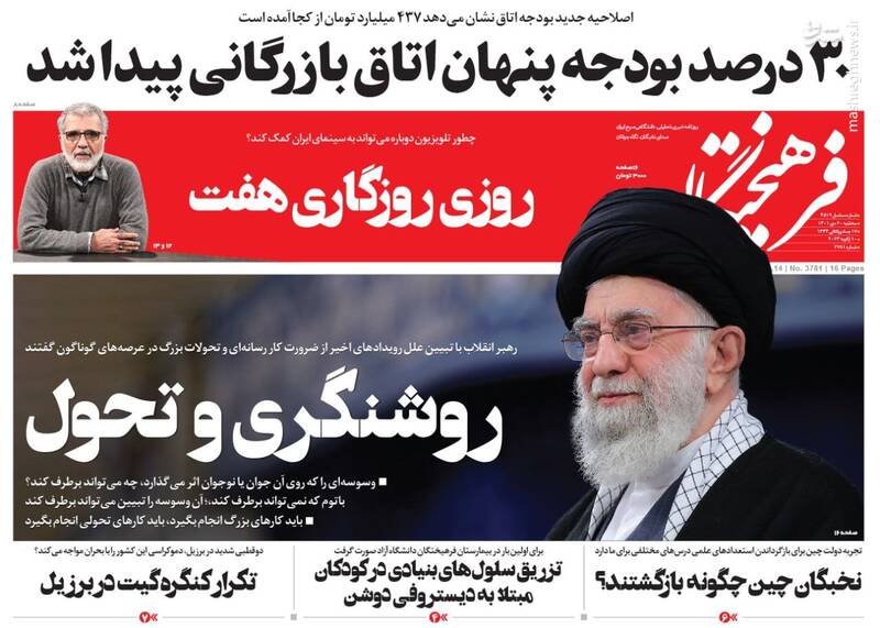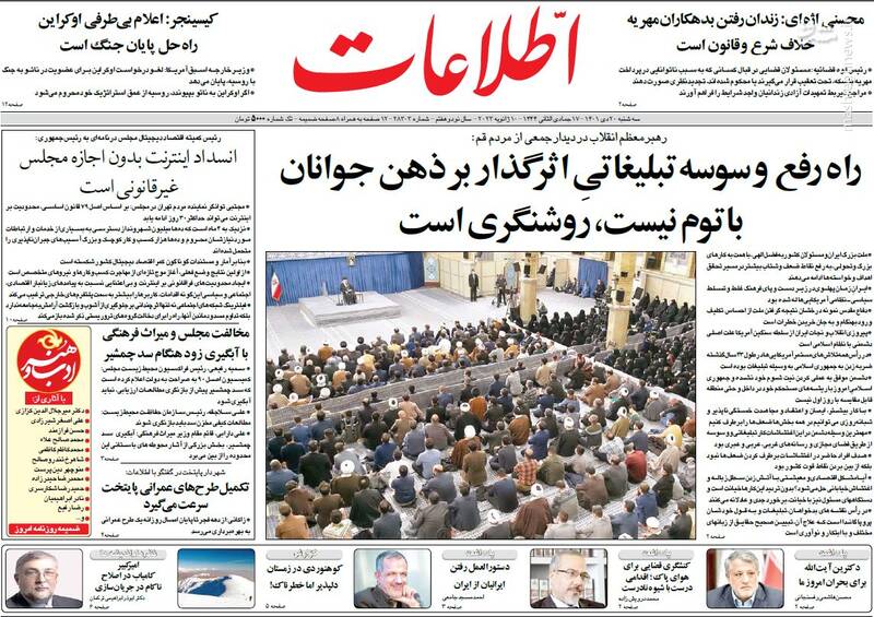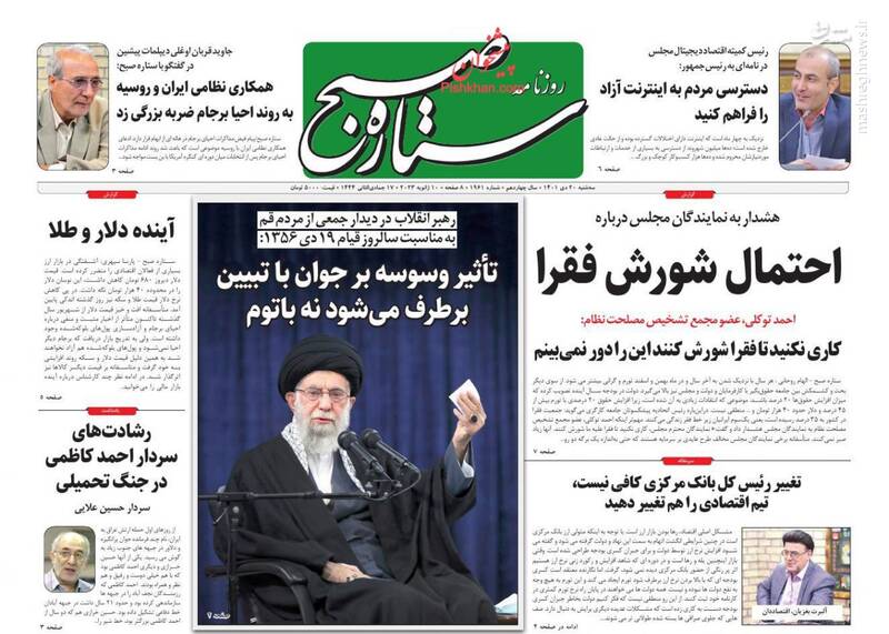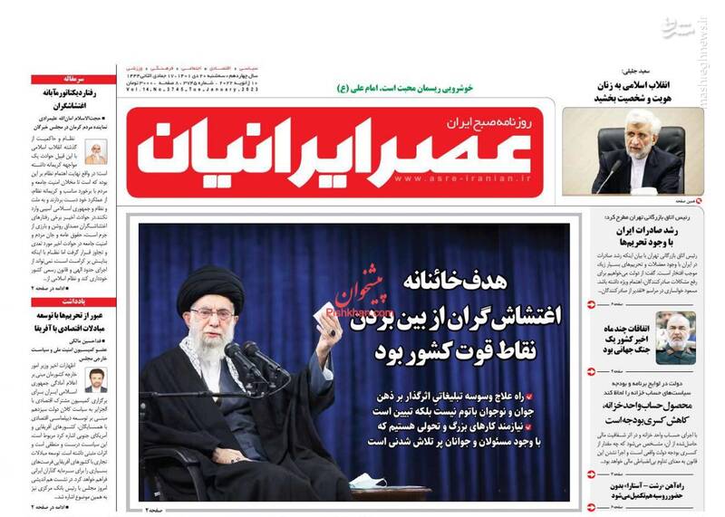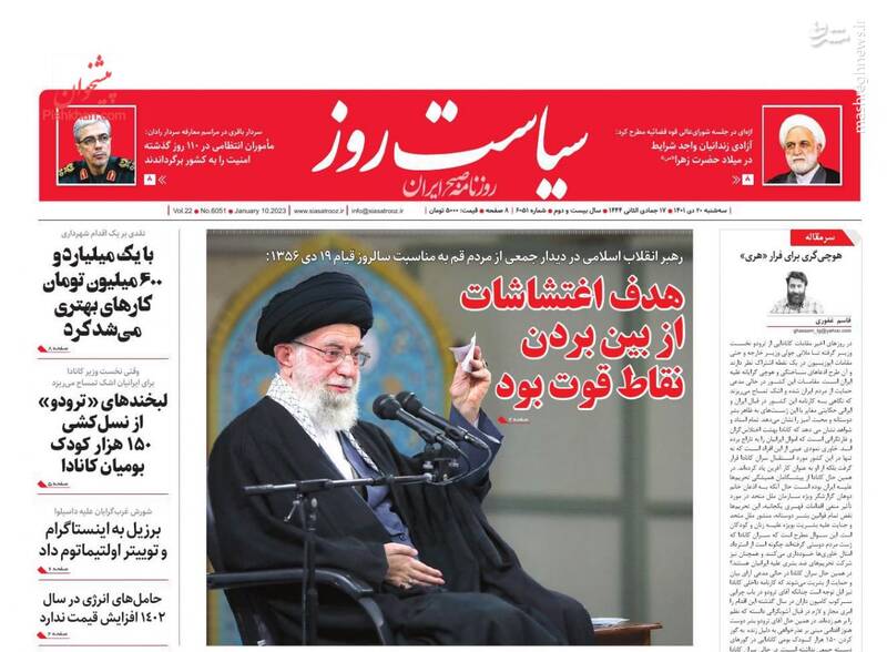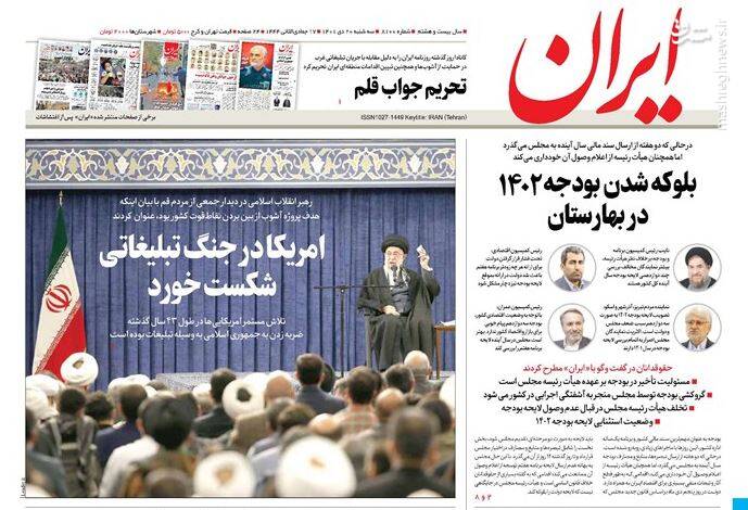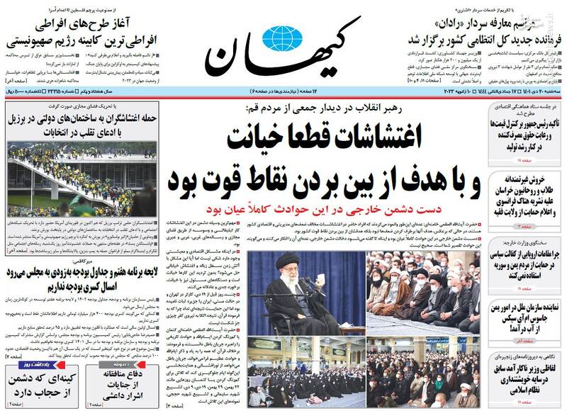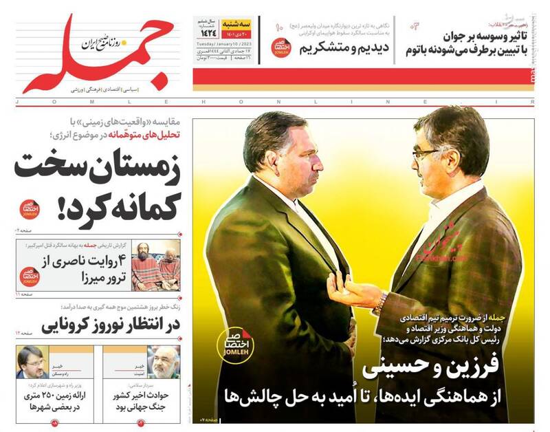 صفحه اول روزنامه های سهشنبه ۲۰ دیماه ۱۴۰۱