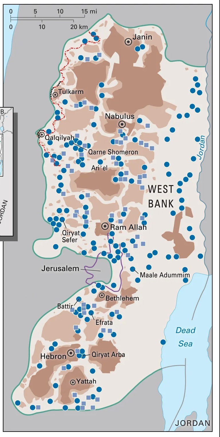 در کرانه باختری فلسطین حدود نیم میلیون یهودی اسرائیلی در شهرکهای اسرائیلی ساکن هستند.