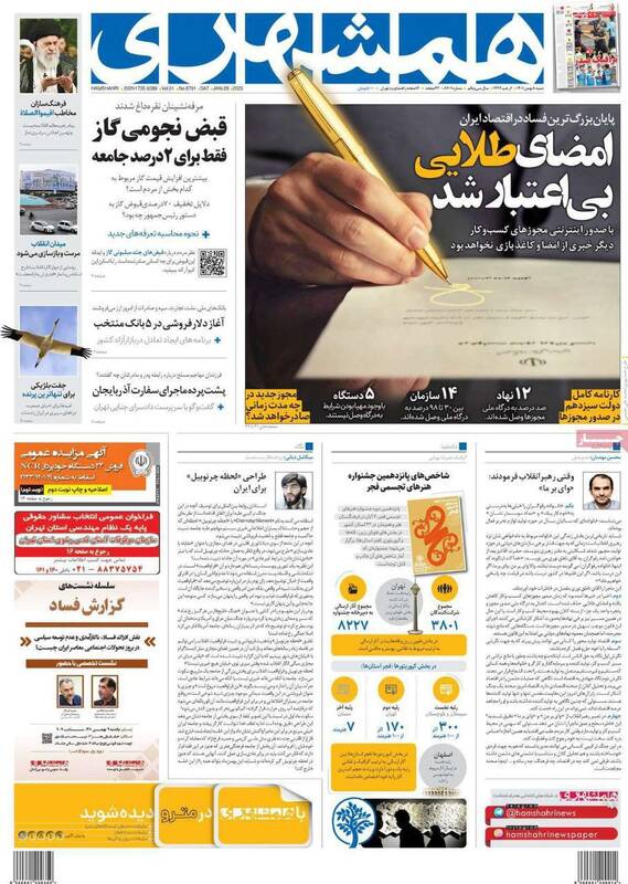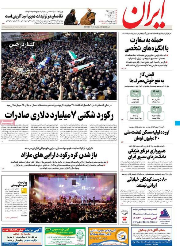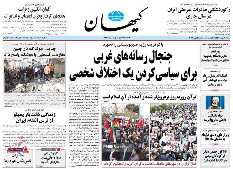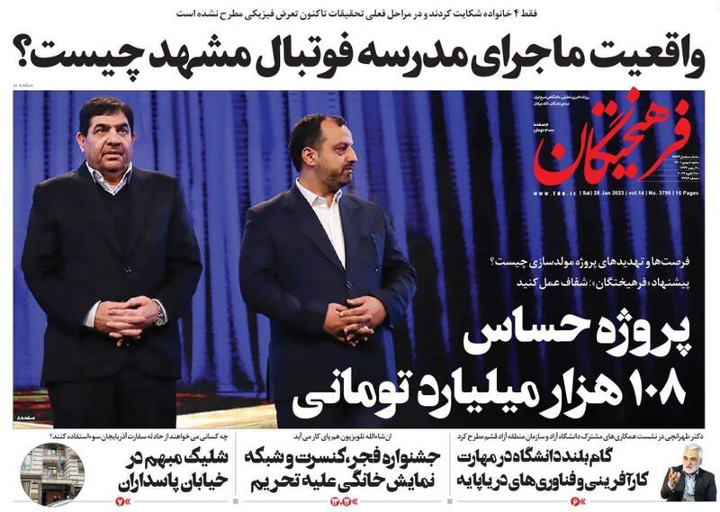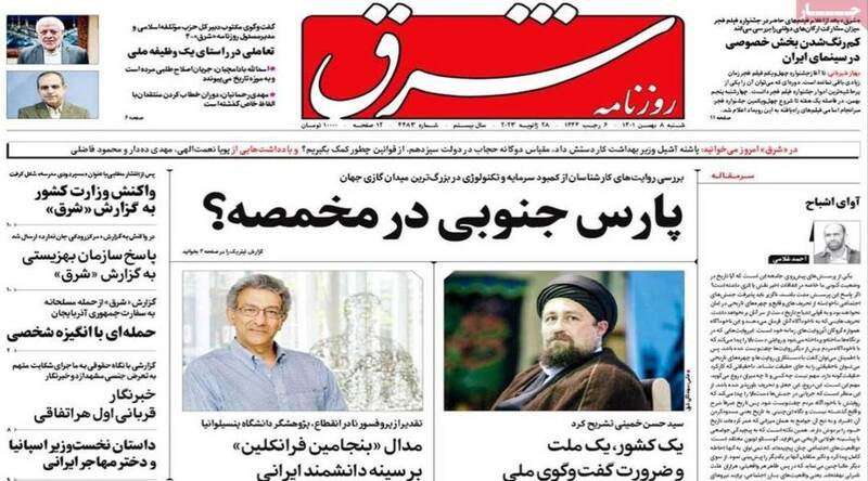 صفحه اول روزنامههای شنبه ۸ بهمن ماه ۱۴۰۱